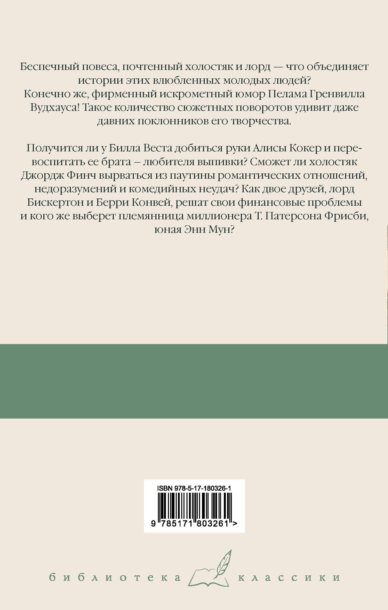 - Классика английского юмора. - Пелам Гренвилл Вудхаус - один из самых популярных английских авторов XX века, за свою долгую и насыщенную карьеру он написал около 100 книг, наиболее известными из которых были романы о добродушном великосветском разгильдяе Берти Вустере и его слуге, находчивом Дживсе. Эти истории позже легли в основу популярного комедийного сериала со Стивеном Фраем и Хью Лори в главных ролях. - Сразу три романа П.Г. Вудхауса под одной обложкой. - Издание в коллекционном оформлении серии «Библиотека классики»: суперобложка, минималистичный переплет бумвинил, качественная бумага.