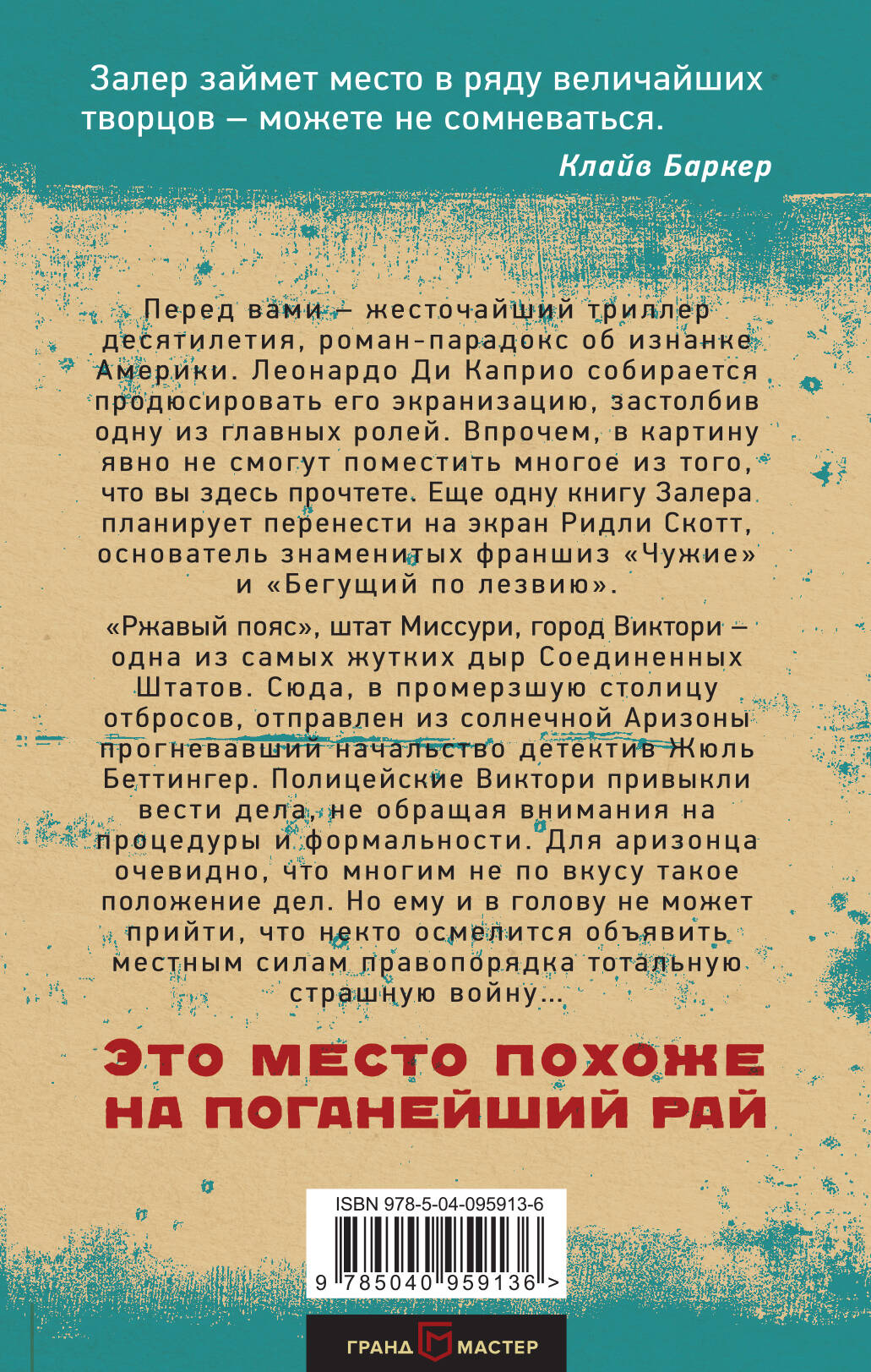 ЭТО МЕСТО ПОХОЖЕ НА ПОГАНЕЙШИЙ РАЙ. Особая рекомендация редакции. «Потрясающе». - Курт Расселл «Залер займет место в ряду величайших творцов - можете не сомневаться». - Клайв Баркер С. Крэйг Залер поистине многолик. Писатель, сценарист, режиссер, кинооператор, вокалист, автор текстов и барабанщик метал-группы - всё это он. Смелые и удачные эксперименты сделали Залера знаменитым. Его фильм «Костяной томагавк» обрел культовый статус. Курт Расселл, исполнивший в картине главную роль, является преданным фанатом писателя, как и многие другие звезды кино и литературы… «Залер - это атмосфера и действие, поражающие даже того, кто постоянно читает остросюжетную литературу. Мы привыкли, что в прогремевшей книге разрушаются какие-либо стереотипы: за счет необычных декораций, особо натуралистичного колорита, уникального сочного языка, сложных персонажей и отношений, показанных без прикрас и политкорректности. У Залера всё это вместе - и всё в кубе». - Дмитрий Субботин, редактор издательства «Грандмастер» «Сумасшедший, уникальный талант. Редчайшее явление в эпоху обезличенности и трафаретности. Залер обладает главным свойством большого писателя - он абсолютно убедителен, а его проза полностью зрительна. Да, это очень жесткая проза. Но это правда жизни. Без прикрас и экивоков. Тем она и сильна». - Владимир Хорос, ведущий редактор издательства «Грандмастер»| Издательство | ООО "Издательство "Эксмо" |