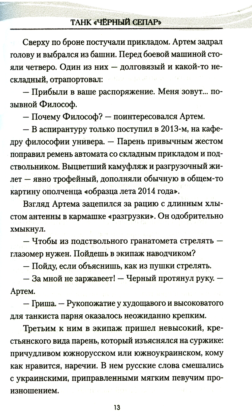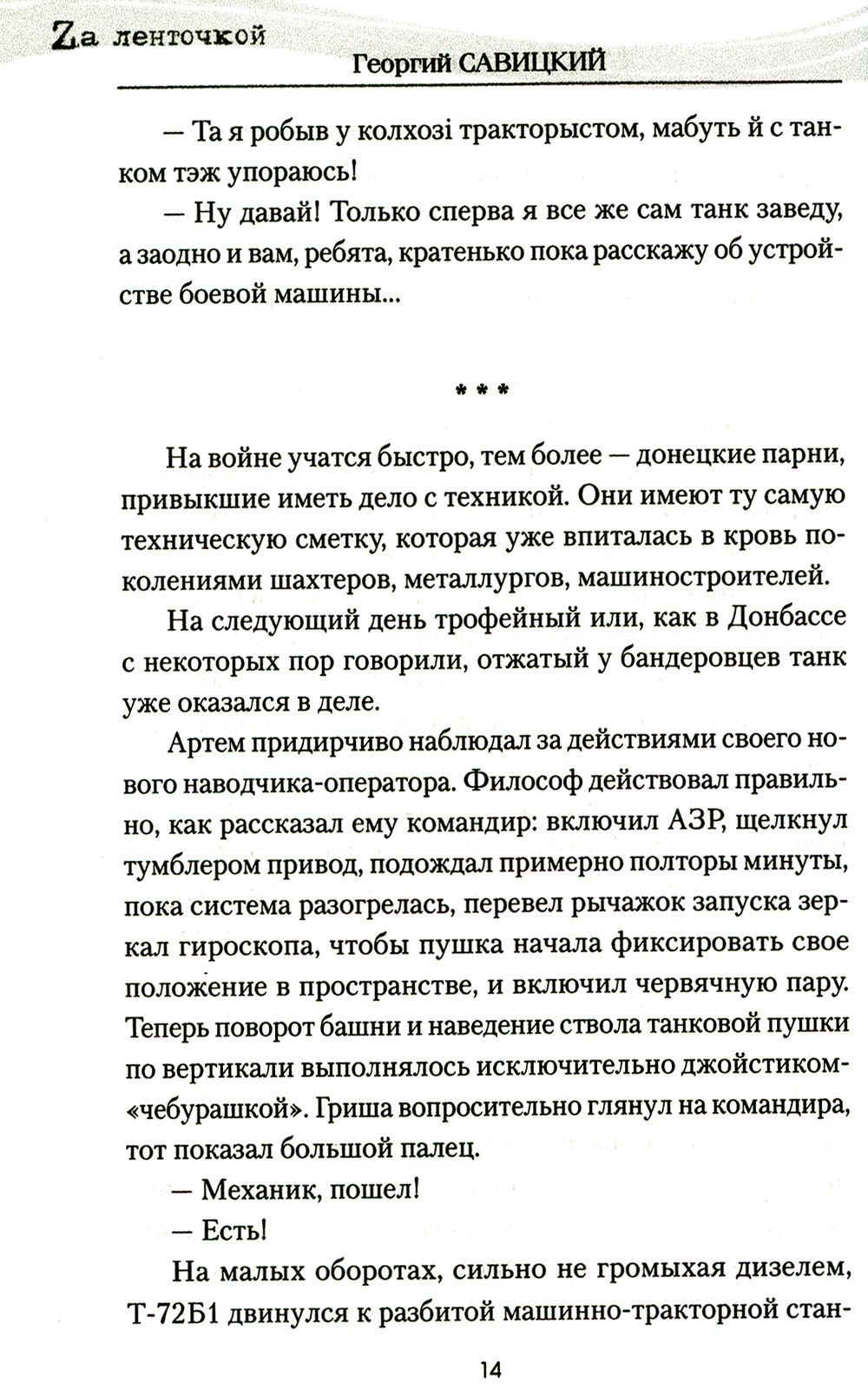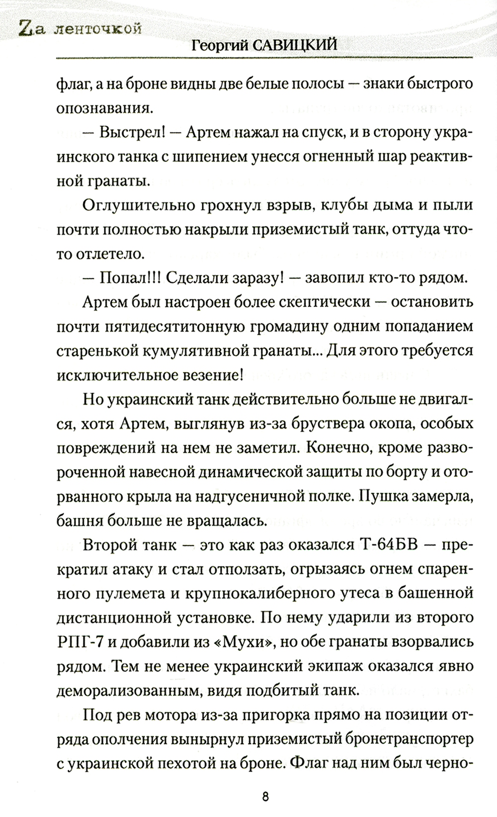 Книга посвящается танкистам отдельного батальона «Дизель» Народной милиции Донецкой Народной Республики. На основании рассказов участников боев, личного общения, воспоминаний, архивных материалов автором воссозданы наиболее значимые события в обороне ДНР: бои за Саур-Могилу, Шахтерск, Иловайск, Донецкий аэропорт, Дебальцевско-Углегорская совместная наступательная операция сил ДНРиЛНР. В яркой художественной форме описаны переживания и ощущения донецких ополченцев - вчерашних шахтеров и металлургов, вставших на защиту родного Донбасса.| Издательство | Вече |