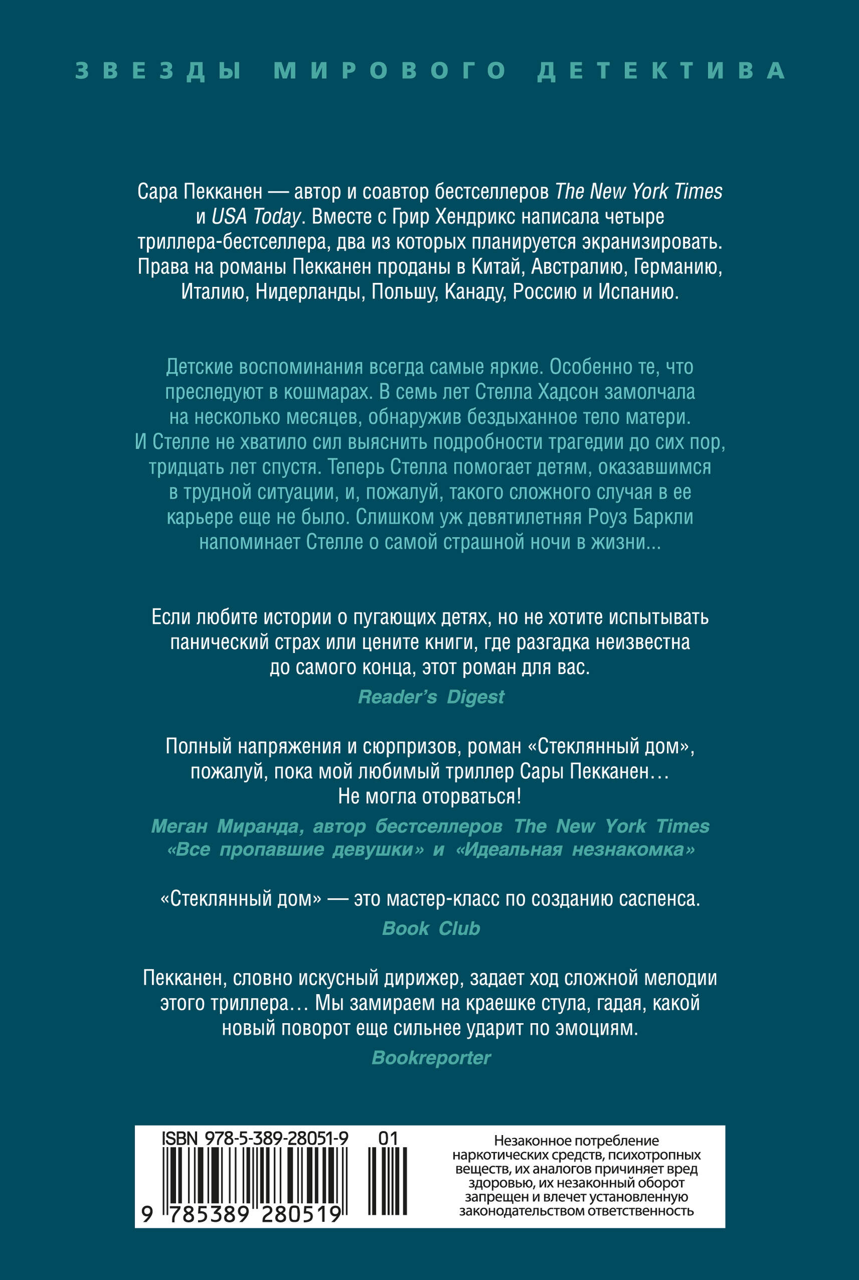 Впервые на русском - психологический триллер от автора и соавтора бестселлеров The New York Times и USA Today Сары Пекканен! Роман, который до последних глав заставит гадать: чему и кому верить? Детские воспоминания всегда самые яркие. Особенно те, что преследуют в кошмарах. В семь лет Стелла Хадсон замолчала на несколько месяцев, обнаружив бездыханное тело матери. И подробности трагедии Стелле не хватило сил выяснить до сих пор, тридцать лет спустя. Теперь Стелла помогает детям, оказавшимся в трудной ситуации, но, пожалуй, такого сложного случая в ее карьере еще не было. Слишком уж девятилетняя Роуз Баркли напоминает Стелле о самой страшной ночи в жизни. После смерти близкого Роуз тоже перестала говорить. Из окна выпала няня девочки. Несчастный случай или убийство? Очень многое в этой истории выглядит подозрительным. Подозрителен даже сам семейный особняк, где теперь не осталось ни одного стеклянного предмета. И кажется, повод желать няне зла был у всех обитателей этого особняка… в том числе и у Роуз. Задача Стеллы - решить, с кем останется девочка после развода родителей. Но может, нужно думать не о том, как уберечь ребенка, а о том, как уберечь от ребенка?.. Погружаясь в это непростое дело, Стелла понимает: она должна не только выяснить всю правду о семье Баркли, но и наконец разобраться в прошлом собственной семьи… Оценят те, кому нравятся триллеры Колин Гувер и Грир Хендрикс, а также все любители таинственных историй о детях, от которых по телу пробегает холодная дрожь.