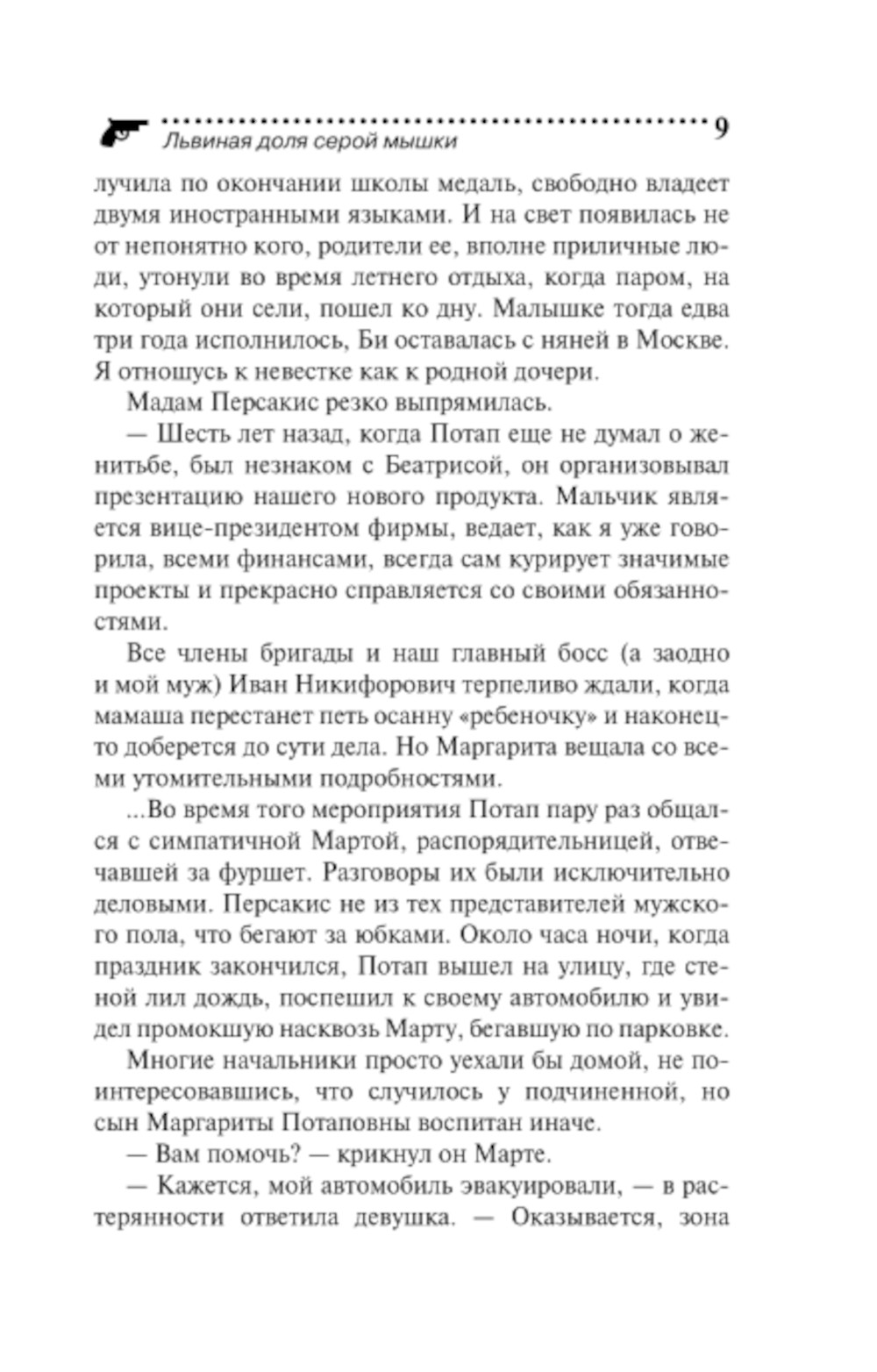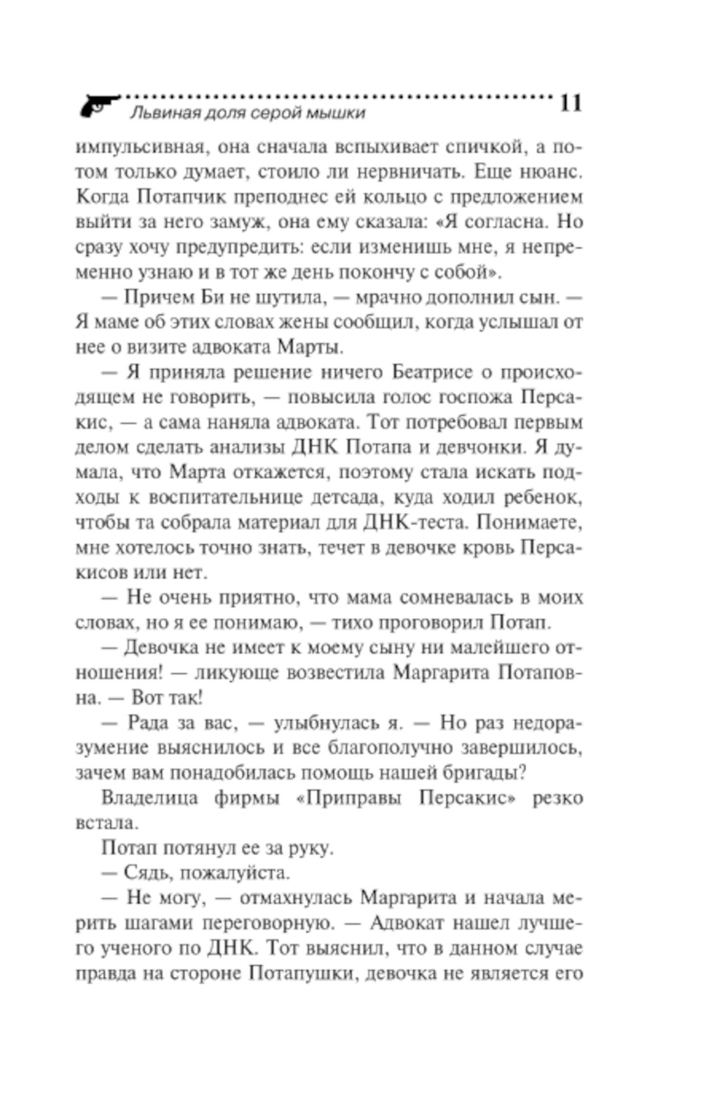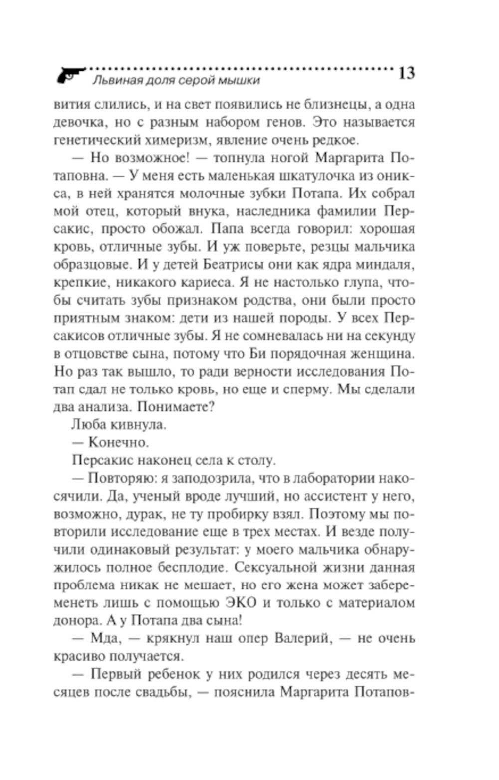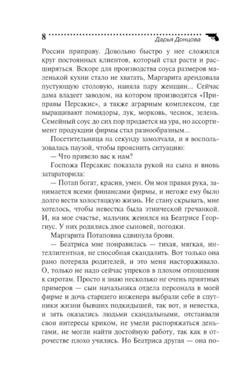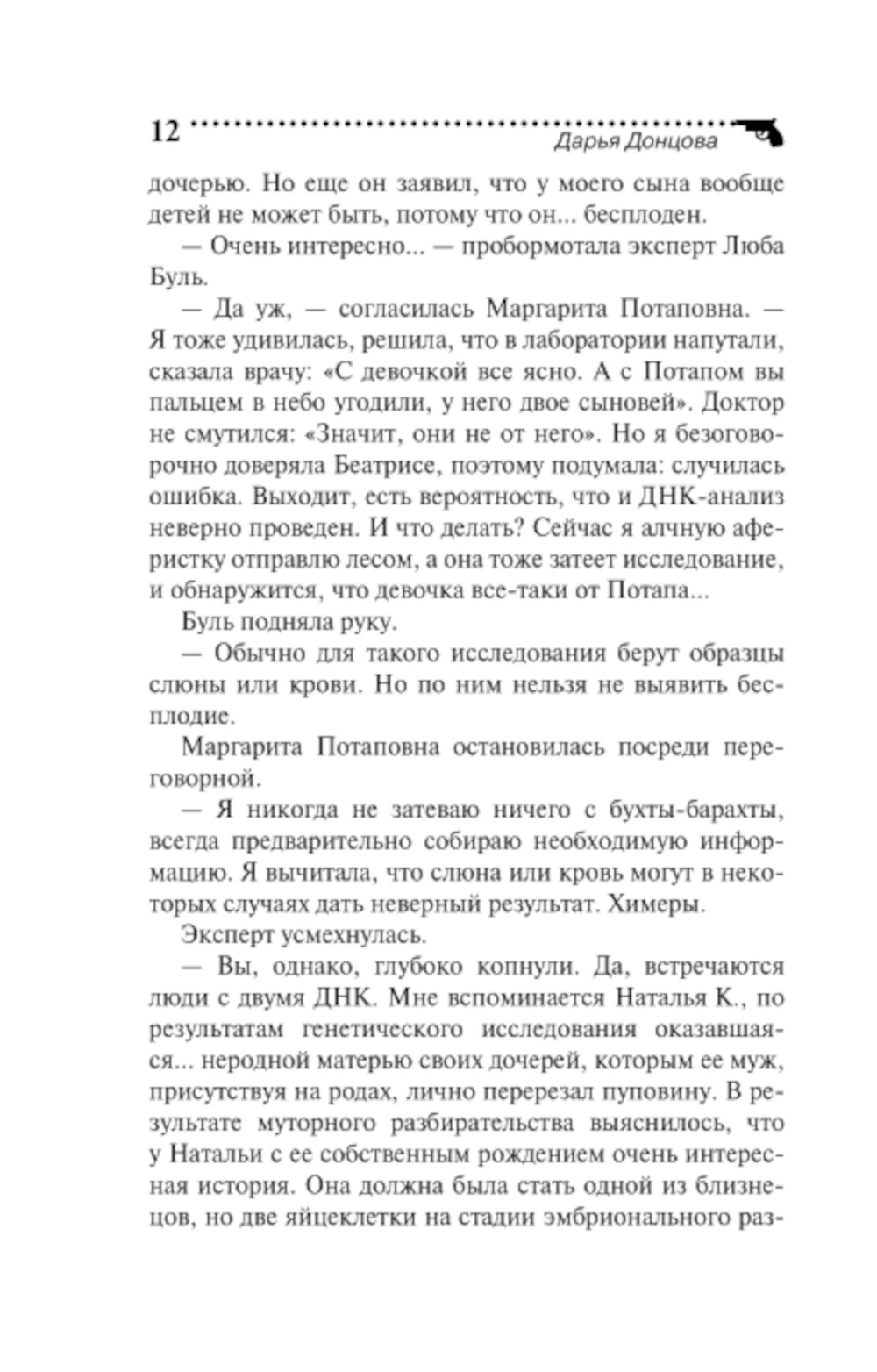 Вопрос на засыпку - как выглядит домовой? Вы спросите, да кто ж его видел? А вот Татьяна Сергеева видела существо, кое иначе чем домовым не назовешь - это похожее на гигантскую мышь лохматое создание с торчащими квадратными ушами! Но выяснять, откуда и зачем появилось в ее доме сие чудо чудное, Тане некогда - ее спецбригада проводит новое расследование. Платон Персакис и его матушка, сделав открытие, что жена Платона родила детей вовсе не от него, пожелали узнать, чьи же они. Однако не ставя в известность об этом их мать. Что ж, желание клиента - закон! И тут... выяснилось такое! Как говорится, многие знания - многие печали... Дарья Донцова - самый популярный и востребованный автор в нашей стране, любимица миллионов читателей. В России продано более 200 миллионов экземпляров ее книг. Детективы Дарьи Донцовой написаны в особой манере: помимо интереснейшего сюжета, в них всегда присутствует тонкий юмор, здравый оптимизм и безусловная вера в торжество добра над злом. Это всё, что нужно для отдыха, релаксации и душевного успокоения. Прочтите книги Дарьи, и ваши сердца и души наполнятся светом, оптимизмом, радостью, уверенностью в завтрашнем дне! Они заразят вас желанием жить, радоваться каждому дню и верить в лучшее.| Издательство | Эксмо |