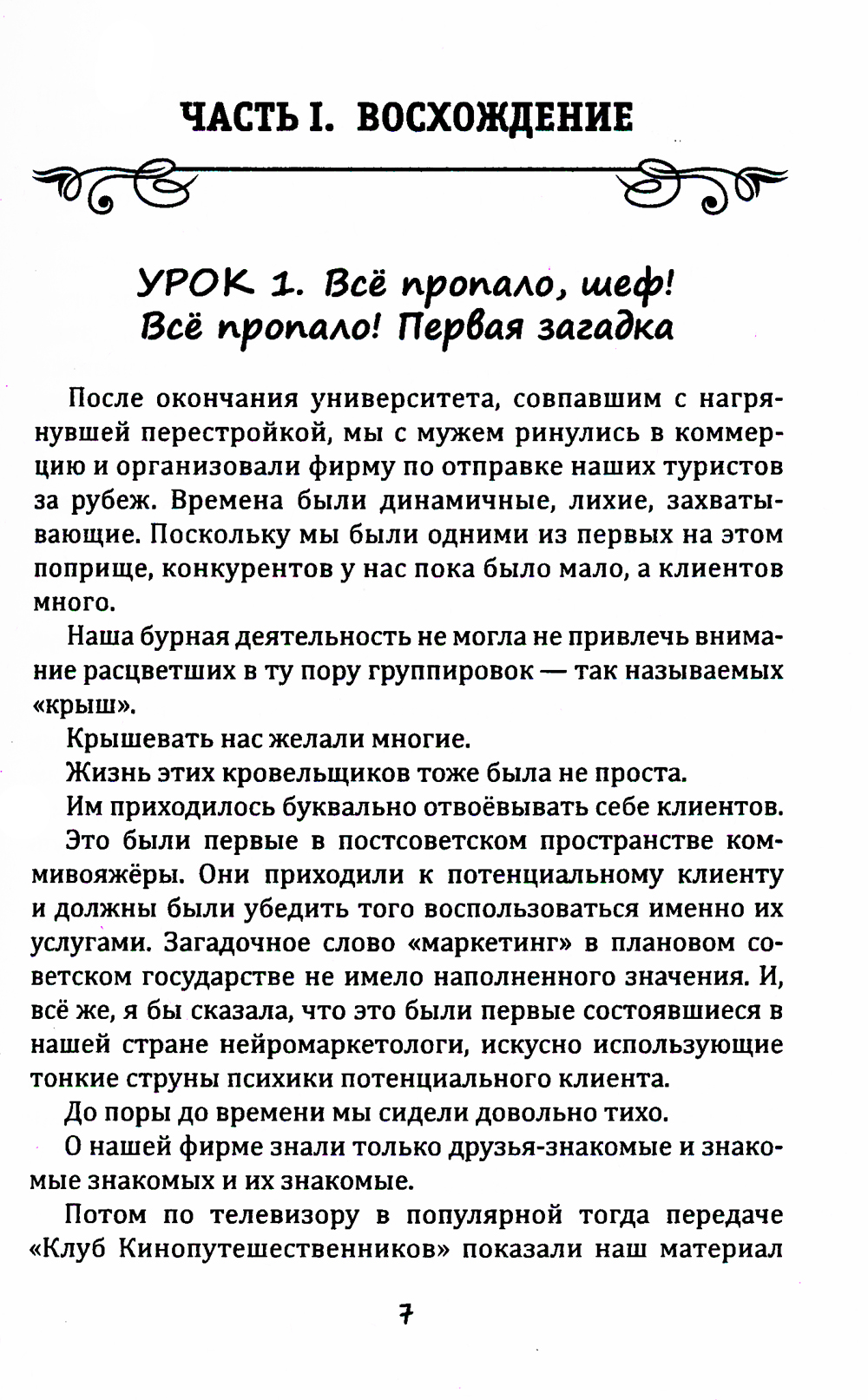 Вы любите захватывающие приключения? Вам нравится разгадывать тайны? Хотите узнать, как создать успешную турфирму с филиалами по всему миру и построить отель на берегу Средиземного моря? Как открыть самый большой в стране ювелирный центр и музей бриллиантов и основать самый модный свадебный салон в одной из европейских столиц? И как потом всё потерять? Что привело к этому- неумолимый рок или чьи-то злодейские действия? Как после всех этих событий не упасть духом и начать всё сначала? Тогда эта книга попала к вам в руки неслучайно. Алла Асатурова, автор бестселлера «Мозг всему голова», теперь выступает в новом для себя жанре иронического мотивационного детектива. Алла сама основала бизнесы в разных странах и пережила несколько банкротств. Героиня новой книги очень похожа на Аллу. Автор весело и иронично рассказывает свою увлекательную остросюжетную историю, щедро делясь лайфхаками и трюками, с помощью которых можно преодолевать любые трудности. Вас ждут невероятные приключения и загадочные интриги.| Издательство | Амрита-Русь |