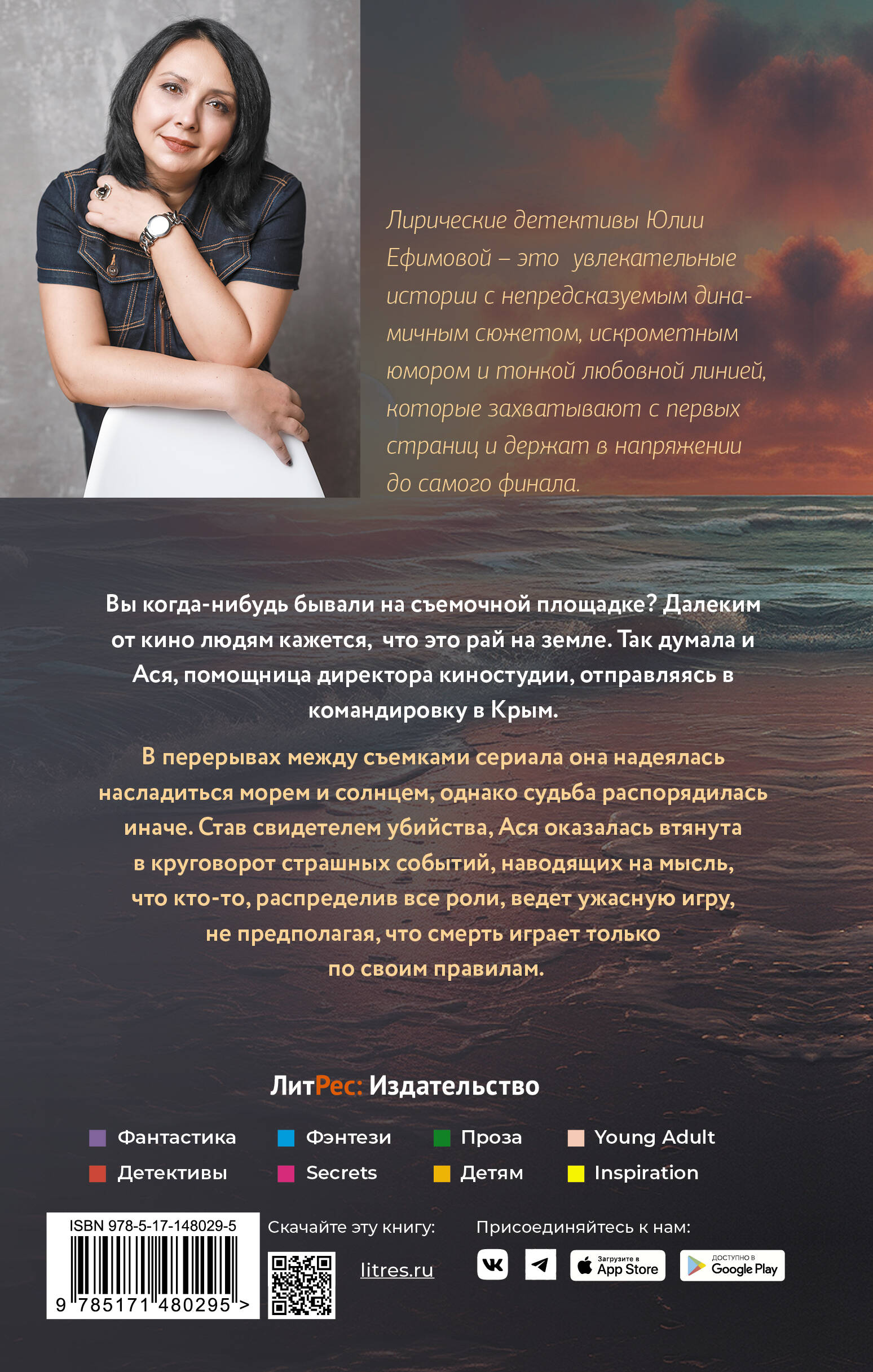 Вы когда-нибудь бывали на съемочной площадке? Далеким от кино людям кажется, что это рай на земле. Так думала и Ася, помощница директора киностудии, отправляясь в командировку в Крым. В перерывах между съемками сериала она надеялась насладиться морем и солнцем, однако судьба распорядилась иначе. Став свидетелем убийства, Ася оказалась втянута в круговорот страшных событий, наводящих на мысль, что кто-то, распределив все роли, ведет ужасную игру, не предполагая, что смерть играет только по своим правилам.