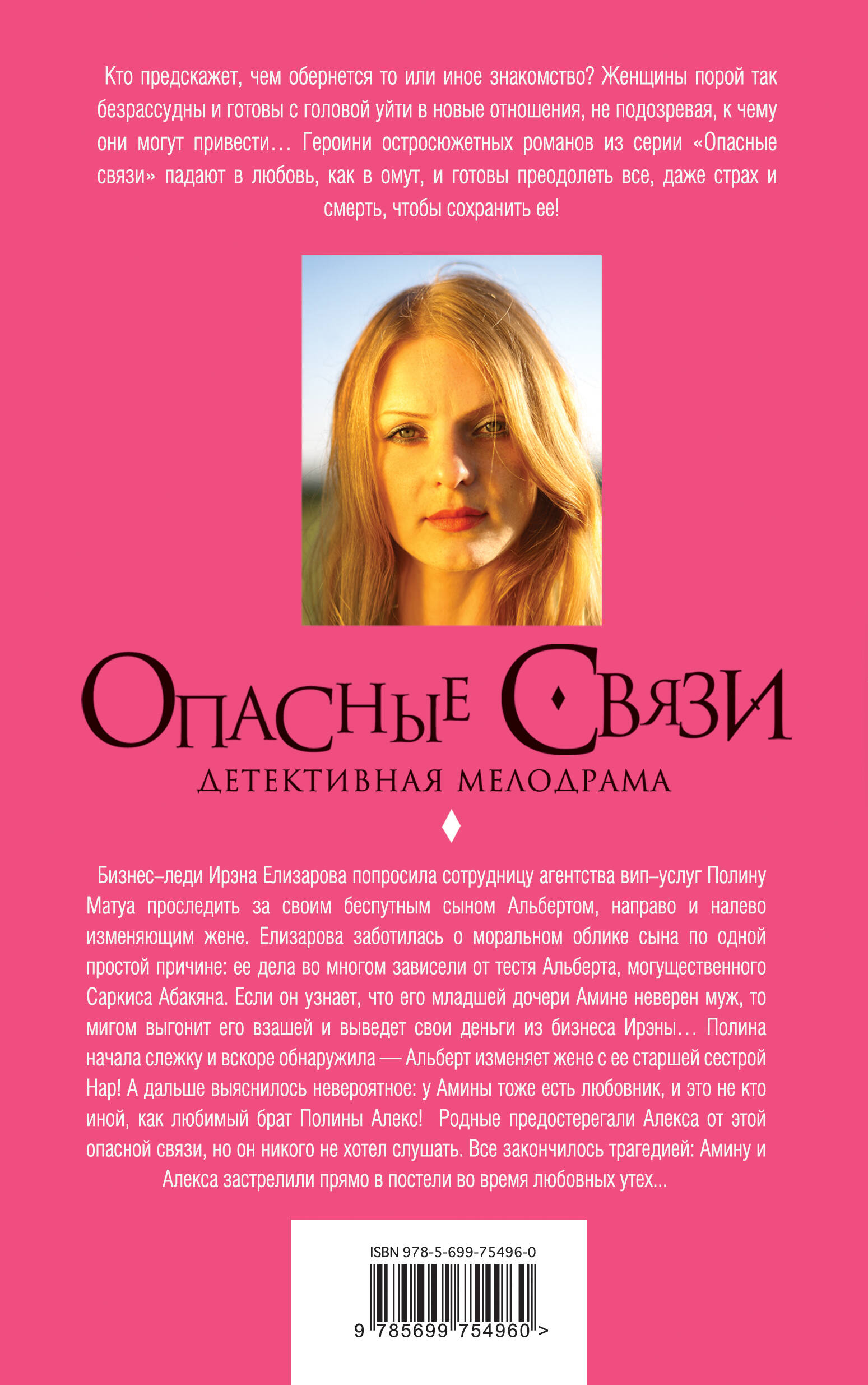 Бизнес-леди Ирэна Елизарова попросила сотрудницу агентства вип-услуг Полину Матуа проследить за своим беспутным сыном Альбертом, направо и налево изменяющим жене. Елизарова заботилась о моральном облике сына по одной простой причине: ее дела во многом зависели от тестя Альберта, могущественного Саркиса Абакяна. Если он узнает, что его младшей дочери Амине неверен муж, то мигом выгонит его взашей и выведет свои деньги из бизнеса Ирэны… Полина начала слежку и вскоре обнаружила - Альберт изменяет жене с ее старшей сестрой Нар! А дальше выяснилось невероятное: у Амины тоже есть любовник, и это не кто иной, как любимый брат Полины Алекс! Родные предостерегали Алекса от этой опасной связи, но он никого не хотел слушать. Все закончилось трагедией: Амину и Алекса застрелили прямо в постели во время любовных утех...| Издательство | ООО "Издательство "Эксмо" |