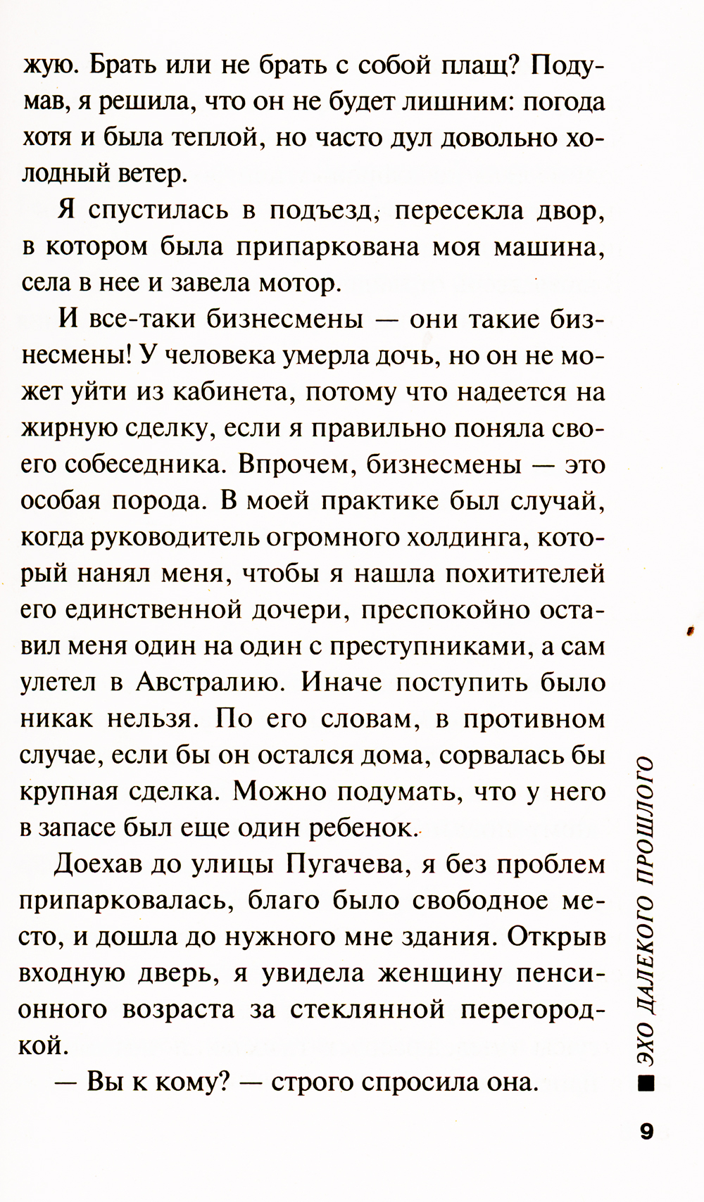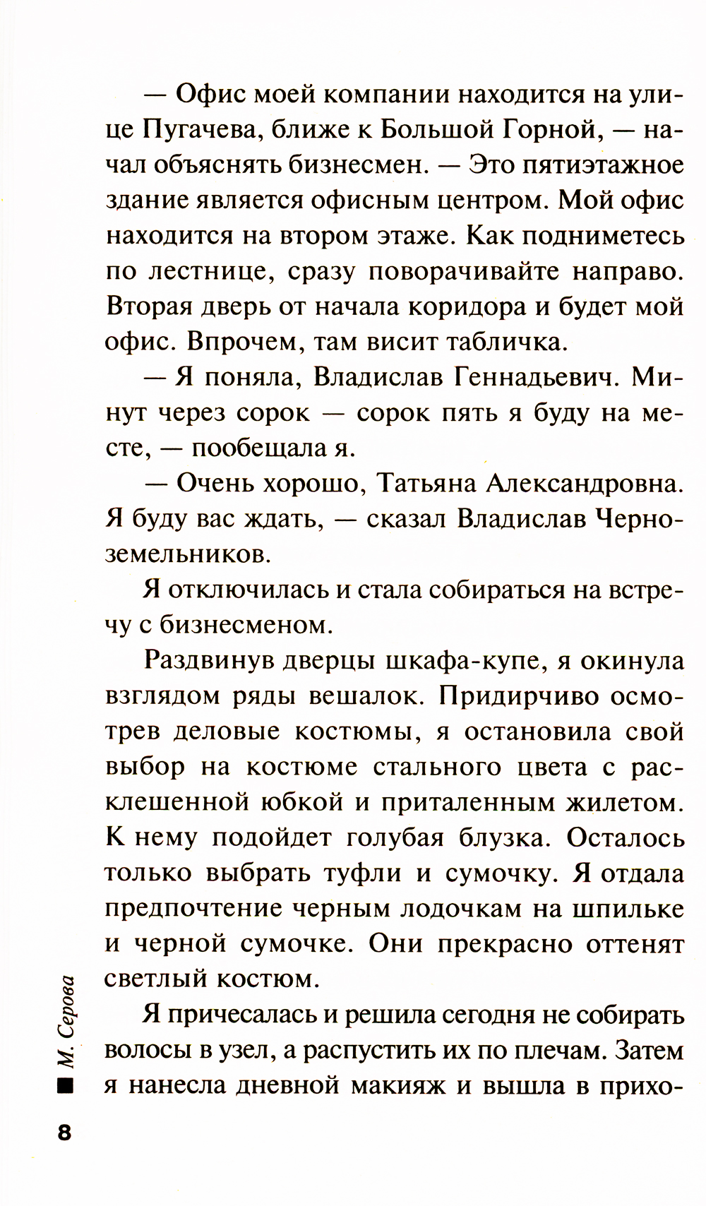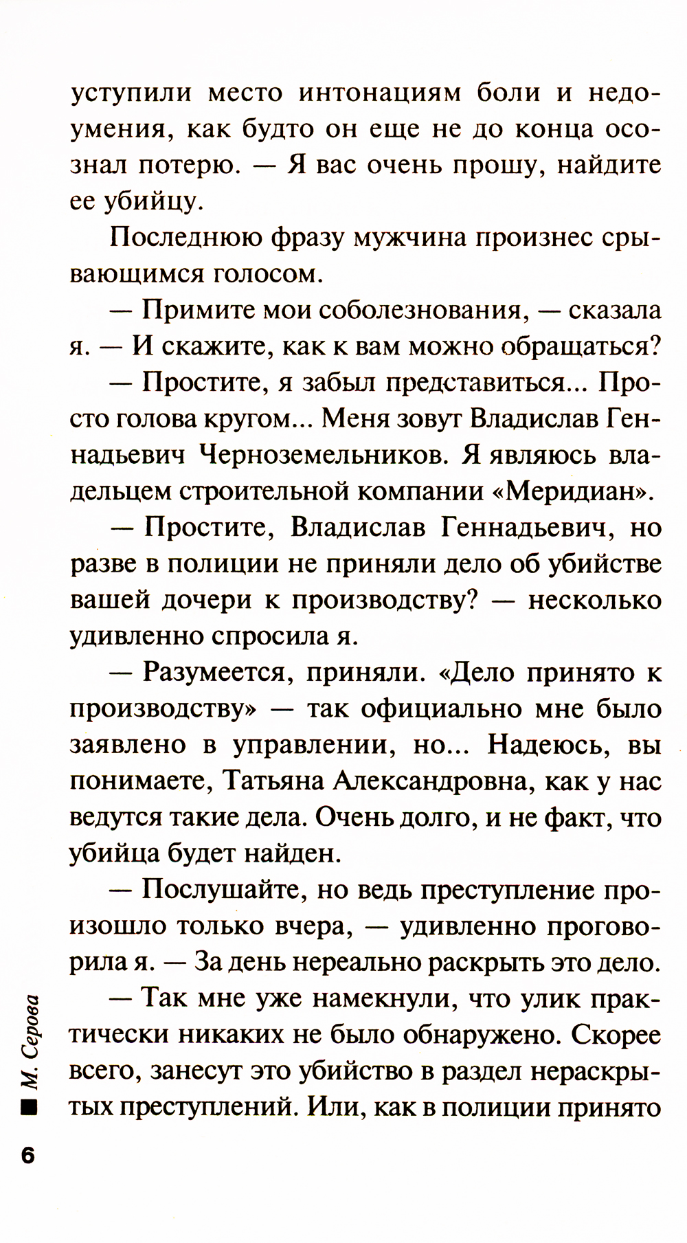 Дочь известного бизнесмена убита прямо на пороге собственной квартиры. Казалось бы, всё очевидно - кто-то хотел насолить ее отцу или ей самой, сотруднице Контрольно-Ревизионного Управления. Однако чем больше становится известно об этой женщине, тем больше сыпется скелетов из шкафов и возникает всё больше вопросов. Частному детективу Татьяне Ивановой предстоит разгадать поистине сложную загадку и убедиться лично в старой народной мудрости: богатые тоже плачут.| Издательство | Эксмо |