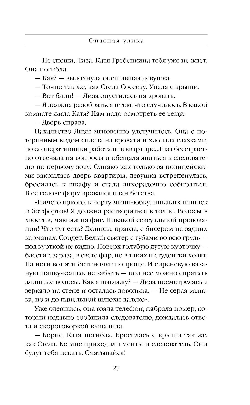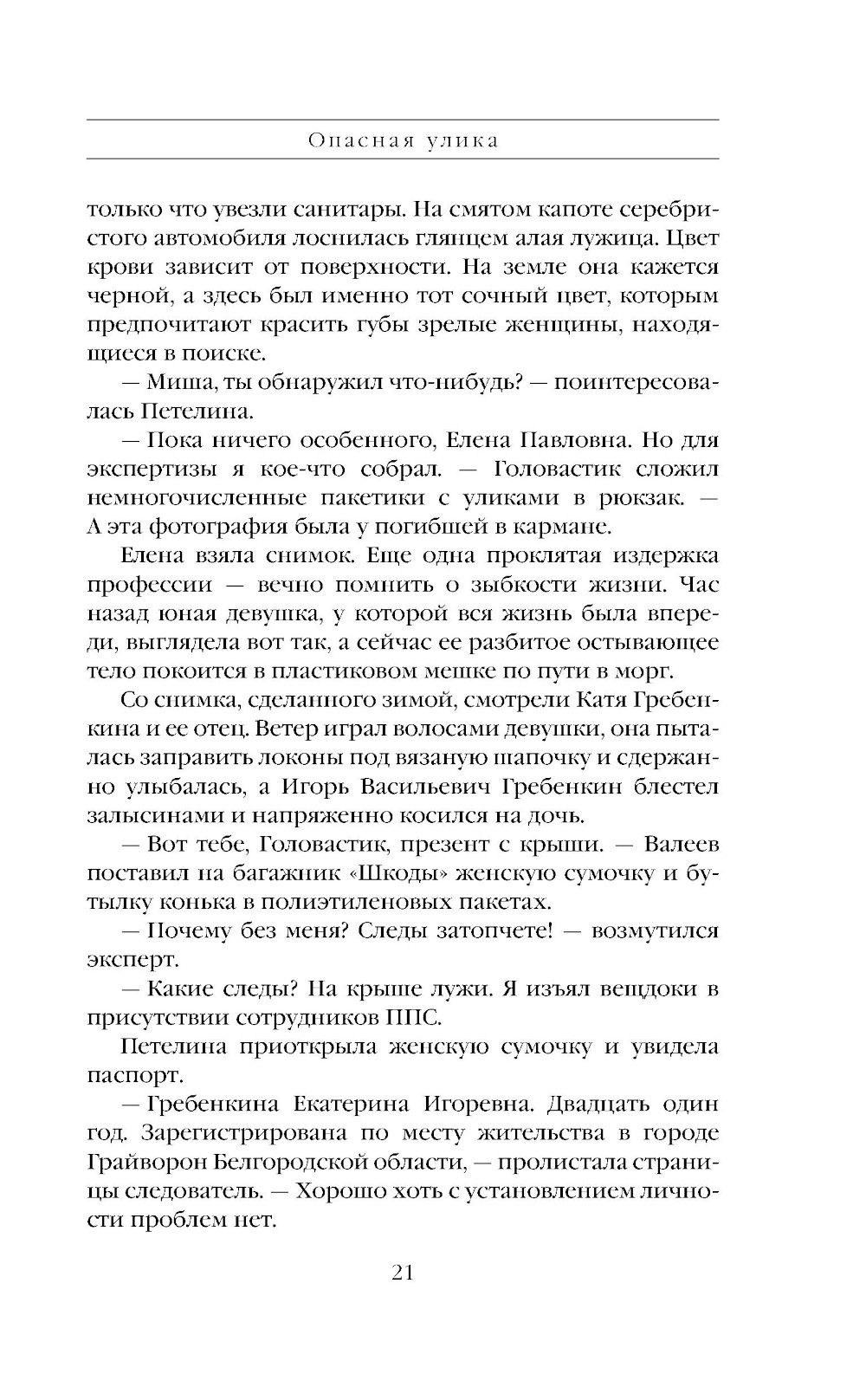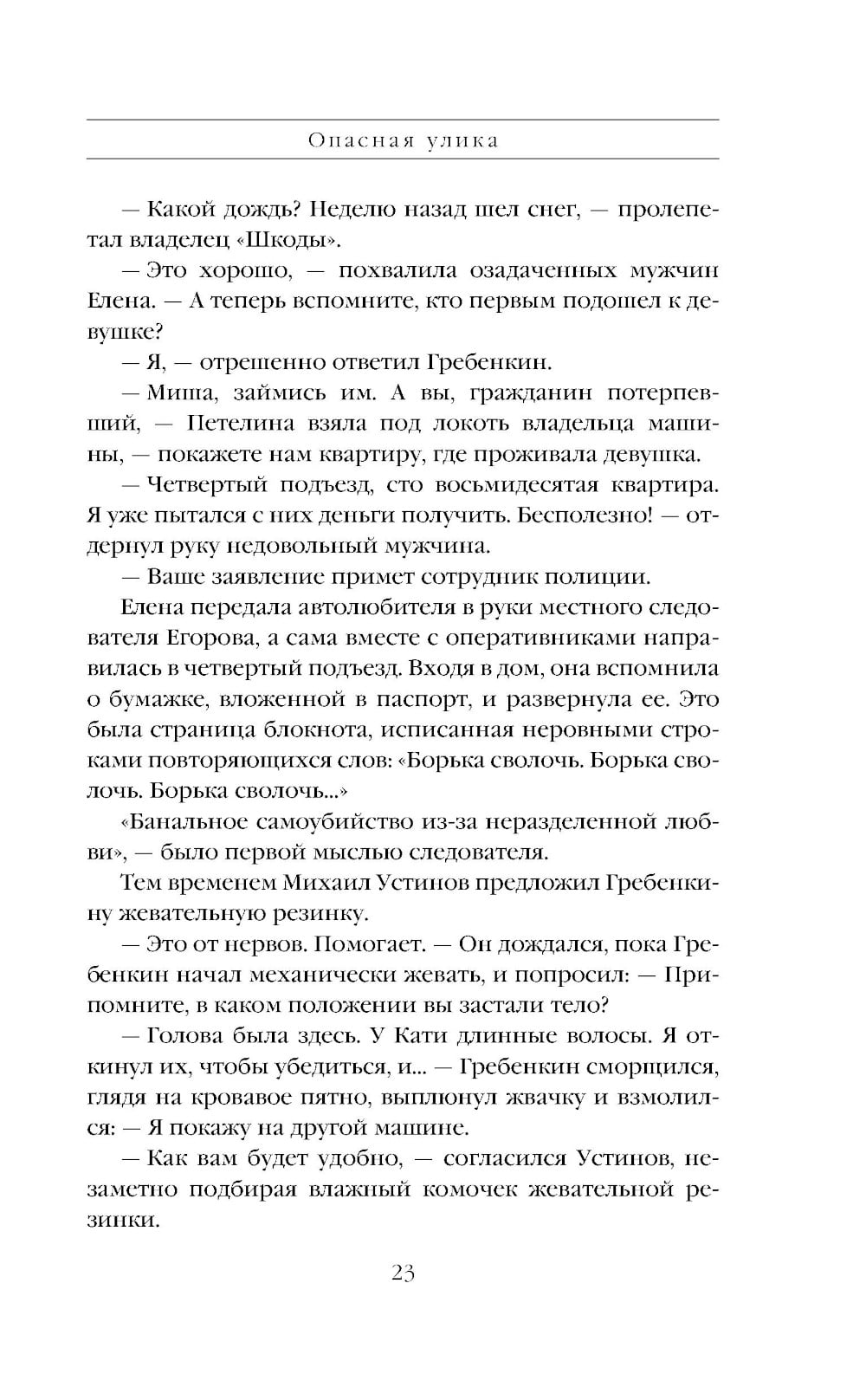 Катя еще могла связно говорить, могла вспоминать, даже смогла назвать имя своего обидчика. Но отчетливо понимала, что ее жизнь отсчитывает последние минуты. И никто уже ничего не изменит. Даже отец, который в этот момент был особенно жалок. И его нелепые попытки вырвать дочь из порочного круга... Она была спокойна как никогда. Решение принято. Мокрый ржавый край крыши скрипнул под ее ногой. Далеко внизу стоял ее отец, но он был уже в другом, параллельном мире. Последнее, что Катя сделала осознанно, - это истошно и отчаянно крикнула и шагнула в пропасть... Банальное самоубийство из-за неразделенной любви? Следователь Петелина сразу же отметает эту версию. Смерть девушки подводит ее к цепочке кровавых событий, связывающих совсем незнакомых людей, каждый из которых ищет с виду пустячок: пропавшую почтовую марку.| Издательство | Эксмо |
