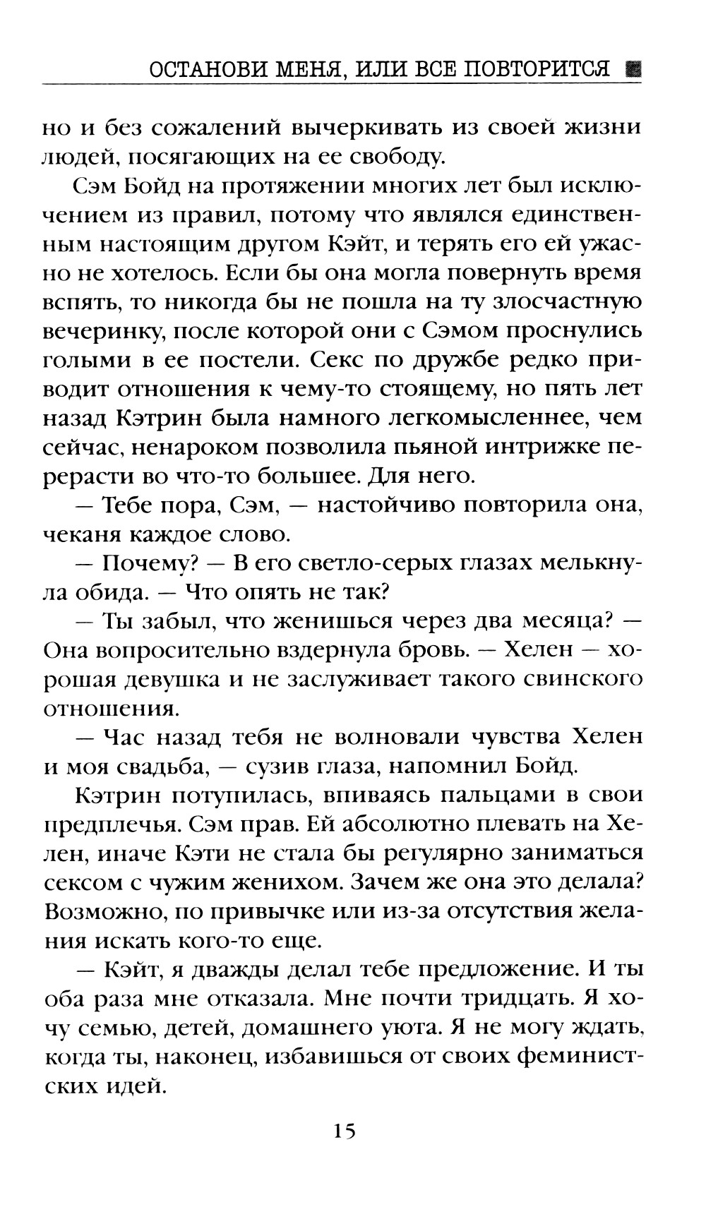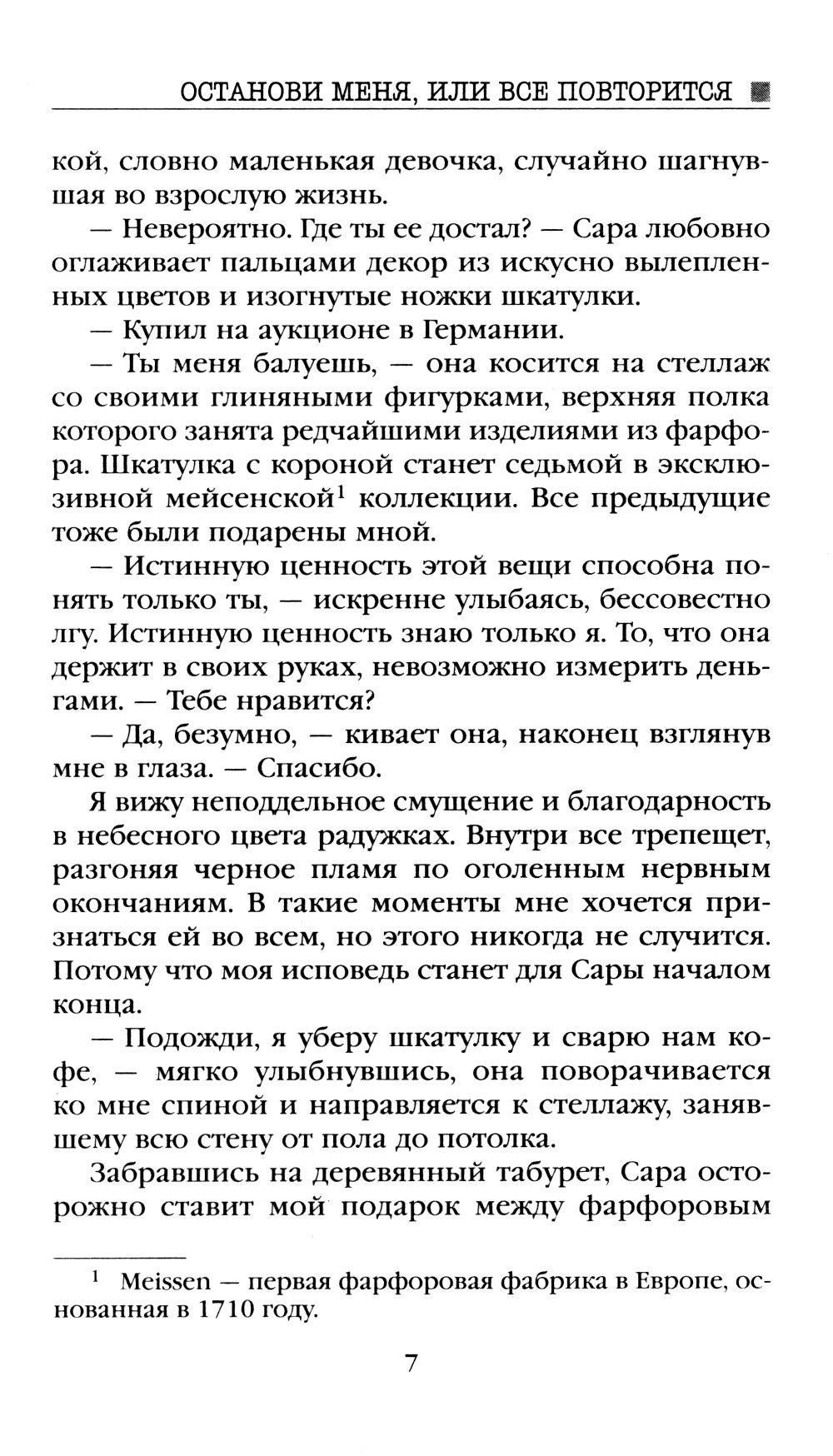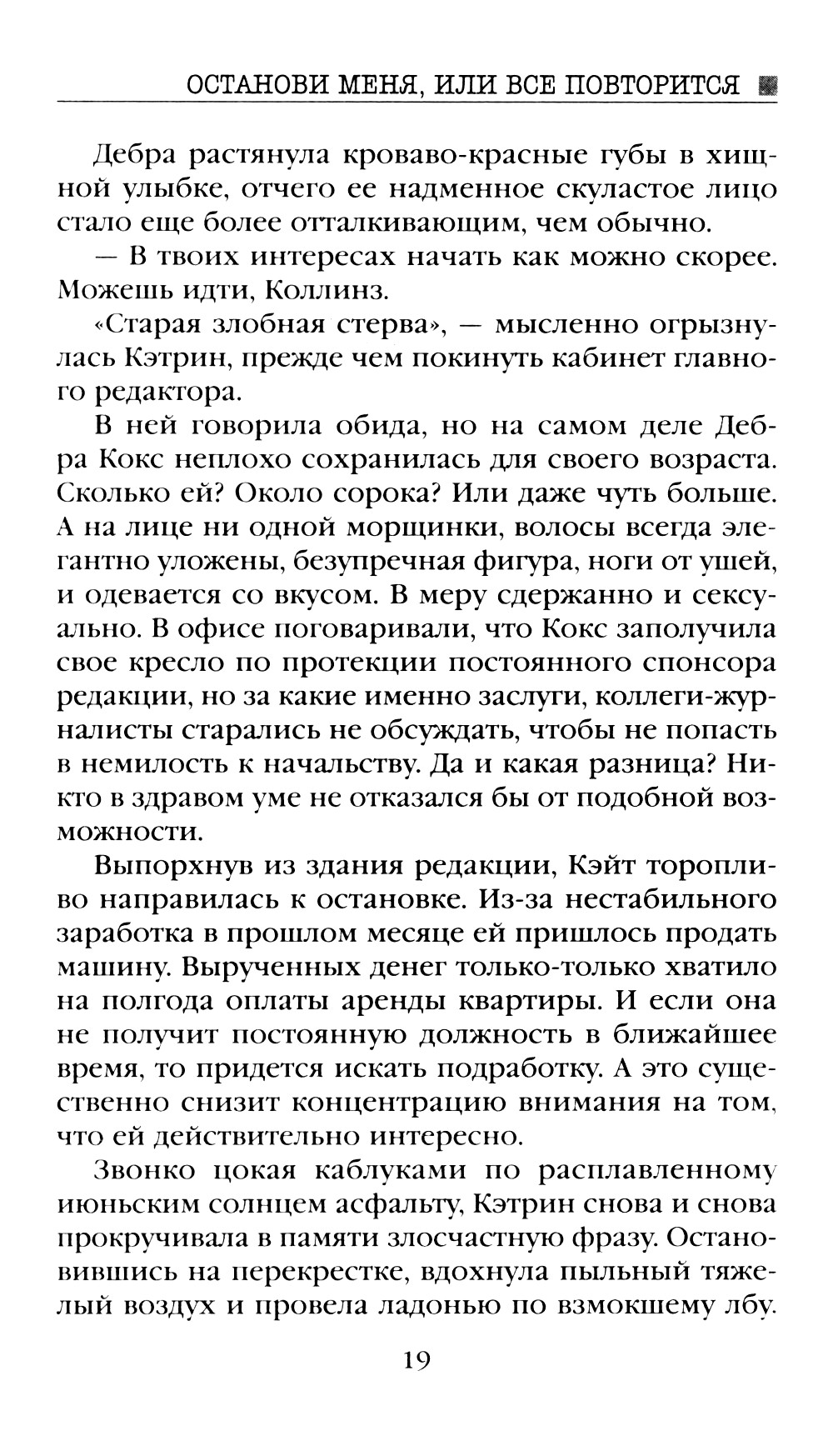 Известный писатель на пике карьеры внезапно прекращает свою творческую деятельность. В течение пяти лет из-под его пера не выходит ни одной новой книги. Несмотря на мировой успех, популярного автора никто никогда не видел в лицо. Его интересы всегда и везде представлял не менее загадочный литературный агент. Было время, когда в богемных кругах ходили слухи, что это один и тот же человек. Внештатной сотруднице крупного издательства, являющейся преданной поклонницей таинственного писателя, выпадает шанс выяснить, насколько правдивы эти домыслы. Но чтобы попасть в дом писателя в качестве личной помощницы, девушке наравне с другими претендентами придется пройти не большое испытание - написать рассказ, начинающийся со слов: «Останови меня, или все повторится».| Издательство | Яуза-каталог |