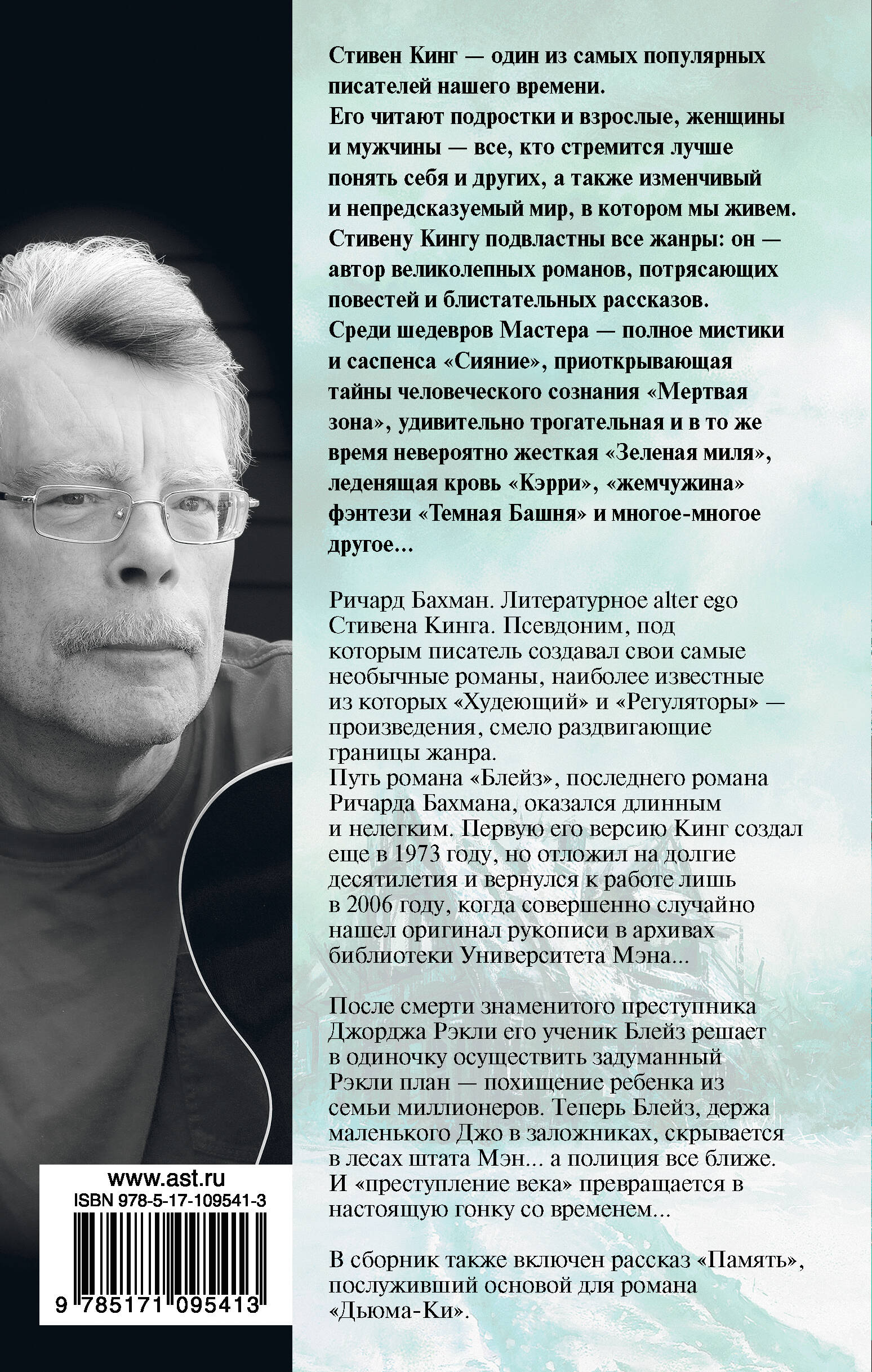 После смерти знаменитого преступника Джорджа Рэкли его ученик Блейз решает в одиночку осуществить задуманный Рэкли план - похищение ребенка из семьи миллионеров. Теперь Блейз, держа маленького Джо в заложниках, скрывается в лесах штата Мэн... а полиция все ближе. И "преступление века" превращается в настоящую гонку со вре- менем. В сборник также включен рассказ "Память", послуживший ос- новой для романа "Дьюма-Ки".| Издательство | ИЗДАТЕЛЬСТВО "АСТ" |