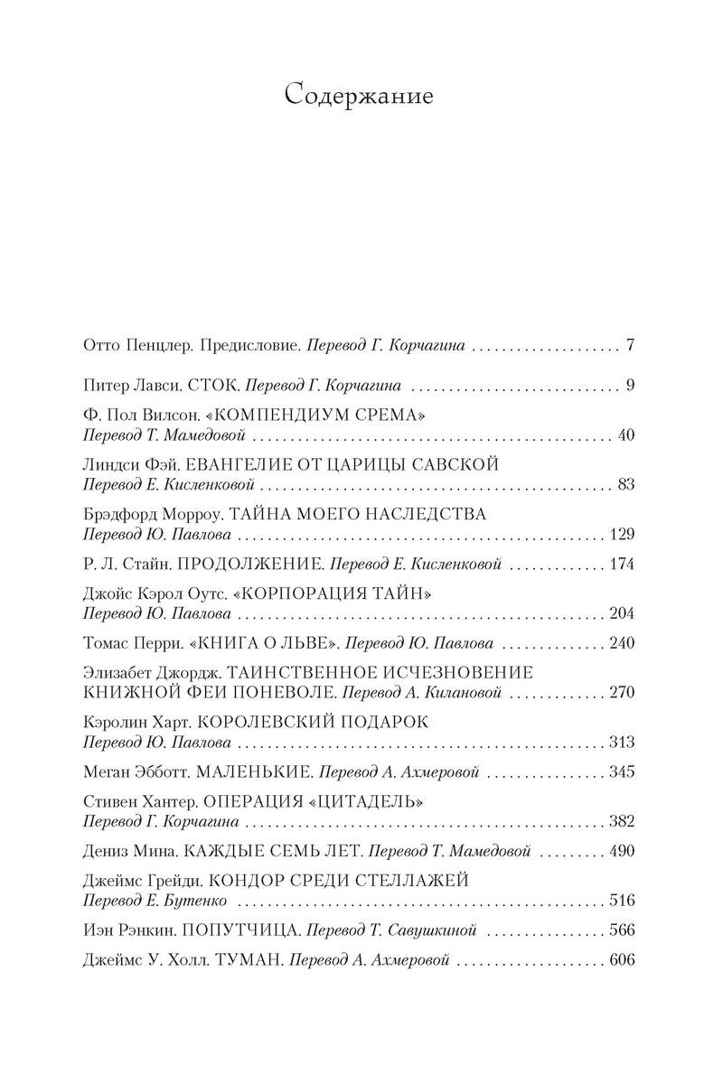 Новая антология, составленная Отто Пенцлером, лауреатом премий "Эдгар", "Эллери Куин" и "Ворон" за вклад в развитие детективного направления в литературе, получилась еще более объемной и разнообразной, чем первая. Авторы большинства рассказов прекрасно знакомы отечественным ценителям произведений детективного и остросюжетного жанра и просто любителям хорошей литературы: это Линдси Фэй, Джойс Кэрол Оутс, Элизабет Джордж, Стивен Хантер, Джеймс Грейди, Иэн Рэнкин и другие. Великий инквизитор Торквемада сражается с опаснейшим еретическим трудом, британский агент вступает в схватку с немецкой контрразведкой из-за старинной рукописи, изощренные замыслы сталкиваются с еще более изощренными, что приводит к неожиданным последствиям, а в одном из рассказов читатель вновь погрузится в викторианскую эпоху и встретится с самим Шерлоком Холмсом... Впервые на русском!| Издательство | Азбука Издательство |