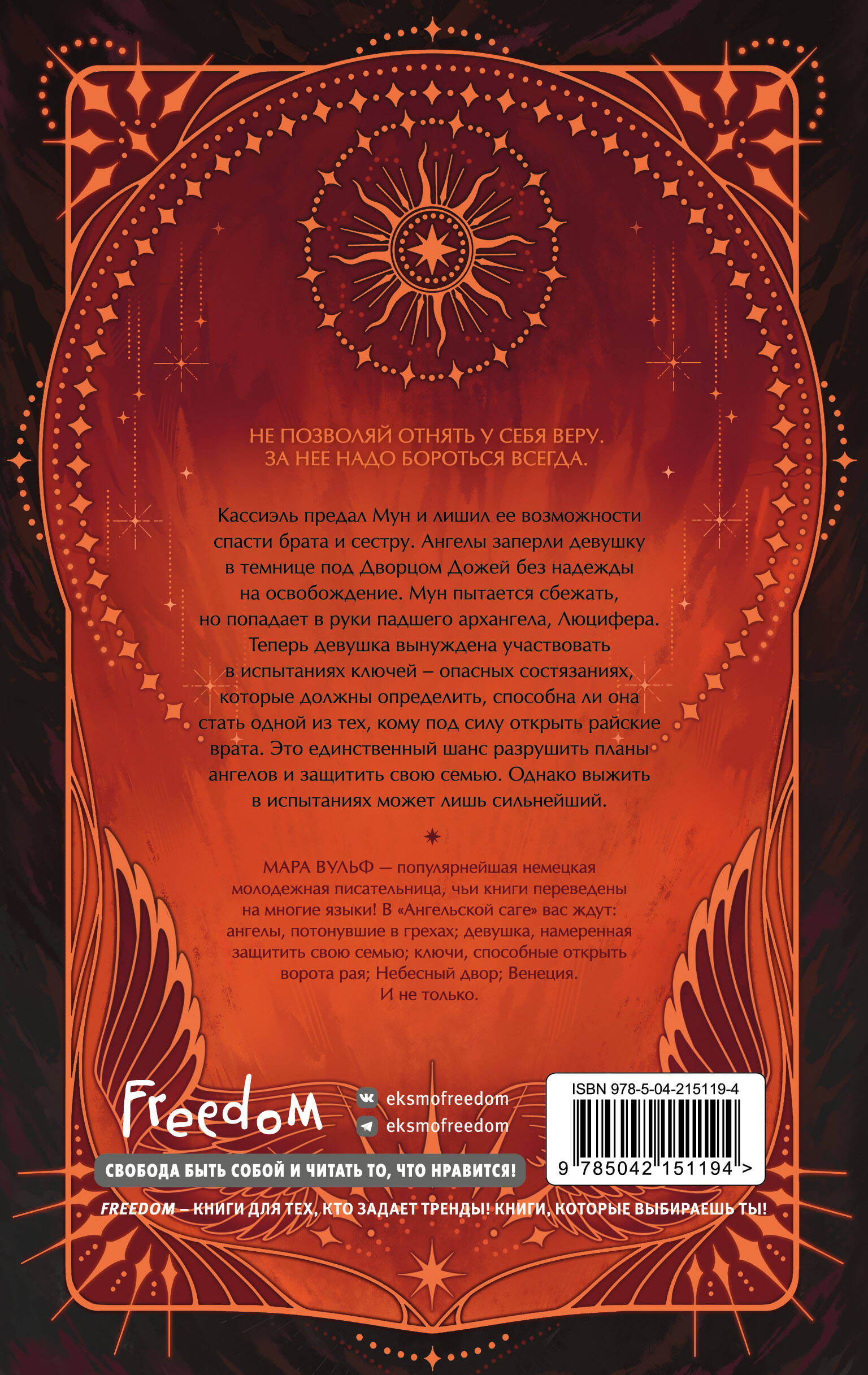 Невероятное подарочное издание знаменитой «Ангельской саги» культовой немецкой писательницы Мары Вульф! Силуэтные портреты Мун и Люцифера, медная фольга на суперобложке и под ней, запечатанный узором обрез - все для того, чтобы эстетичное оформление радовало ваш взгляд. После предательства Кассиэлем Мун оказывается в темнице. Сбежав оттуда, девушка попадает во дворец к самому Люциферу. Рядом с коварным падшим ангелом она чувствует, что тот все больше ее очаровывает. Тем временем, Мун должна пройти шесть испытаний, чтобы доказать, что является главной кандидаткой на роль ключа. С каждым новым заданием жестокость ангелов становится все страшнее, и девушке-гладиатору придется проявить всю свою силу и смекалку, чтобы одержать победу… Мара Вульф - популярнейшая немецкая молодежная писательница, чьи книги переведены на многие языки! В «Ангельской саге» вас ждут: ангелы, потонувшие в грехах; девушка, намеренная защитить свою семью; ключи, способные открыть ворота рая; Небесный двор; Венеция. И не только. Цикл продан в России тиражом более 100 тыс. экземпляров!| Издательство | ООО "Издательство "Эксмо" |