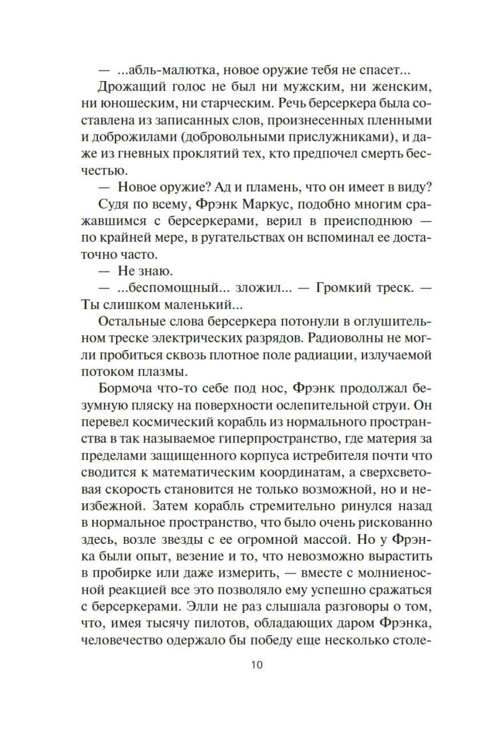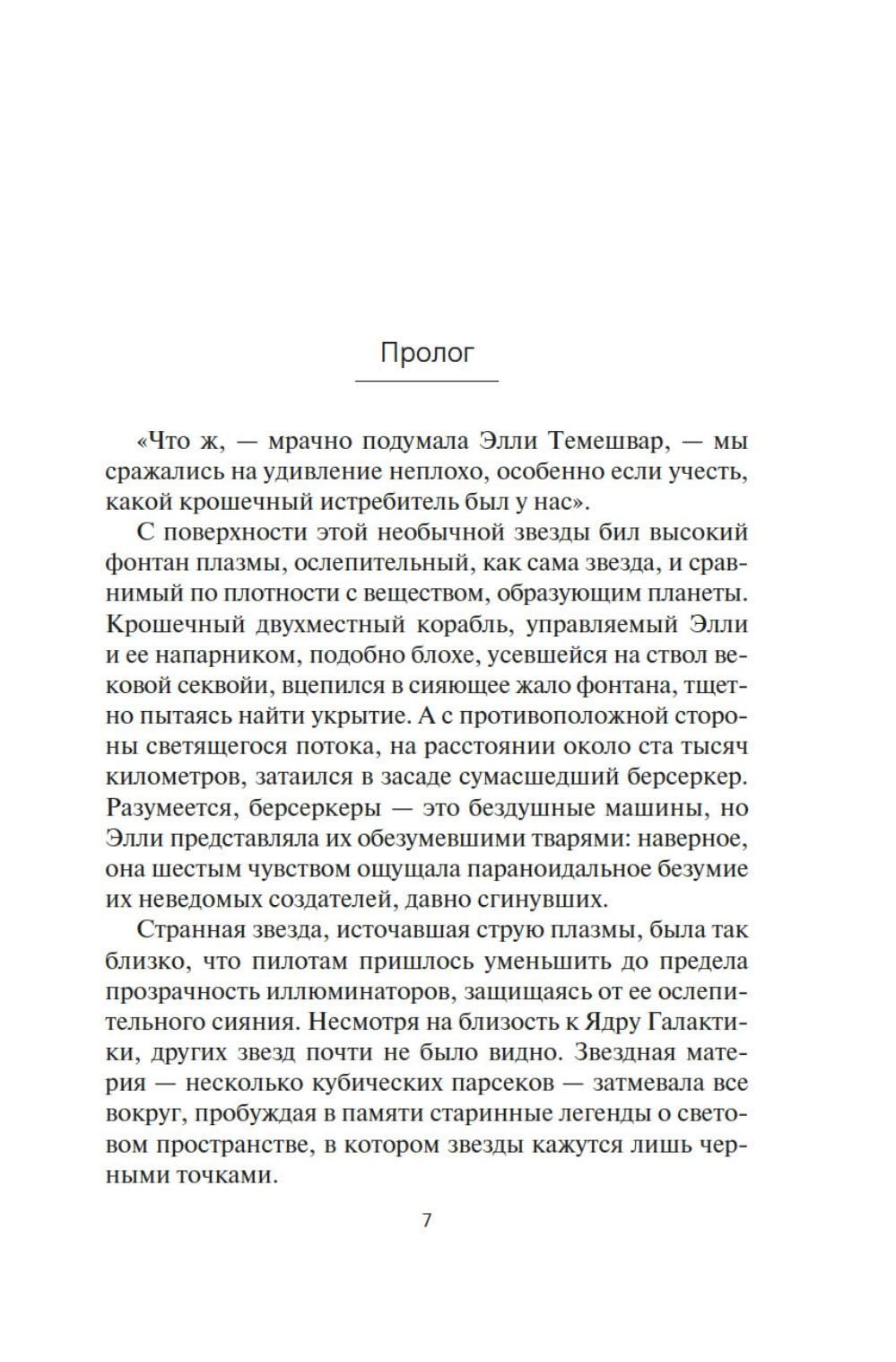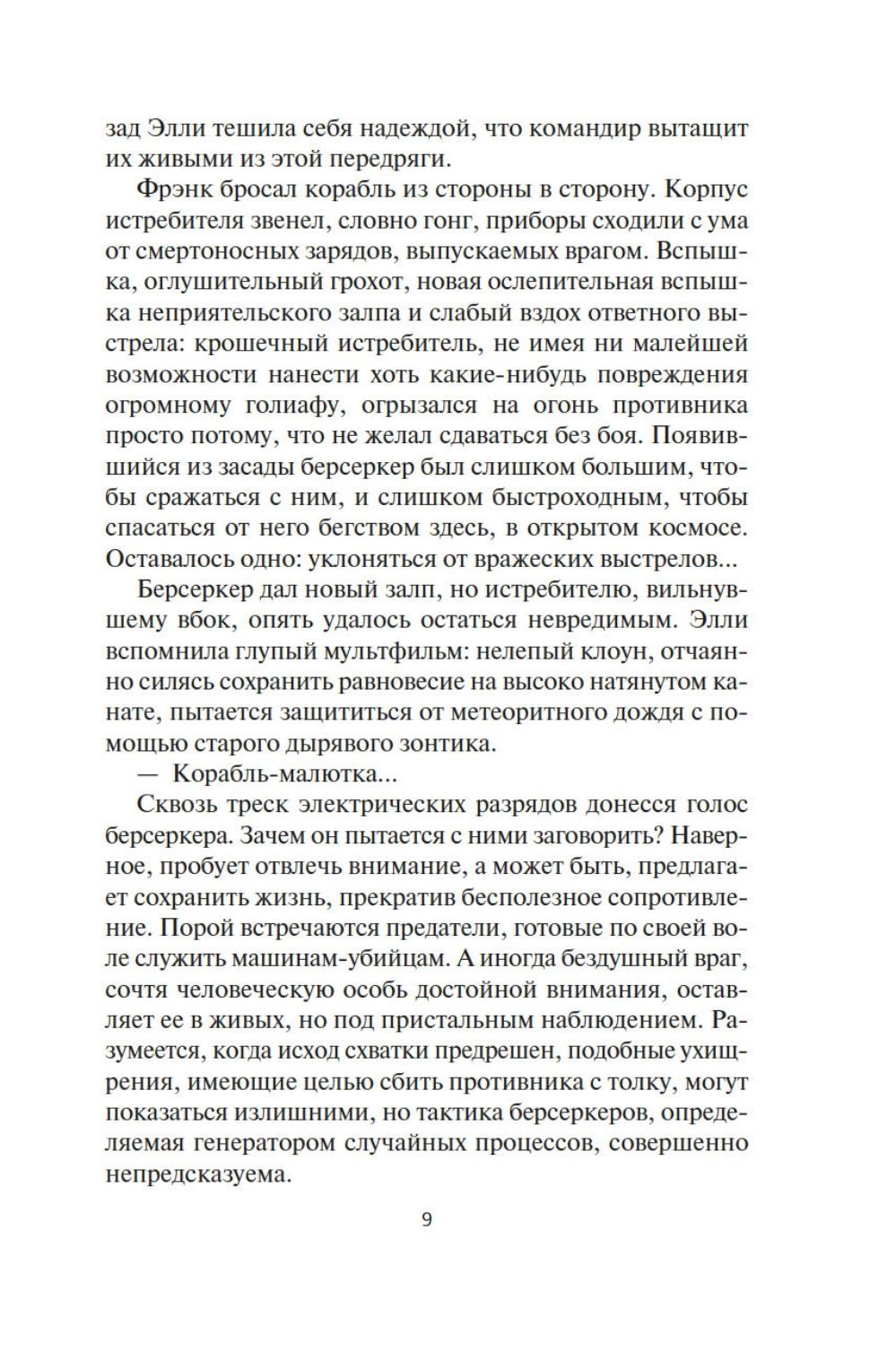 Давным-давно где-то в глубинах Вселенной встретились две расы разумных существ, и начали войну на взаимное уничтожение, и преуспели в этом. Единственное наследие той войны - абсолютное оружие, которое ей же и положило конец, машины-убийцы, наделенные компьютерным сознанием. Продвигаясь по Галактике, эти корабли величиной с планету уничтожают на своем пути все живое, потому что такова главная задача, заложенная в них создателями. И теперь они добрались до окраин освоенного людьми космоса. Люди нарекли их берсеркерами. Люди тоже умеют воевать. Люди приняли вызов. За век, прошедший после сокрушительного разгрома армады берсеркеров, человечество успело привыкнуть к миру и расслабиться. Но машины-убийцы сумели восстановиться, и на этот раз им удастся стереть человечество с лица Галактики - если их не остановит ребенок, который сам наполовину машина. В эту книгу вошли роман и два сборника рассказов.| Издательство | Азбука |