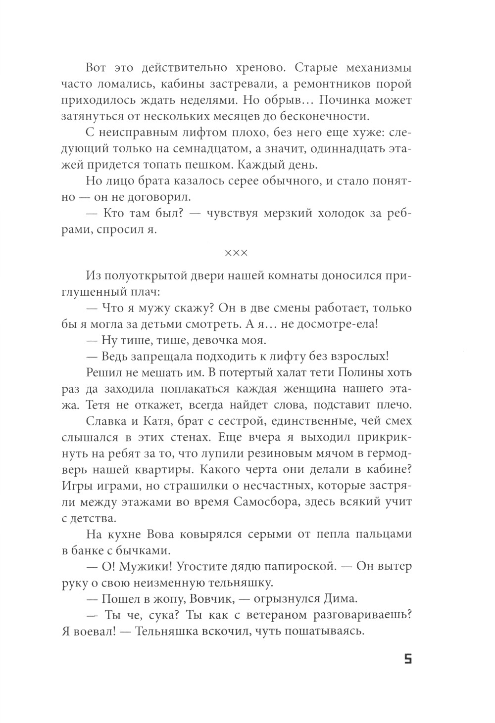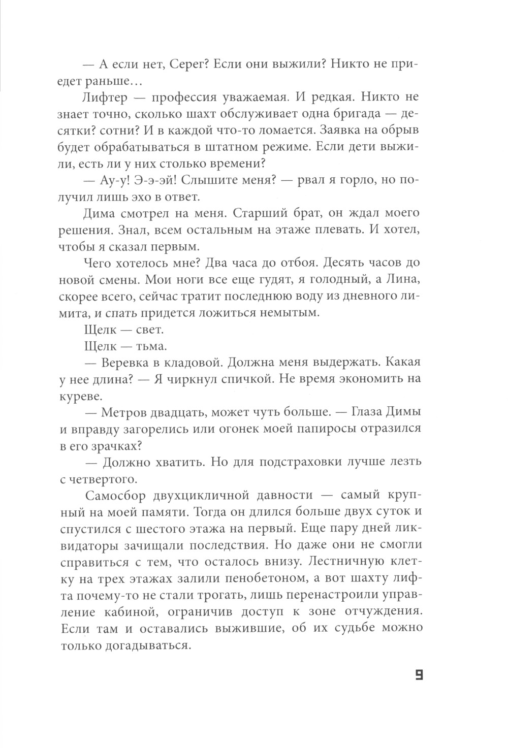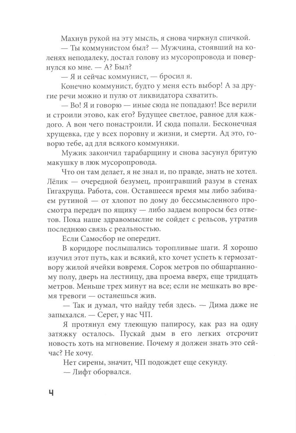 Сколько ни иди наверх - бетонные блоки. Сколько ни спускайся - этажи. Когда приходит Самосбор, сирены начинают оглушительно выть, а воздух наполняет запах сырого мяса. Спастись можно лишь за гермодверьми. Любую угрозу проникновения устранить - таково предписание Партии. Отряды ликвидаторов без жалости и сострадания борются с последствиями Самосбора, мирясь с любыми жертвами. Ведь одна лишь капля аномальной слизи несёт погибель всему живому. Где-то далеко внизу есть подвал, который многие считают мифом. Когда на одном из этажей рвётся лифтовой трос и кабина с детьми уходит вниз, жильцам настрого запрещается что-либо делать. Но даже в мире железных законов и бетонных стен, в мире, где при неверном слове за тобой могут прийти, находится нарушитель, готовый поставить на кон всё ради «благой» цели.| Издательство | Крафтовая литература |