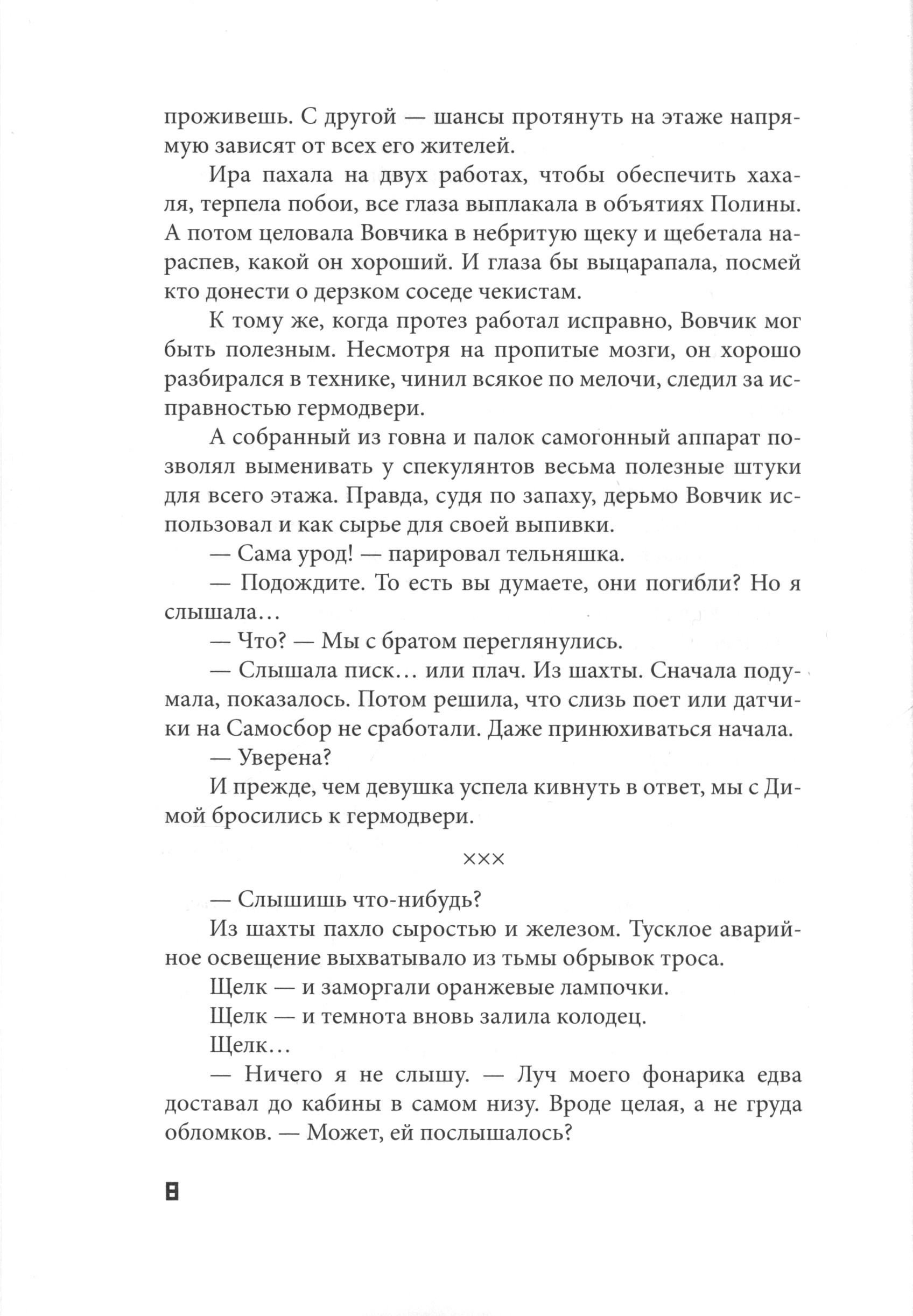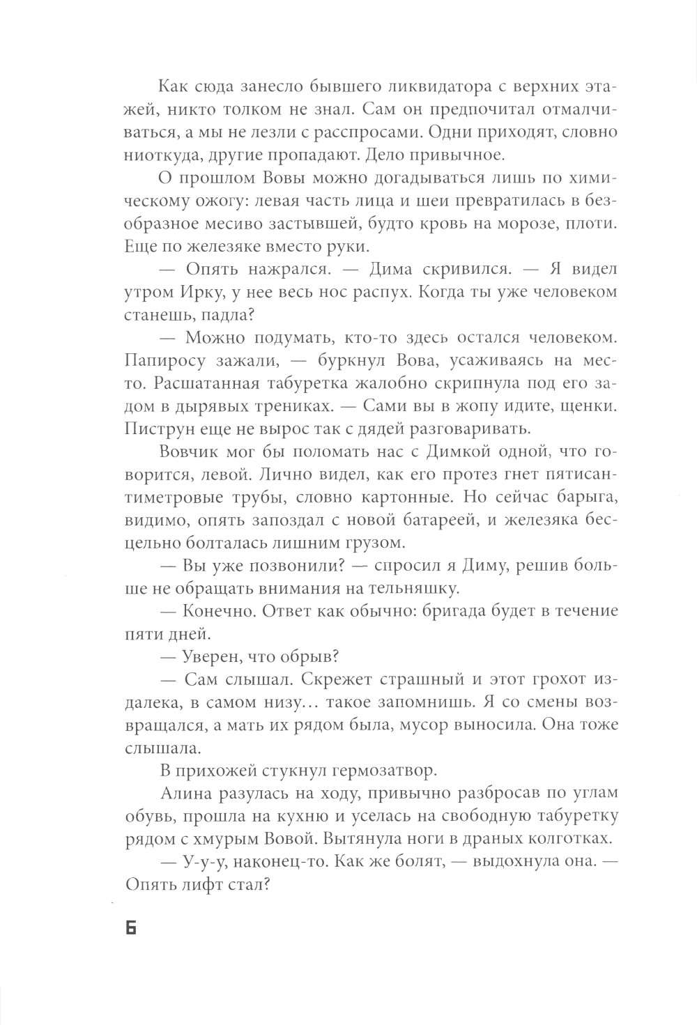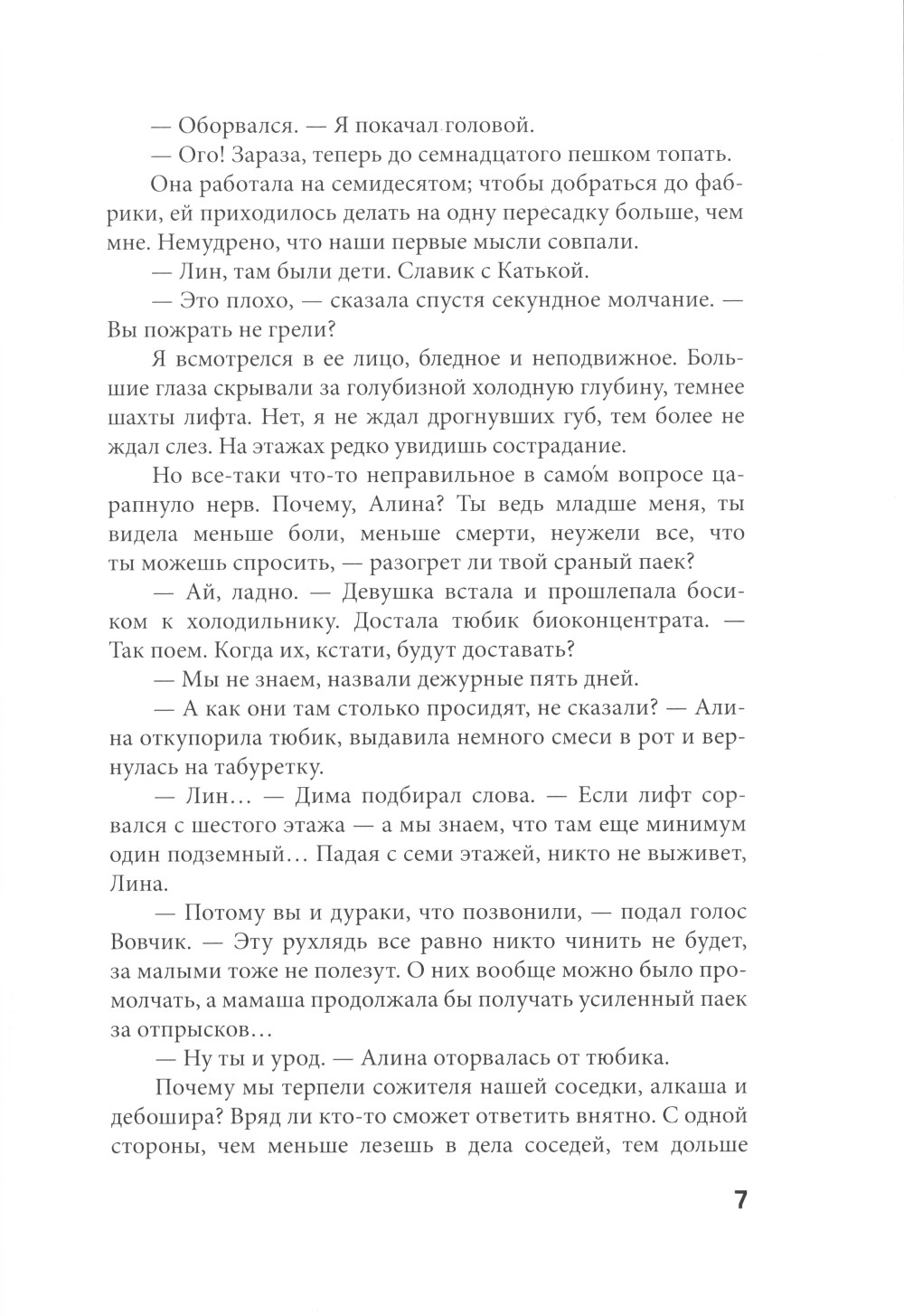Сколько ни иди наверх - бетонные блоки. Сколько ни спускайся - этажи. Когда приходит Самосбор, сирены начинают оглушительно выть, а воздух наполняет запах сырого мяса. Спастись можно лишь за гермодверьми. Любую угрозу проникновения устранить - таково предписание Партии. Отряды ликвидаторов без жалости и сострадания борются с последствиями Самосбора, мирясь с любыми жертвами. Ведь одна лишь капля аномальной слизи несёт погибель всему живому. Где-то далеко внизу есть подвал, который многие считают мифом. Когда на одном из этажей рвётся лифтовой трос и кабина с детьми уходит вниз, жильцам настрого запрещается что-либо делать. Но даже в мире железных законов и бетонных стен, в мире, где при неверном слове за тобой могут прийти, находится нарушитель, готовый поставить на кон всё ради «благой» цели.| Издательство | Крафтовая литература |