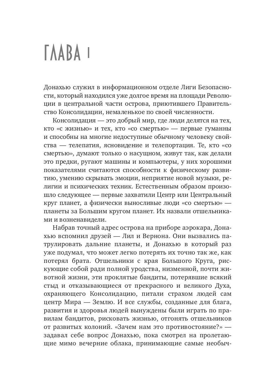 Будущее четыре с половиной столетия спустя. Земля, Марс, Венера и прочие планеты Солнечной системы находятся под властью Правительства Консолидации, которому покровительствует Дух, наделивший людей способностями к ясновидению, телепатии и телепортации. Однако не все приняли дары Духа - те, кто отказался и переселился за границы Большого круга планет, стали именоваться отшельниками, "варварами". Жители Консолидации и последние сосуществуют в режиме вооруженного противостояния, и стычки кораблей в космосе происходят постоянно. В одной из таких стычек у Донахью Виирклая бесследно пропал брат Дэвид, но он не теряет надежды и продолжает розыски. Кара Кристиан умна, красива, благородна и обладает способностями, чтобы сделать прекрасный мир Консолидации еще лучше. Но ей всего семнадцать и в политических играх ее не берут в расчет, хотя и приняли на начальную должность в правительство, где ее мать Анна занимает высокий пост. Волею судеб именно Кара и Донахью узнают о правительственном заговоре - кто-то из лидеров партии научился обходить заветы Духа и безнаказанно творит чёрные дела. Им предстоит не только смертельно опасная игра с преступниками, готовыми на всё, лишь бы удержать власть, но также они приоткроют завесу тайны над исчезновением его брата.| Издательство | Рипол Классик |