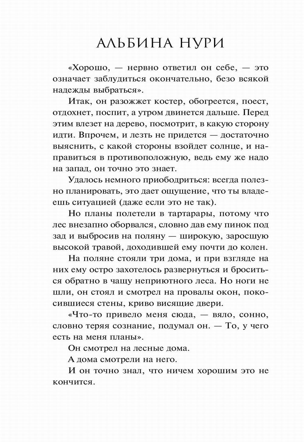 Лизавета и Ян приехали в эту деревню ненадолго. Чтобы жена не заскучала, Ян придумал субботний поход в ближайший лес к живописному водопаду. Казалось бы, вот она - дорога, все близко! Но неожиданно для себя они заблудились и попали на странную поляну, где стояли три деревянных дома необитаемого вида. Наступала ночь, поэтому супруги решили поставить палатку и переночевать прямо здесь, хотя зловещее место их откровенно пугало. Ночью Лизавета внезапно проснулась и увидела, что мужа нет рядом. Она вышла из палатки, заметила свет в окне одного из домов и направилась туда. Оказавшись внутри, заметила, что углов словно нет, они утопают во тьме. А утром они пустились в обратный путь, еще не зная, кого приведут за собой… Альбина Нури не боится шагнуть за границы непознанного. В ее мистических триллерах из авторской серии «За гранью реальности» наш мир переплетается с зазеркальем, и только во власти героев сделать выбор, на какой стороне остаться.| Издательство | Эксмо |