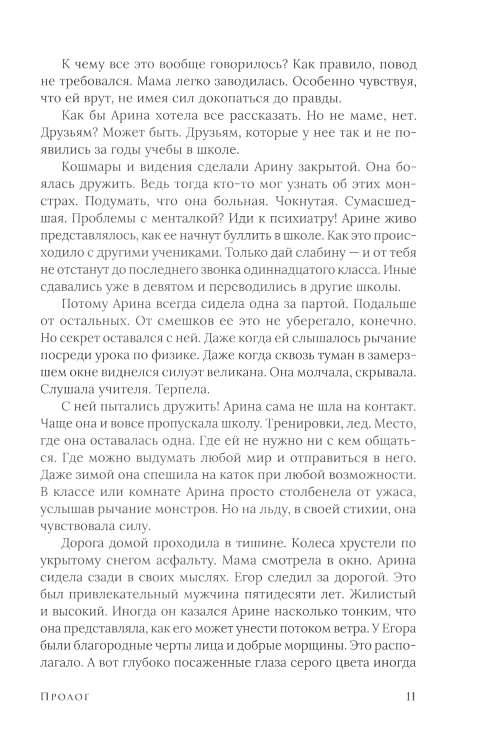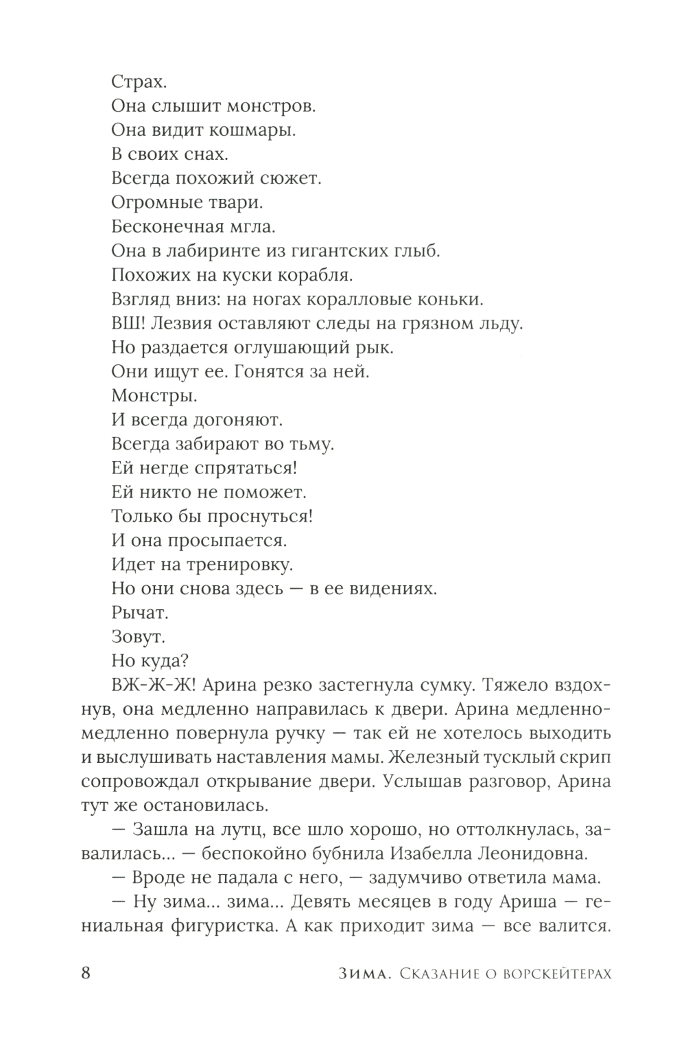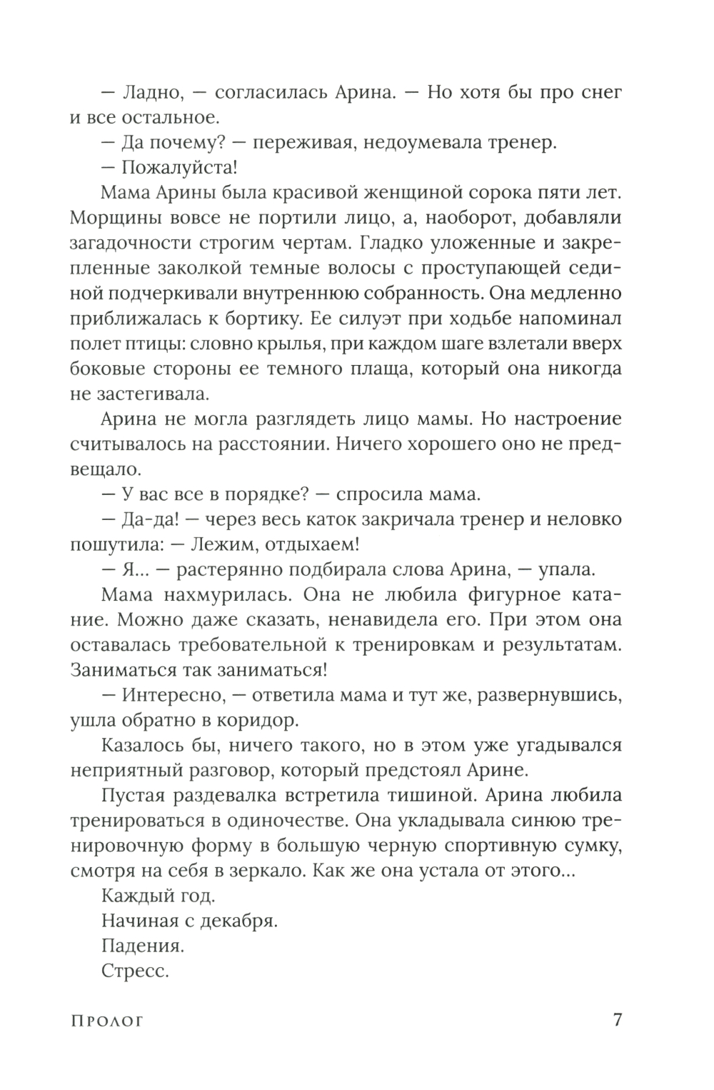 Жизнь юной фигуристки Арины знакома каждому спортсмену: тренировки - дом - тренировки - дом. За одним исключением: каждый раз, когда она выходит зимой на лед, то видит... монстров! Ей кажется, что она сходит с ума. Но говорить об этом Арина боится. Да даже если бы она решилась, кому рассказать? Мама - тот еще кусок льда,а одноклассники... нет, спасибо! Арина всю жизнь один на один бьется со своими страхами. Но однажды... Прыжок в три, четыре... семь оборотов - есть! Мировой рекорд перенесет ее в другой мир, где монстры станут реальностью.| Издательство | Феникс |