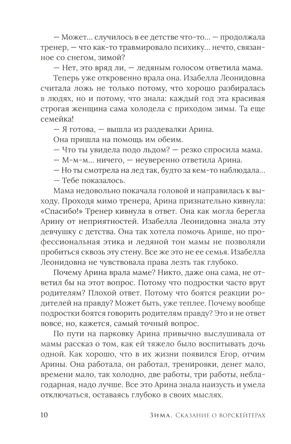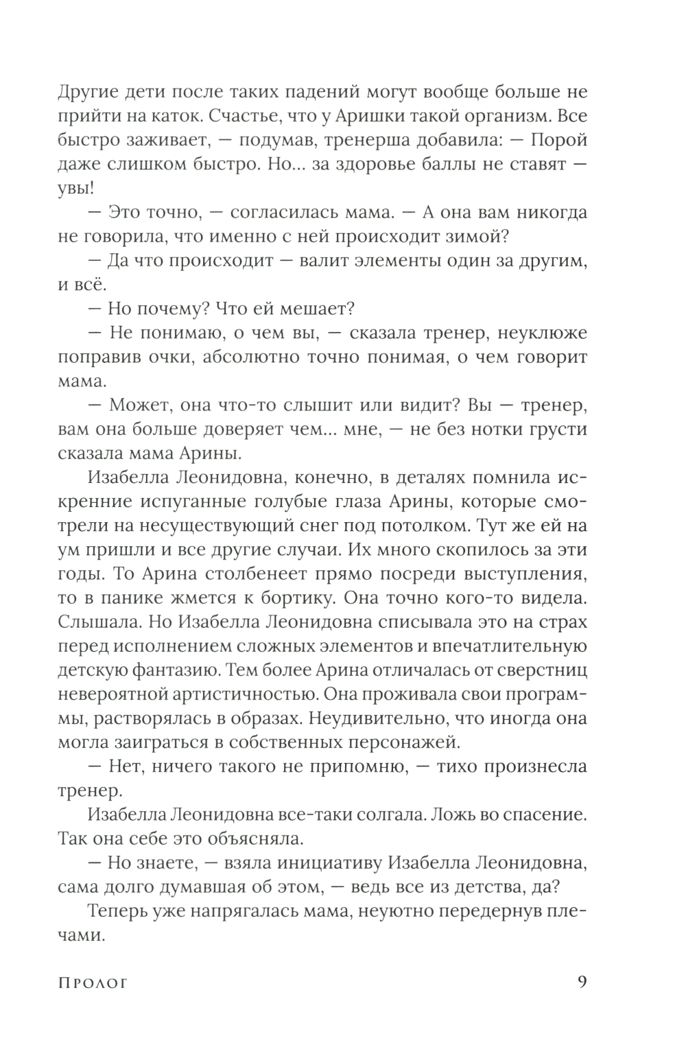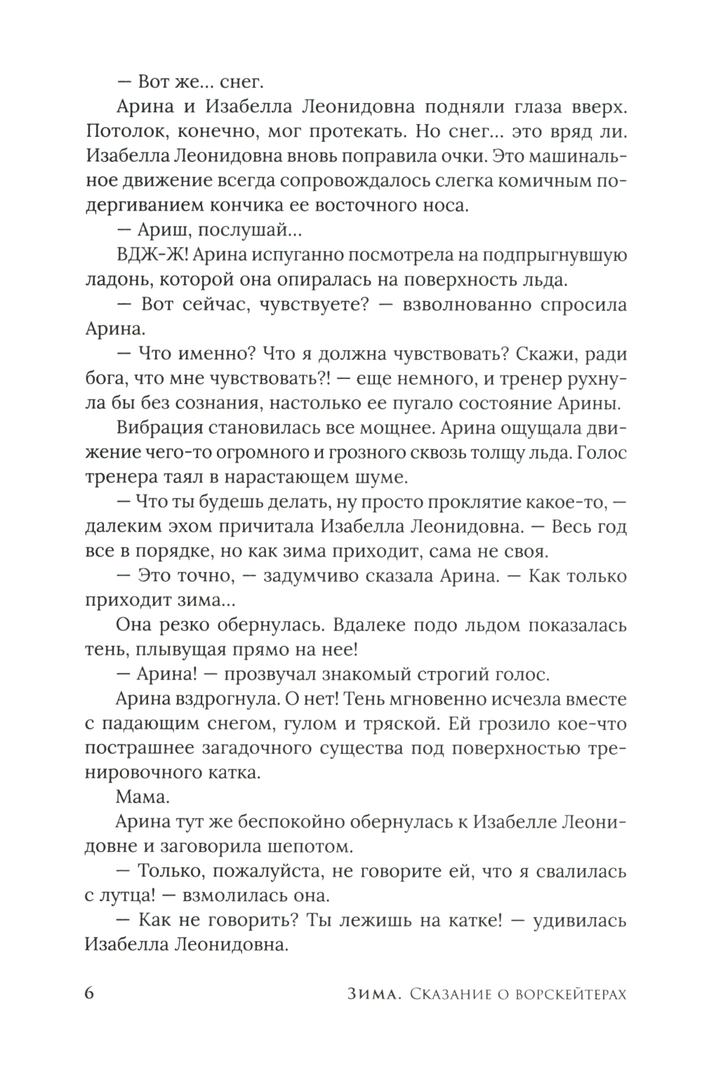 Жизнь юной фигуристки Арины знакома каждому спортсмену: тренировки - дом - тренировки - дом. За одним исключением: каждый раз, когда она выходит зимой на лед, то видит... монстров! Ей кажется, что она сходит с ума. Но говорить об этом Арина боится. Да даже если бы она решилась, кому рассказать? Мама - тот еще кусок льда,а одноклассники... нет, спасибо! Арина всю жизнь один на один бьется со своими страхами. Но однажды... Прыжок в три, четыре... семь оборотов - есть! Мировой рекорд перенесет ее в другой мир, где монстры станут реальностью.| Издательство | Феникс |