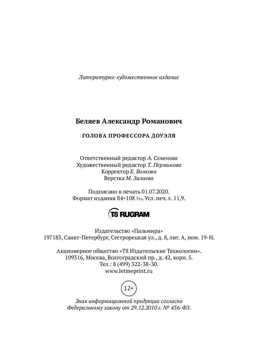 Остросюжетный роман знаменитого советского фантаста Александра Беляева (1884-1942) о хирурге-злодее. Он был опубликован в 192S году и стал одним из самых известных произведений писателя.| Издательство | Т8 RUGRAM |