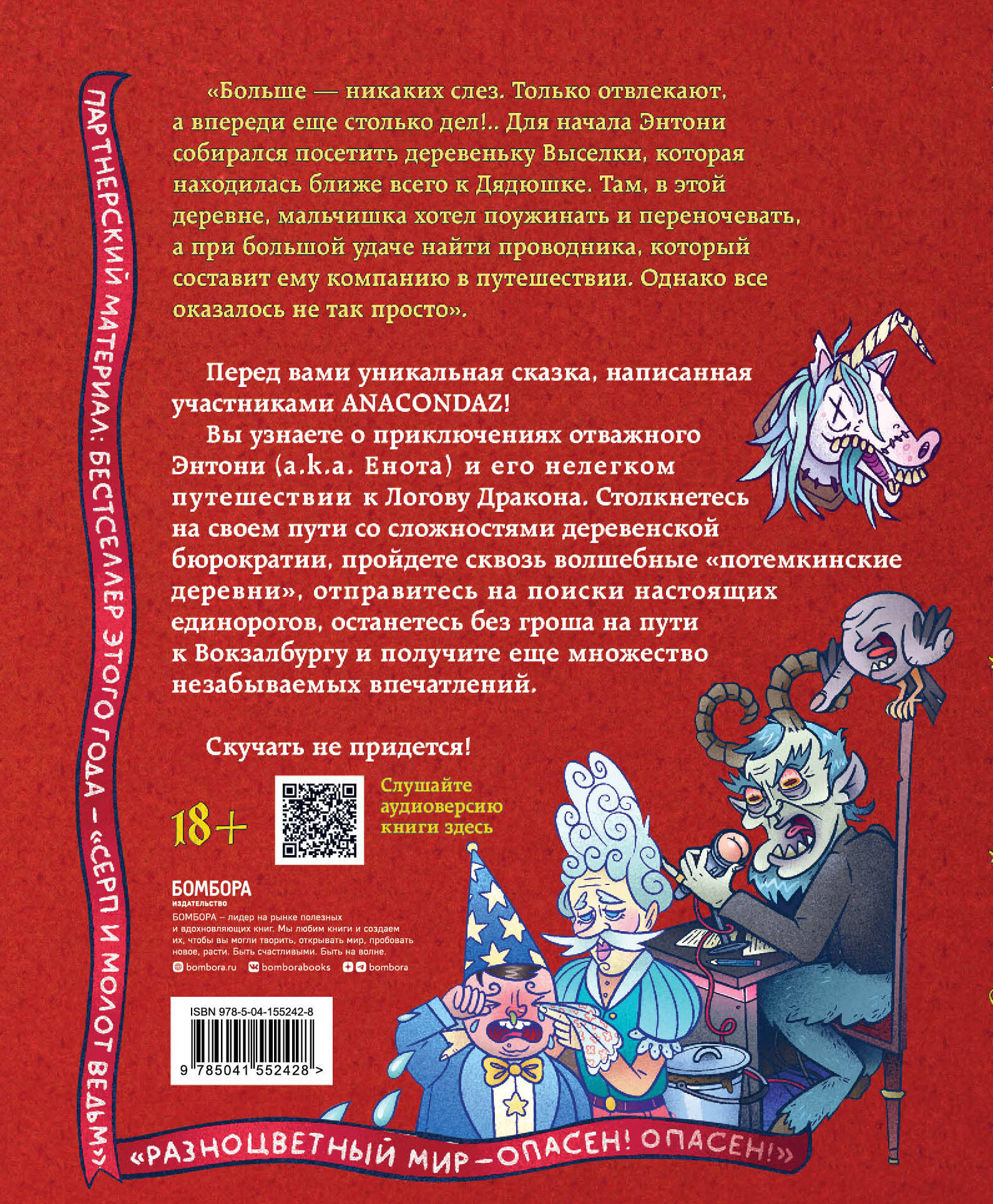 Перед вами уникальная сказка для детей и взрослых, написанная участниками русской музыкальной группы Anacondaz! Вы узнаете про приключения отважного Энтони (a.k.a. Енота) и его нелегком путешествии к Логову Дракона. Можете не переживать, с такими сказками ваши дети не будут скучать, да и вы тоже. Эти истории придутся по душе всем поклонникам группы, а яркие иллюстрации и головоломки, придуманные художниками специально для издания, сделают погружение в творческую вселенную абсолютным и захватывающим. Необходимая вещь в коллекции каждого фаната. Специально к выходу книги группа выпустила альбом Dracondaz, действие песен которого происходит в той же «сказочной вселенной», что и в книге.| Издательство | ООО "Издательство "Эксмо" |
