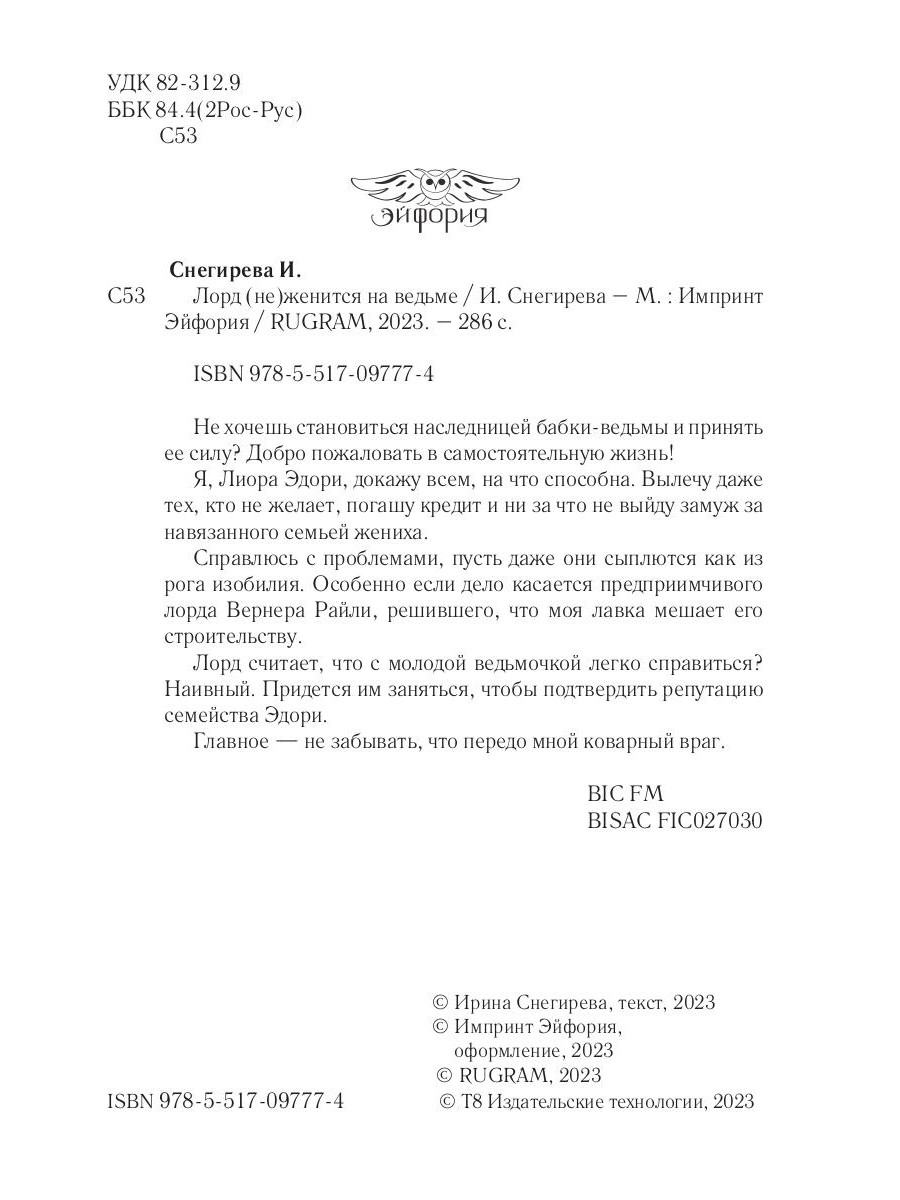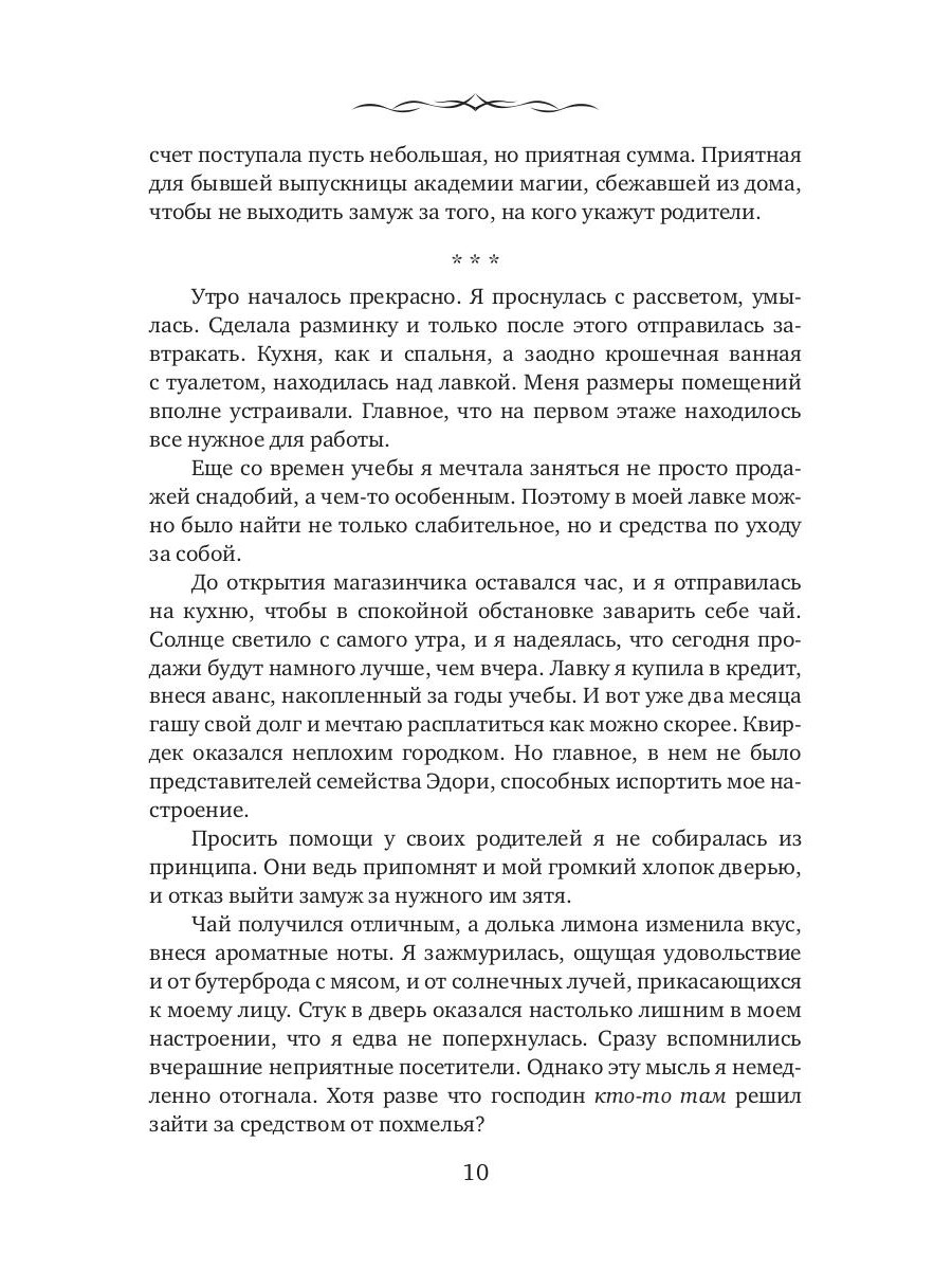 Не хочешь становиться наследницей бабки-ведьмы и принять ее силу? Добро пожаловать в самостоятельную жизнь! Я, Лиора Эдори, докажу всем, на что способна. Вылечу даже тех, кто не желает, погашу кредит и ни за что не выйду замуж за навязанного семьей жениха. Справлюсь с проблемами, пусть даже они сыплются как из рога изобилия. Особенно если дело касается предприимчивого лорда Вернера Райли, решившего, что моя лавка мешает его строительству. Лорд считает, что с молодой ведьмочкой легко справиться? Наивный. Придется им заняться, чтобы подтвердить репутацию семейства Эдори. Главное - не забывать, что передо мной коварный враг.| Издательство | Т8 RUGRAM |