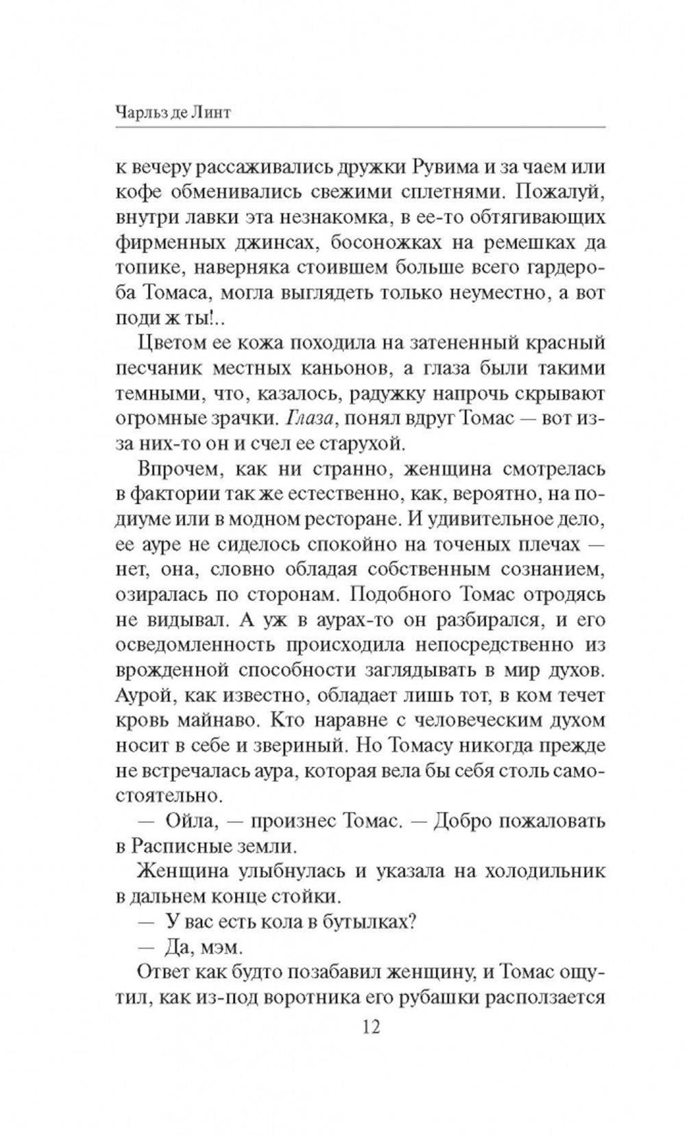 Горы Йерро-Мадерас - удивительное место: именно здесь, в резервации индейцев кикими, наш привычный мир встречается с таинственным миром грез. И потому те, кто оказался в каньоне Расписное Облако, попали туда не случайно. Всем им - и будущему шаману Томасу, мечтающему сбежать из резервации, и бывшей рок-звезде, а ныне отшельнику Джексону Коулу, и злобной девчонке-подростку Сэди, и успешной блогерше Лие Хардин, терзаемой чувством вины из-за смерти подруги - нужно научиться жить в согласии с миром и с собой. Правда, сделать это будет очень сложно... Долгожданный новый роман признанного мифотворца современности Чарльза де Линта - эпическое полотно с тонкой прорисовкой характеров многочисленных героев.| Издательство | Аркадия |