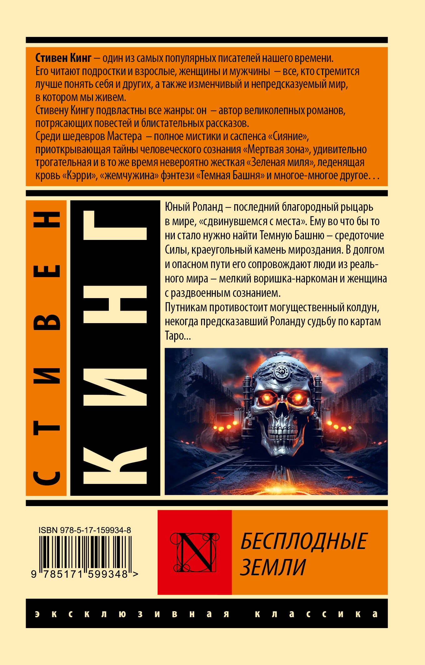Цикл "Темная Башня" - это opus magnum - лучшая работа - Стивена Кинга. История последнего стрелка Роланда Дискейна и его друзей. Произведения, входящие в этот цикл, не раз являлись номинантами премии Брэма Стокера. У "Темной Башни" сотни тысяч фанатов и десятки фан-клубов, ей посвящено множество книг и статей. Юный Роланд - последний благородный рыцарь в мире, "сдвинувшемся с места". Ему во что бы то ни стало нужно найти Темную Башню - средоточие Силы, краеугольный камень мироздания. В долгом и опасном пути его сопровождают люди из реального мира - мелкий воришка-наркоман и женщина с раздвоенным сознанием. Путникам противостоит могущественный колдун, некогда предсказавший Роланду судьбу по картам Таро...| Издательство | Издательство "АСТ" |