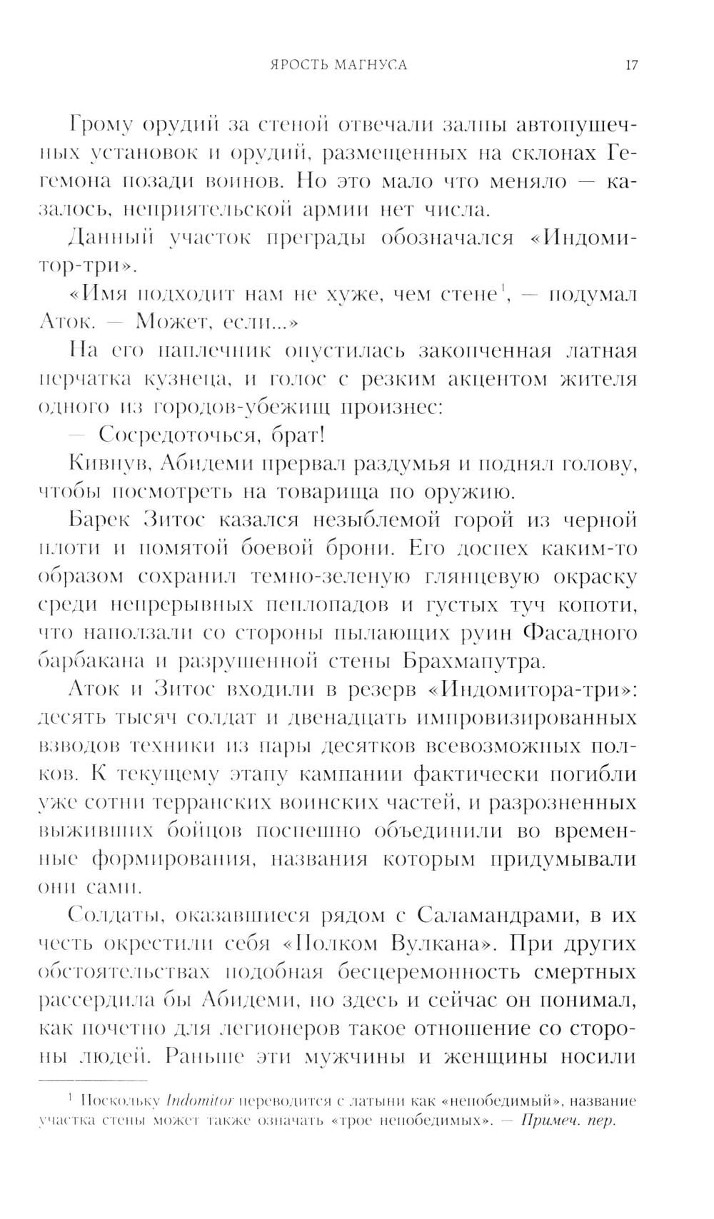 История Магнуса Красного, пожалуй, трагичнее, чем у всех иных сынов Императора, поддавшихся Хаосу. Его наказали за стремление к знаниям, сурово отчитали, осудили и даже раскололи на составляющие элементы, поэтому у Алого Короля много причин жаждать отмщения. Впрочем, не только ради возмездия он примкнул к армиям магистра войны, осаждающим Терру. Магнус ищет недостающую частицу своей сути, один из ее фрагментов, что содержится в самой неприступной крепости на планете - во внутреннем донжоне Императорского дворца. Пока величайшее противоборство многих эпох близится к неистовой кульминации, Алый Король ведет собственную тайную битву. Чтобы вновь стать цельным, ему нужно не только преодолеть самую ожесточенную оборону, но и встретиться с тем, кого он с равной пылкостью любит и ненавидит превыше всех прочих: со своим заблудшим отцом, Повелителем Человечества.| Издательство | Изд. Фантастика Книжный Клуб |