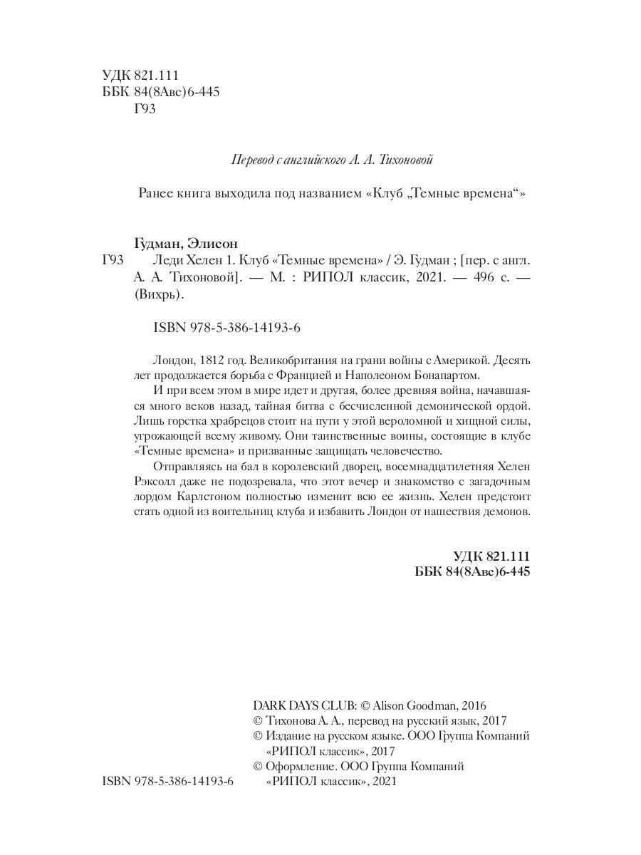 Аннотация: Леди Хелен 1. Клуб "Темные времена"