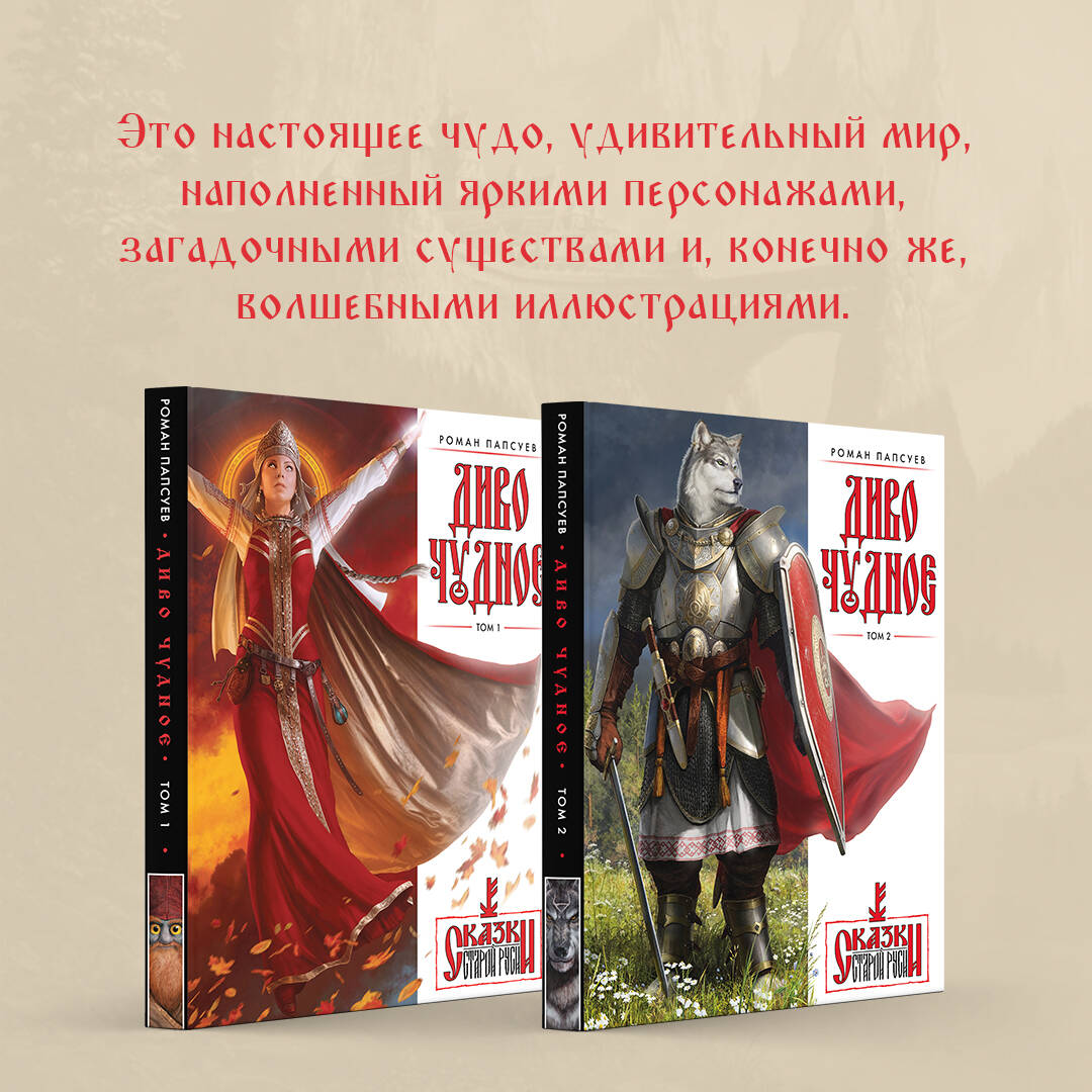 Продолжение серии суперуспешных артбуков «Сказки Старой Руси» и «Диво Чудное. Том 1», суммарный тираж которых приближается к тридцати тысячам. Фэнтези-интерпретации давно знакомых и любимых сказочных персонажей. Потрясающие иллюстрации от широко известного художника, оформлявшего романы Веры Камши, Джорджа Мартина, Вадима Панова и других известных авторов. Детально проработанный авторский мир, про чудеса которого хочется узнавать больше и больше.| Издательство | ООО "Издательство "Эксмо" |