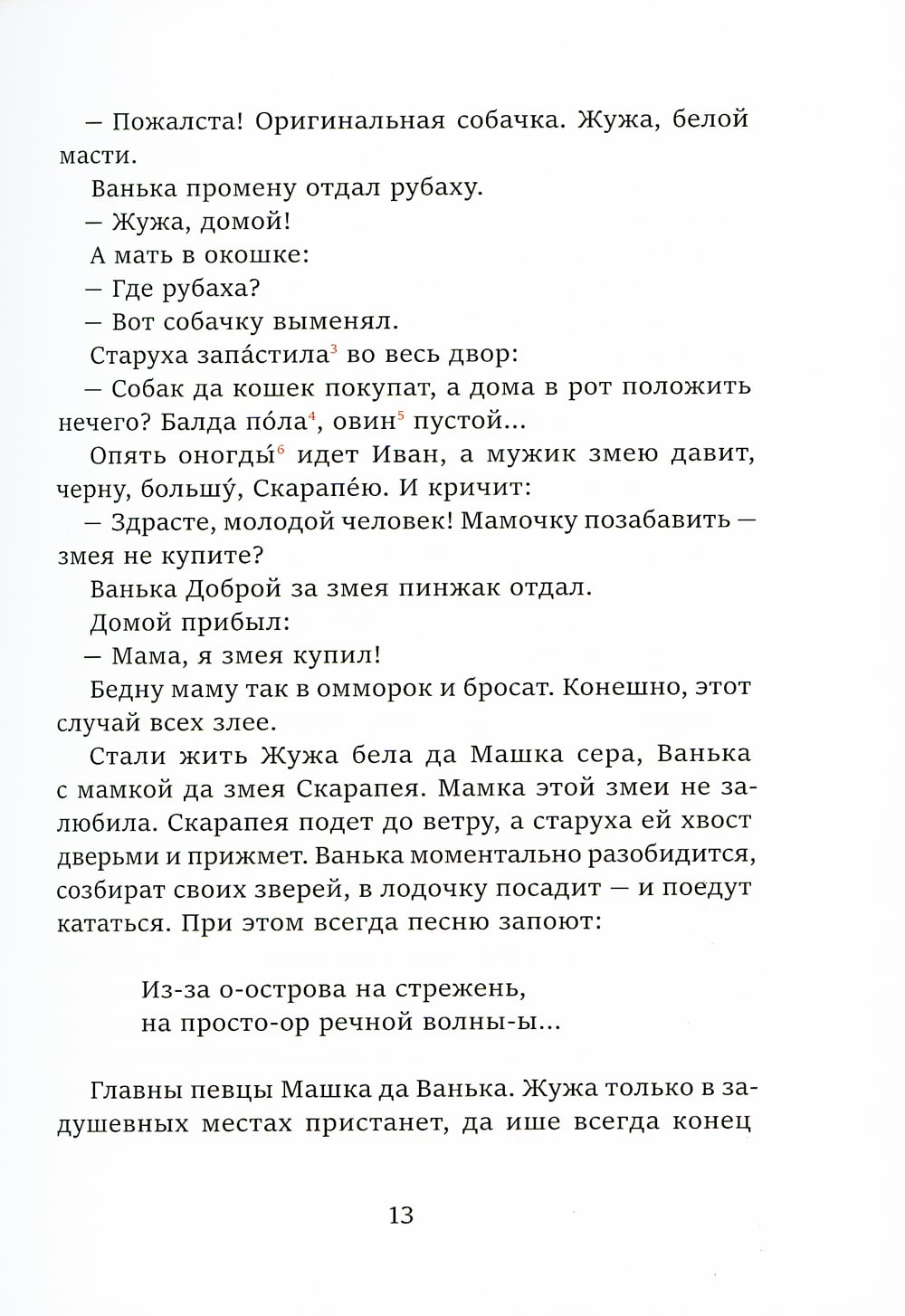 Вы держите в руках уникальное издание, в некотором роде первоиздание. Сказки Бориса Шергина широко известны и всеми любимы - однако иллюстрации к ним Никиты Фаворского (1915-1941), созданные в конце 1930-х, никогда не публиковались. Кроме гравюр Никиты в книгу вошли две гравюры, принадлежащие резцу его отца, выдающегося графика Владимира Фаворского, друга и почитателя таланта Шергина. Тексты сказок заново сверены по первым публикациям и рукописям, из них устранены следы наслоений «сглаживающей» редактуры. Сказка «Волшебное кольцо» приводится в малоизвестной авторской версии «Ванька Доброй». Те, кто видел мультфильм Леонида Носырева, сразу вспомнят, как Ванька, Жужа и Маха поют в лодке «Из-за острова на стрежень» - эпизод именно из этой, позднейшей, обработки сказки.| Издательство | Белая ворона/ALBUS CORVUS |