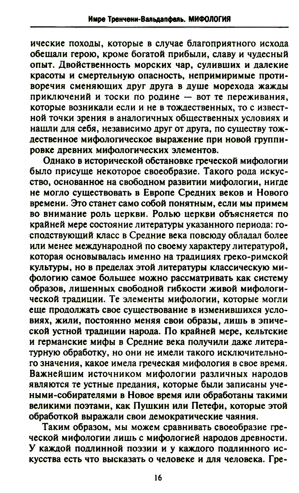 Венгерский специалист по древней мифологии Имре Тренчени-Вальдапфель посвятил свою книгу вопросам возникновения древнейших мифов, впоследствии ставших литературными сюжетами многих художественных произведений. Предложив свою оригинальную интерпретацию античных мифов, он выделил несколько тем: мифы о музах, олимпийские боги и герои, троянская эпика, отражение греческих и римских миров в античной словесности, фольклоре и современном наследии и др.| Издательство | Центрполиграф |
