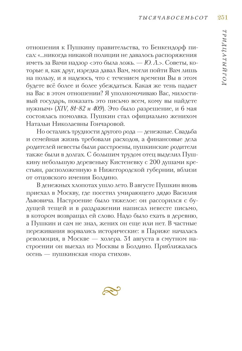 Труды о жизни и творчестве Александра Сергеевича Пушкина занимают значительное место в научном наследии Юрия Михайловича Лотмана. В 1993 году ученому была присуждена премия имени А. С. Пушкина за работы «Роман А. С. Пушкина «Евгений Онегин». Комментарий» и «Александр Сергеевич Пушкин. Биография писателя». В данном биографическом исследовании Лотман анализирует периоды жизни Пушкина: Царскосельский лицей, Петербург, две ссылки - на юг и в Михайловское, жизнь под надзором и стремление устроить семейный очаг, Болдинская осень, последние годы поэта - и проходящее сквозь каждую веху Творчество. Впервые опубликованная в начале 1980-х годов, эта книга интересна и современному читателю, желающему постичь феномен великого поэта. Настоящее издание иллюстрировано фотографиями пушкинских мест и репродукциями произведений искусства из собраний музеев, посвященных жизни и творчеству Пушкина: Всероссийского музея А. С. Пушкина, Государственного музея А. С. Пушкина, музея-заповедника «Михайловское». Помимо этого, в книгу включены автографы и рисунки из рабочих тетрадей Пушкина из собрания Рукописного отдела ИРЛИ РАН. Эта биография Пушкина - настоящий подарок ценителям классической русской литературы, а также поможет школьникам и студентам подготовиться к занятиям и экзаменам.| Издательство | Иллюминатор |