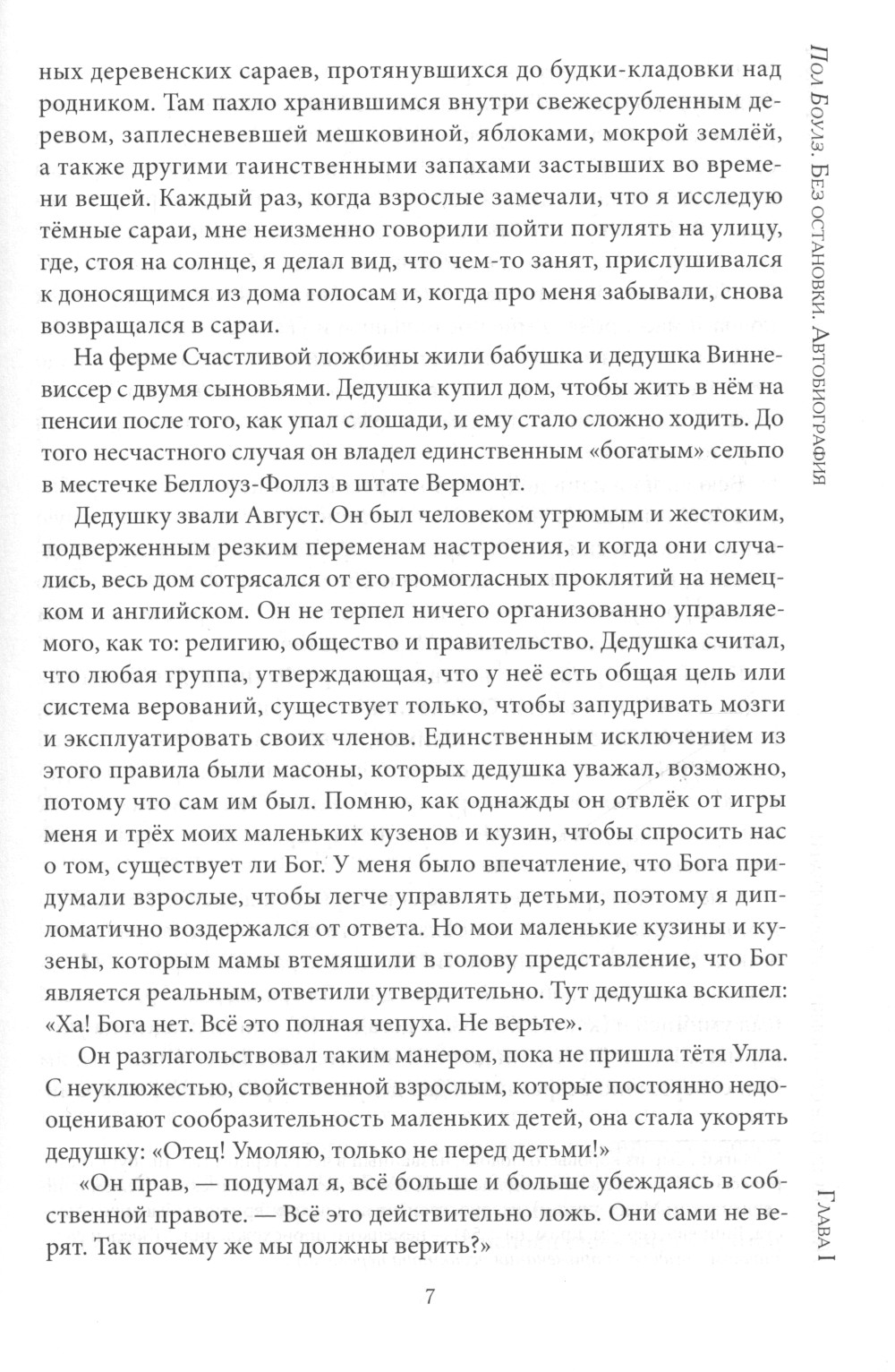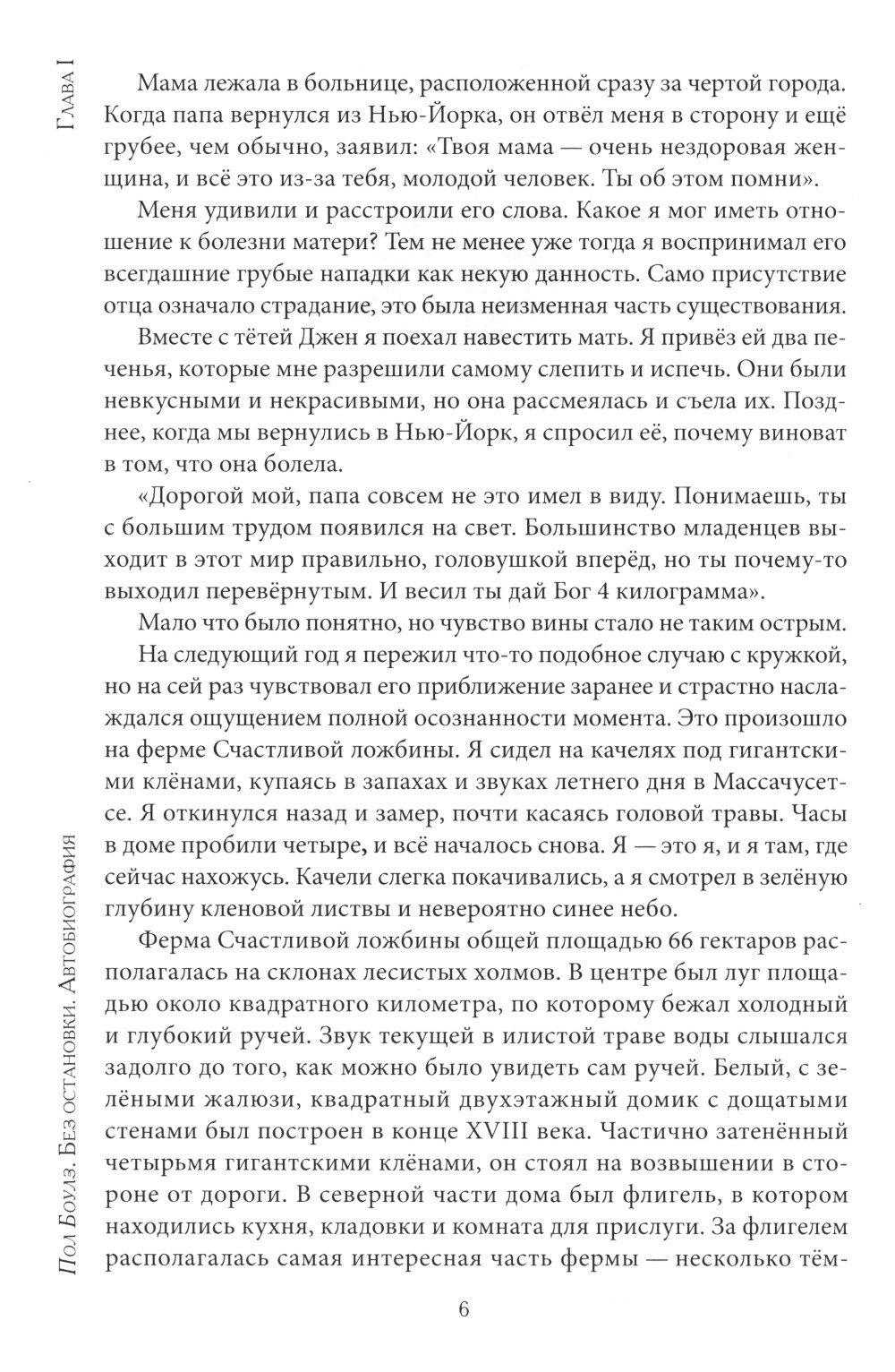 Автобиография Пола Боулза (1910-1999), композитора, путешественника и писателя, хорошо известного в последние десятилетия русскому читателю, охватывает период с его раннего детства до начала 1970-х годов. Внимательный читатель произведений Пола Боулза в этой книге узнает знакомые сюжеты и увидит прототипы героев, которых встречал в его романах и рассказах, ранее выпущенных на русском языке.
