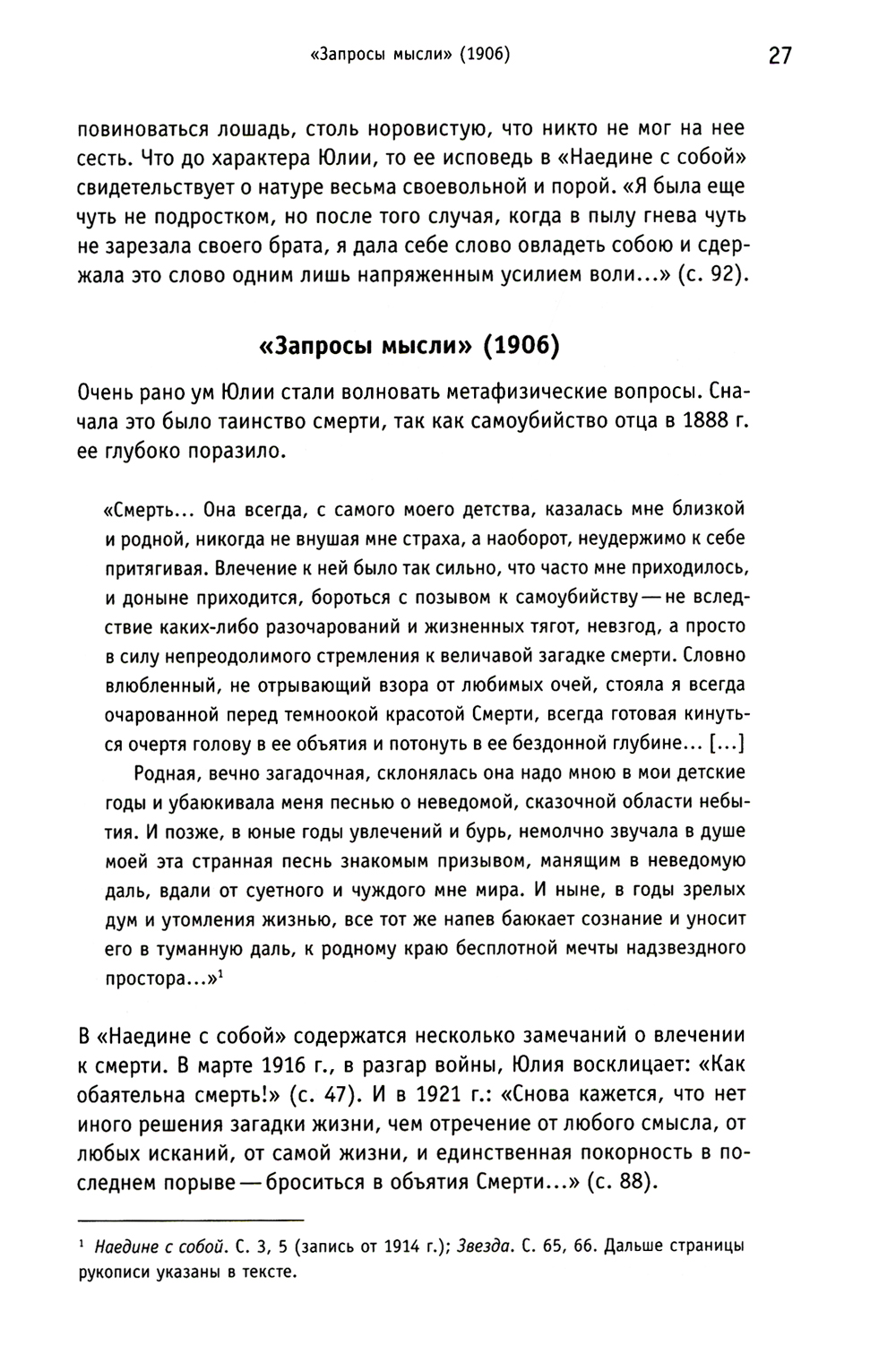 «Самые замечательные ее исследования остались никому неизвестными. Ее труды, в особенности ее первые работы по философии и религиоведению, сегодня труднодоступны и в основном забыты; история ее бурной жизни еще ждет своего биографа». Так немецкий историк М. Хагемайстер завершил заметку, посвященную Юлии Данзас (1879-1942), чья жизнь была, с одной стороны, уникальной, а с другой - неразрывно связана с устремлениями и катастрофами ее времени. И вот такой исследователь нашелся: опираясь как на уже известные, так и на новые документальные источники, Мишель Никё представил развернутую биографию героини века. Специалист по истории гностицизма, фрейлина последней российской императрицы, доброволец на фронте во время Первой мировой войны, католическая монахиня после большевистской революции, феминистка и мистик, отсидевшая восемь лет в ГУЛАГе, автор доминиканского журнала «Россия и христианство», сотрудница кардинала Тиссерана в Риме, Юлия Данзас сама определяет свою многогранную жизнь как «чрезвычайно бурную» и «фантастическую по богатству впечатлений». В книгу также вошли семь ее неизданных текстов и мемуары «Красная каторга». Мишель Никё - славист, почетный профессор Университета Кана-Нормандии, Франция. Дополненная за счет новых архивных документов и переработанная автором версия французского издания: Michel Niqueux. Julia Danzas (1879-1942). De la cour imperiale au bagne rouge. Geneve: Editions des Syrtes, 2020.| Издательство | Новое литературное обозрение |