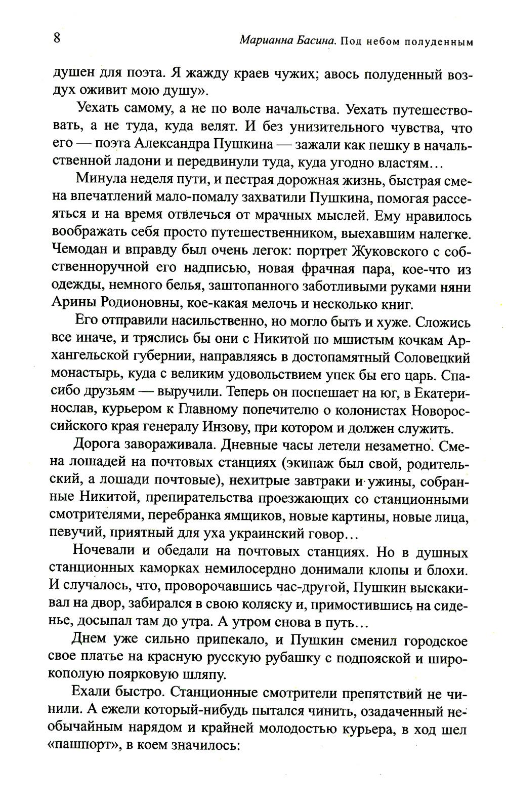 Марианна Яковлевна Басина известна читателям самого разного возраста своими документальными повестями о великих русских писателях - Гоголе, Некрасове, Достоевском, но прежде всего - о Пушкине. Художественно-документальные повести «Под небом полуденным» и «Под сенью дедовских лесов», вошедшие в этот том, охватывают шесть лет из жизни А. С. Пушкина, которые он провел в ссылках (с 1820 по 1826 год). Это были и тяжелые, и необычайно плодотворные годы: жизнь в Кишиневе под дружественным надзором наместника Бессарабии генерала И. Н. Инзова, дружба с генералом-вольнодумцем М. Ф. Орловым, знакомство с южными декабристами, путешествие с семьей знаменитого генерала Н. Н. Раевского в Крым, на Кавказ и в Грузию, несколько дуэлей, к счастью окончившихся бескровно. Затем перевод в Одессу, влюбленность в красавицу графиню Е. К. Воронцову и тяжелый конфликт с ее мужем, наместником Новороссии графом М. С. Воронцовым... Яркая, пестрая, увлекательная картина... И главное - творчество: южные поэмы, первые главы «Евгения Онегина», работа над «Цыганами» и многое, много другое. И внезапный драматический финал - донос и новая ссылка в глухое псковское имение Михайловское. Ужасаясь мрачной перспективе - прозябанию в деревне, Пушкин не мог предположить, что в трагические 1830-е годы будет вспоминать это двухлетие как счастливое время. Пушкин и Михайловское - уникальный сюжет. Можно без преувеличения сказать, что в мировой культуре нет другого такого явления. Здесь окончательно сформировался и созрел гений Пушкина. Здесь он стал великим поэтом и обрел общероссийскую славу.| Издательство | Лениздат |