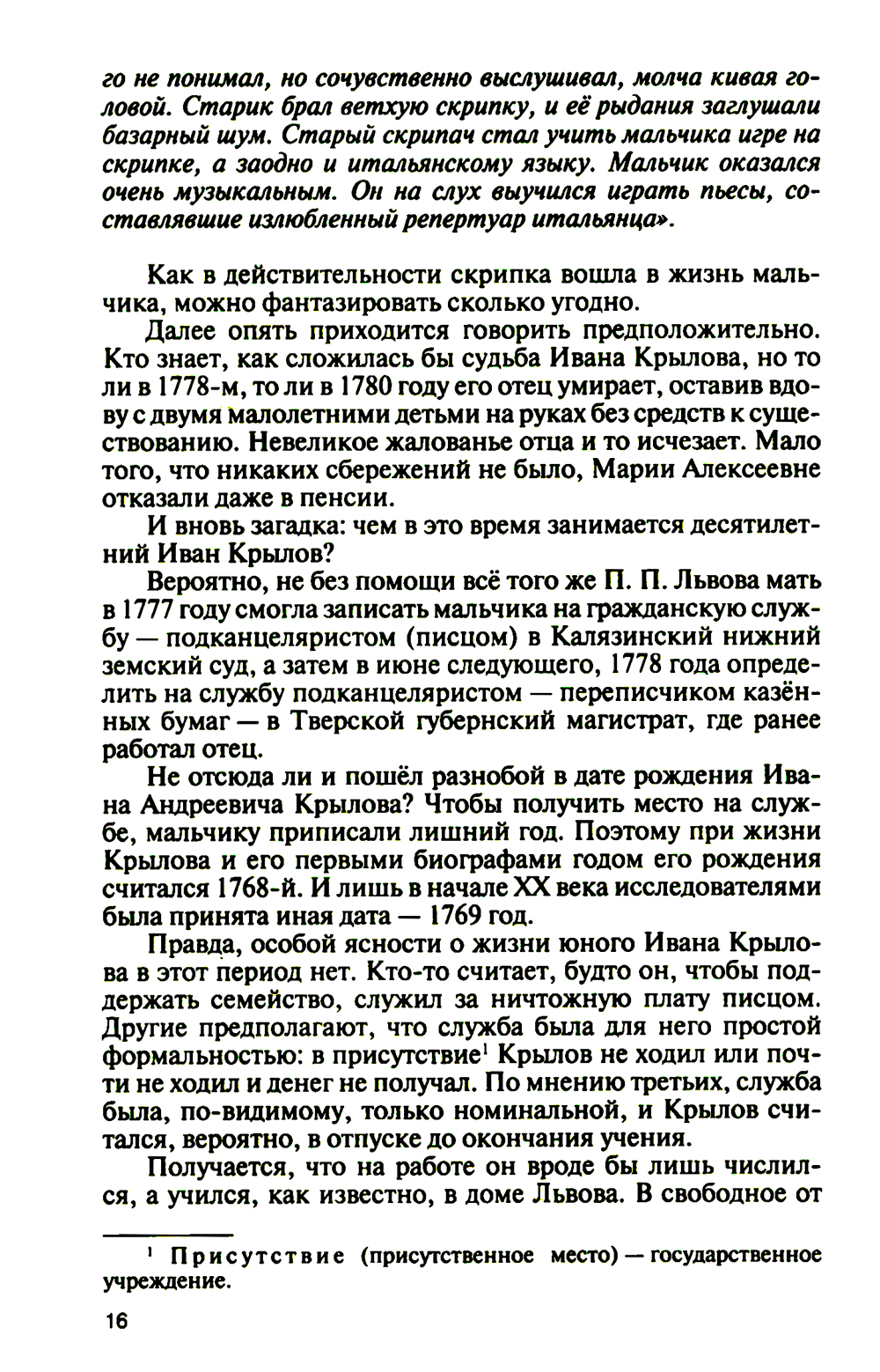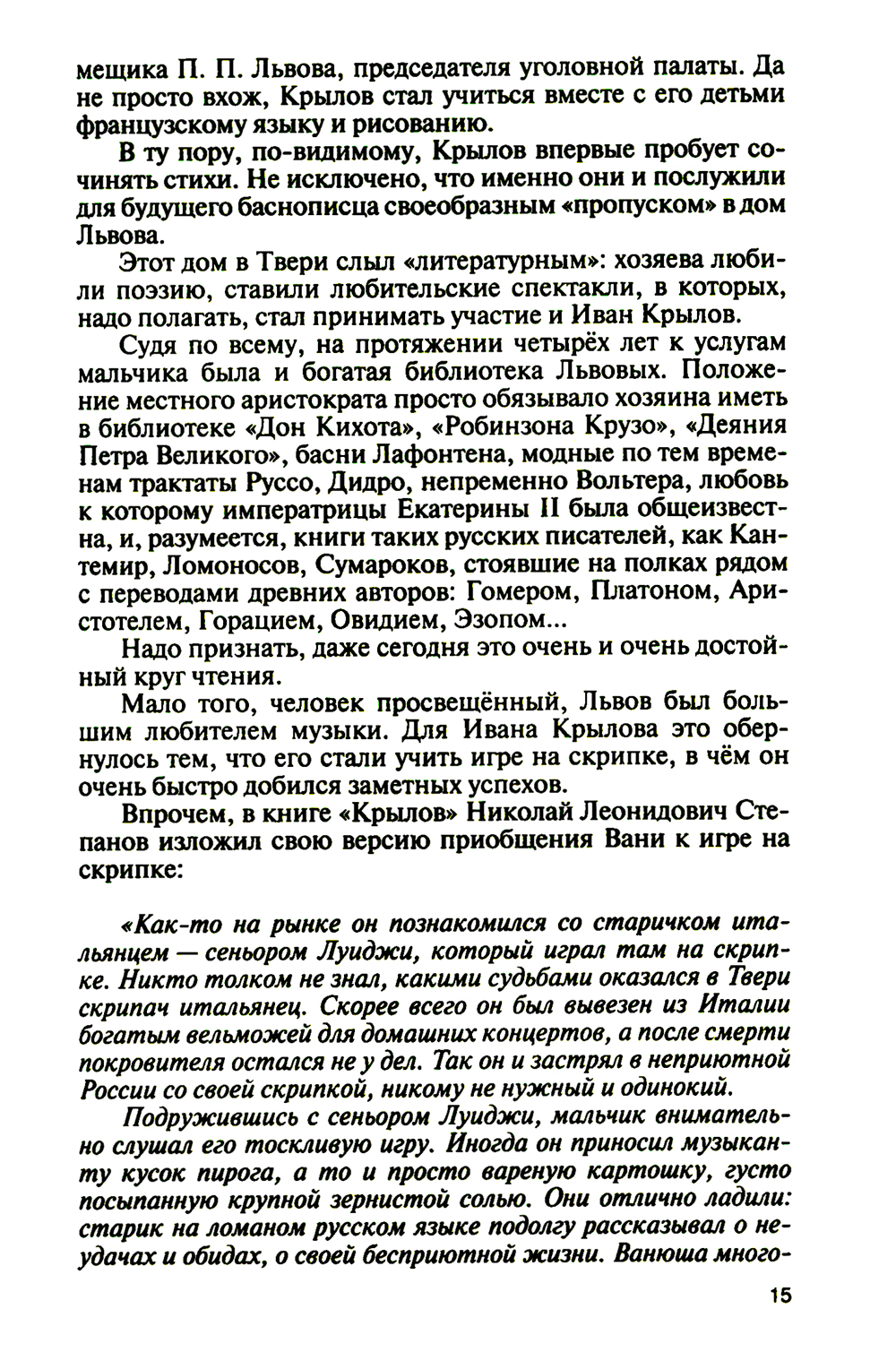 Ещё мальчиком он начал рифмовать строки. В историю вошёл как автор басен. В его творческом наследии произведения многих жанров, но великий баснописец не оставил ни одной автобиофафической строки, хотя прожил долгую жизнь. Зато растиражирована причина: он не любил говорить о себе. Его имя, отчество, фамилия были немудрёные, однако все предпочитали и предпочитают звать его просто «дедушкой Крыловым». Нет другого русского писателя, о котором ходит столь много анекдотов-побасёнок. Чему обычно предлагается объяснение: мол, слыл Иван Андреевич большим чудаком. Жизнеописание великого уникума, большого чудака, замечательного баснописца, чья жизнь была полна загадок.| Издательство | Молодая гвардия |