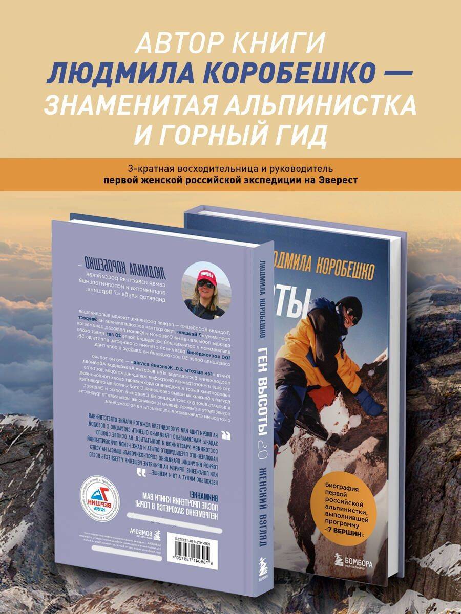 Людмила Коробешко - первая россиянка, трижды выполнившая программу «7 Вершин», трехкратная восходительница на Эверест, дважды побывавшая на Северном и Южном полюсах, занимается альпинизмом и организацией экспедиций более 20 лет, имеет около 100 восхождений различной степени сложности, вплоть до 5Б, совершила более 50 восхождений на Эльбрус в роли гида. Книга «Ген высоты. 2.0. Женский взгляд» - это не только продолжение бестселлера «Ген Высоты» Александра Абрамова, это еще и многогранная биография женщины, которая достигла невероятных высот и ежедневно вдохновляет своих поклонников, друзей и близких на новые свершения. С этой книгой вы отправитесь в захватывающую экспедицию на Северный полюс и Эверест, поучаствуете в съемках фильма и, конечно же, испытаете те трудности, с которыми сталкиваются альпинисты на восхождении.| Издательство | ООО "Издательство "Эксмо" |