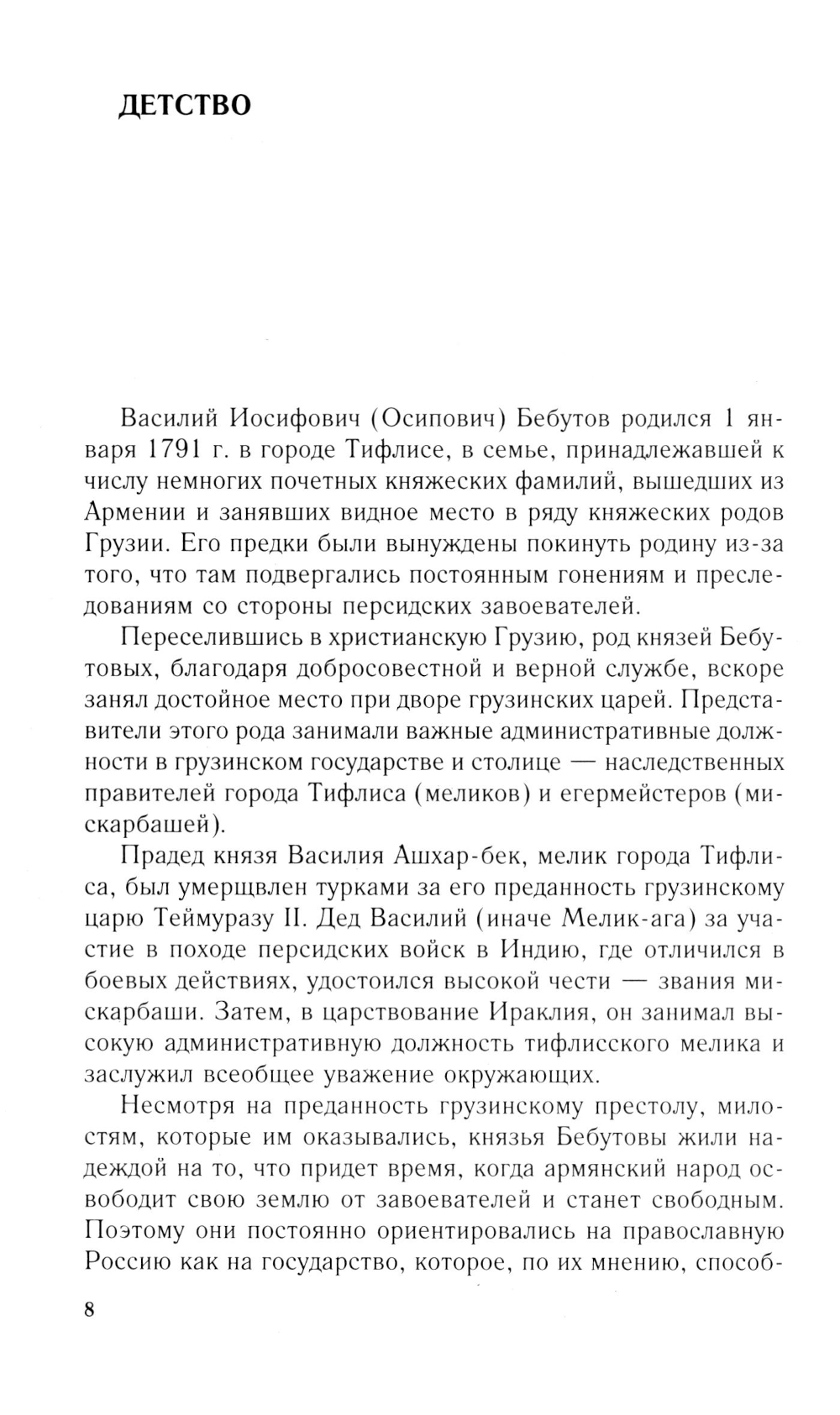 Книга видного российского кавказоведа доктора исторических наук, профессора Н.Д. Судавцова посвящена одному из выдающихся военных и государственных деятелей России на Кавказе в ХХ веке, представителю древнего армянского княжеского рода Василию Иосифовичу (Осиповичу) Бебутову, генералу от инфантерии, члену Государственного совета России. Он был одним из немногих кавказских генералов, который родился на Кавказе, в Тифлисе, сделал здесь свою блестящую военную, государственную карьеру и остался верен своему краю до конца дней своих.| Издательство | Центрполиграф |