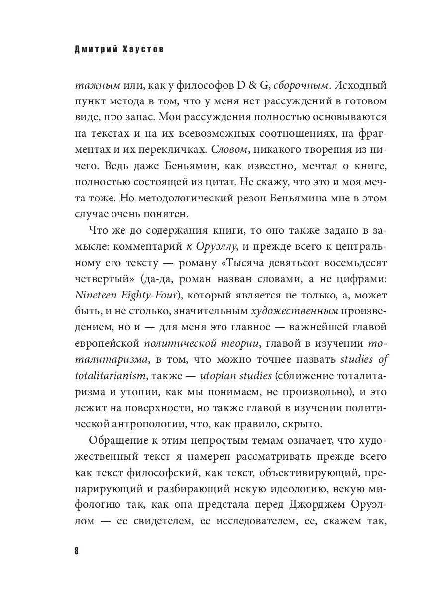 Великий британский писатель Джордж Оруэлл одним из первых распознал и исследовал феномены тоталитаризма и идеологии, бурно расцветшие в трагическом XX веке. Внимательное и вдумчивое чтение произведений Джорджа Оруэлла - необходимая, насущная задача для всех, кто хочет научиться распознавать опасности, которые таит современное общество и государственные режимы. Опыт такого внимательного чтения предлагает разделить с читателем историк философии и литературы Дмитрий Хаустов. Продолжая традицию философского комментария, вслед за Беньямином, Агамбеном и Бибихиным, автор вводит нас в проблематику политического мышления Джорджа Оруэлла и рассматривает его творчество - и прежде всего роман «Тысяча девятьсот восемьдесят четвертый» - как новое слово в политической антропологии.| Издательство | Рипол Классик |
