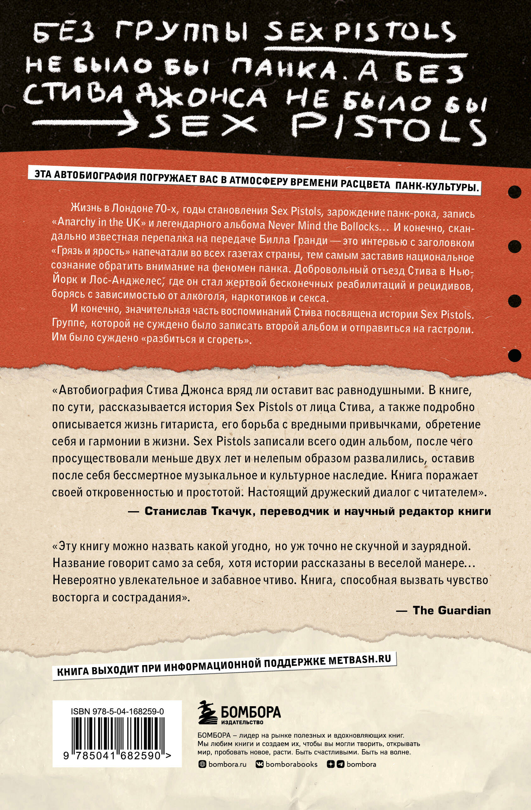 «Одинокий мальчишка» - это необычная история кудесника гитары, который вместе с Sex Pistols изменил облик культуры 21-го века, подтолкнув общество к социальной революции. Эта автобиография даст читателю возможность погрузиться в атмосферу того времени и проникнуться симпатией к его героям. В книге Стив с грустью рассказывает о том, что детство прошло без родного отца и приходилось терпеть домашнее насилие со стороны отчима. Увлекшись еще в юном возрасте музыкой и модой, Стив, по сути, уберег себя от вечной жизни за решеткой. Жизнь в Лондоне семидесятых, годы становления Sex Pistols, зарождение панк-рока, запись «Anarchy in the UK» и легендарного альбома Never Mind the Bollocks… И, конечно, скандально известная перепалка на передаче Билла Гранди - это интервью с заголовком «Грязь и ярость» напечатали во всех газетах страны, тем самым заставив национальное сознание обратить внимание на феномен панка. Добровольный отъезд Стива в Нью-Йорк и Лос-Анджелес, где он, став жертвой бесконечных реабилитаций и рецидивов, боролся с зависимостью от алкоголя, героина и секса. Значительная часть книги посвящена истории Sex Pistols. Этой группе, как сказал Стив Джонс, было не суждено записать второй альбом и отправиться на гастроли. Им было суждено «разбиться и сгореть». «Автобиография Стива Джонса вряд ли оставит вас равнодушными. В книге, по сути, рассказывается история Sex Pistols от лица Стива, но и подробно описывается жизнь гитариста, его борьба с вредными привычками, обретение себя и гармонии в жизни. Sex Pistols записали всего один альбом, после чего просуществовали меньше двух лет и нелепым образом развалились, оставив после себя бессмертное музыкальное и культурное наследие. Книга поражает своей откровенностью и простотой. Настоящий дружеский диалог с читателем». - Станислав Ткачук, переводчик и научный редактор книги «Автобиографию можно назвать какой угодно, но уж точно не скучной и заурядной. Название книги говорит само за себя, хотя истории рассказаны в веселой манере… Невероятно увлекательное и забавное чтиво. Книга, способная вызвать чувство восторга и сострадания». - The Guardian| Издательство | ООО "Издательство "Эксмо" |