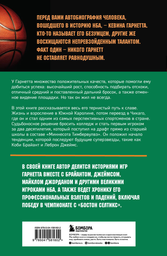 Перед вами биография человека, вошедшего историю НБА - Кевина Гарнетта. Кто-то называет его безумцем, другие же восхищаются непревзойдённым талантом. Факт один - никого Гарнетт не оставляет равнодушным. У Гарнетта множество положительных качеств, которые помогли ему добиться успеха: высочайший рост, способность подбирать отскоки, отличный средний и поставленный дальний бросок, а также отменное видение площадки. Но так он жил не всегда. В этой книге рассказывается весь его тернистый путь к славе. Жизнь и взросление в Южной Каролине, потом переезд в Чикаго, где он и стал одним из самых перспективных спортсменов в стране. Судьбоносное решение бросить колледж и стать первым игроком за два десятилетия, который поступил на драфт прямо из старшей школы в составе «Миннесота Тимбервулвз». Он положил начало тенденции, которой последуют будущие суперзвезды, такие как Коби Брайант и Леброн Джеймс. В своей книге автор делится историями игр Гарнетта вместе с Брайантом, Джеймсом, Майклом Джорданом и другими великими игроками НБА, а также ведет хронику его профессиональных взлетов и падений, включая победу в чемпионате с «Бостон Селтикс».| Издательство | ООО "Издательство "Эксмо" |