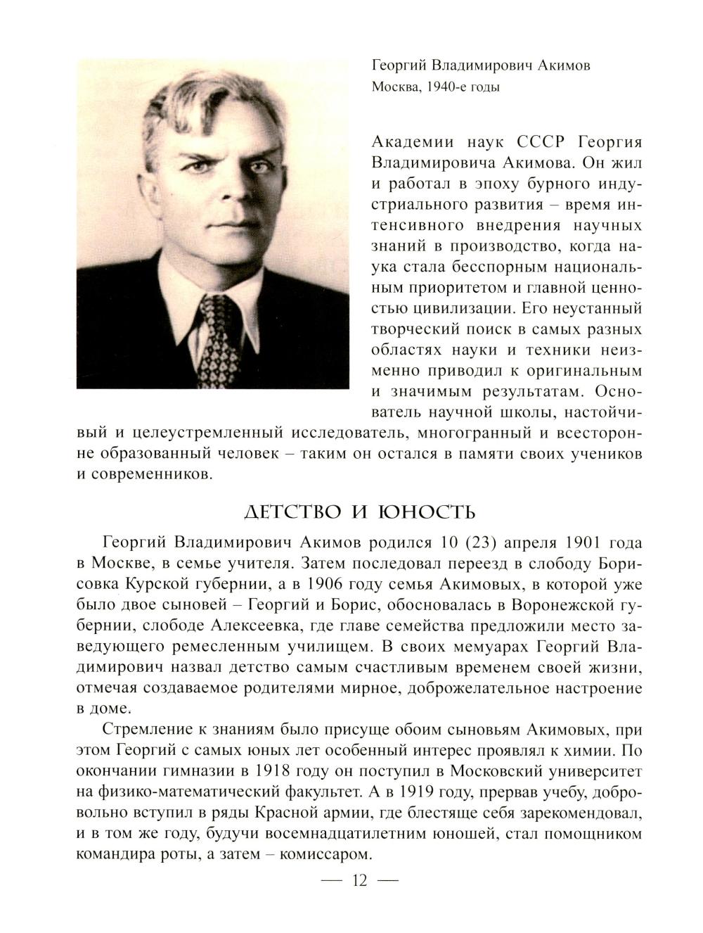 Издательский проект посвящен одаренному и преданному своему делу исследователю Георгию Владимировичу Акимову (1901-1953) - выдающемуся ученому и организатору отечественной науки и техники XX века, члену-корреспонденту Академии наук СССР, лауреату трех Сталинских премий, блестящему представителю плеяды талантливых ученых-новаторов нашей страны, фундаментальные исследования и открытия которых до настоящего времени актуальны и составляют несомненное национальное достояние в области внедрения научных знаний в производство. Воспоминания (автобиографические записки) Г. В. Акимова публикуются впервые. Издание дополнено воспоминаниями его потомков, фотографиями из семейного альбома, а также включает статьи об авторе, архивные документы, биобиблиографию.| Издательство | Наука |