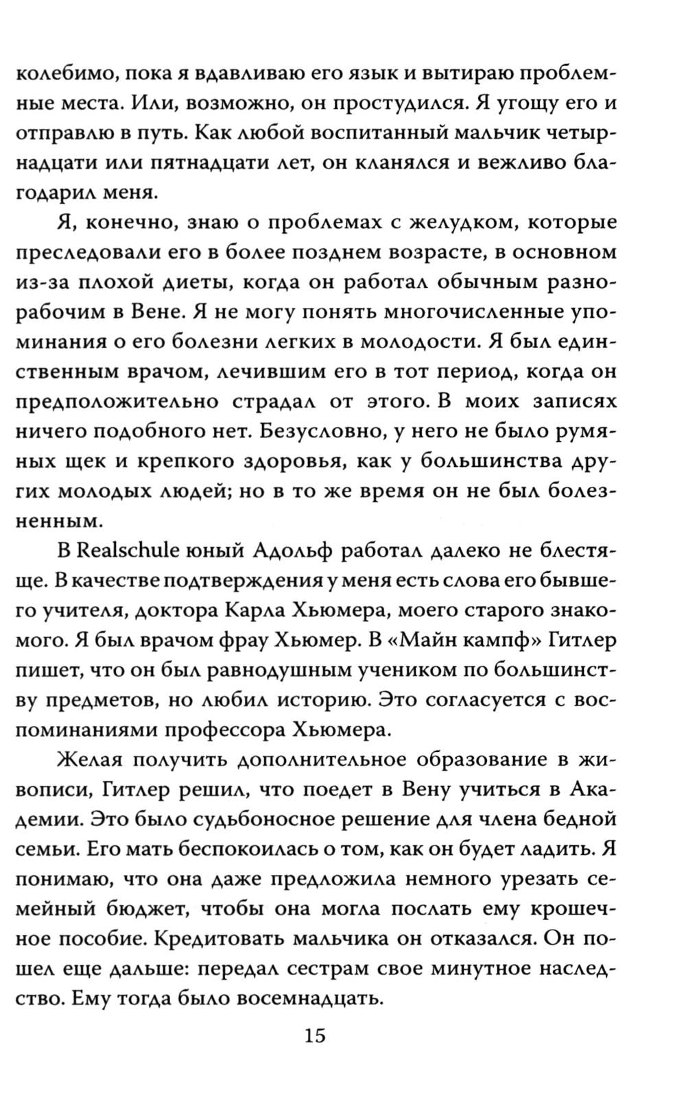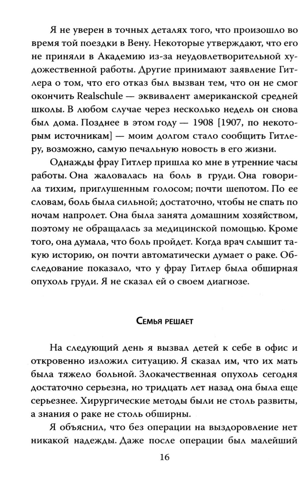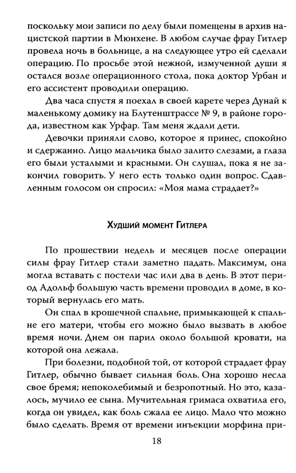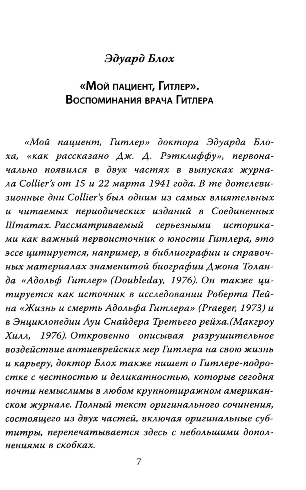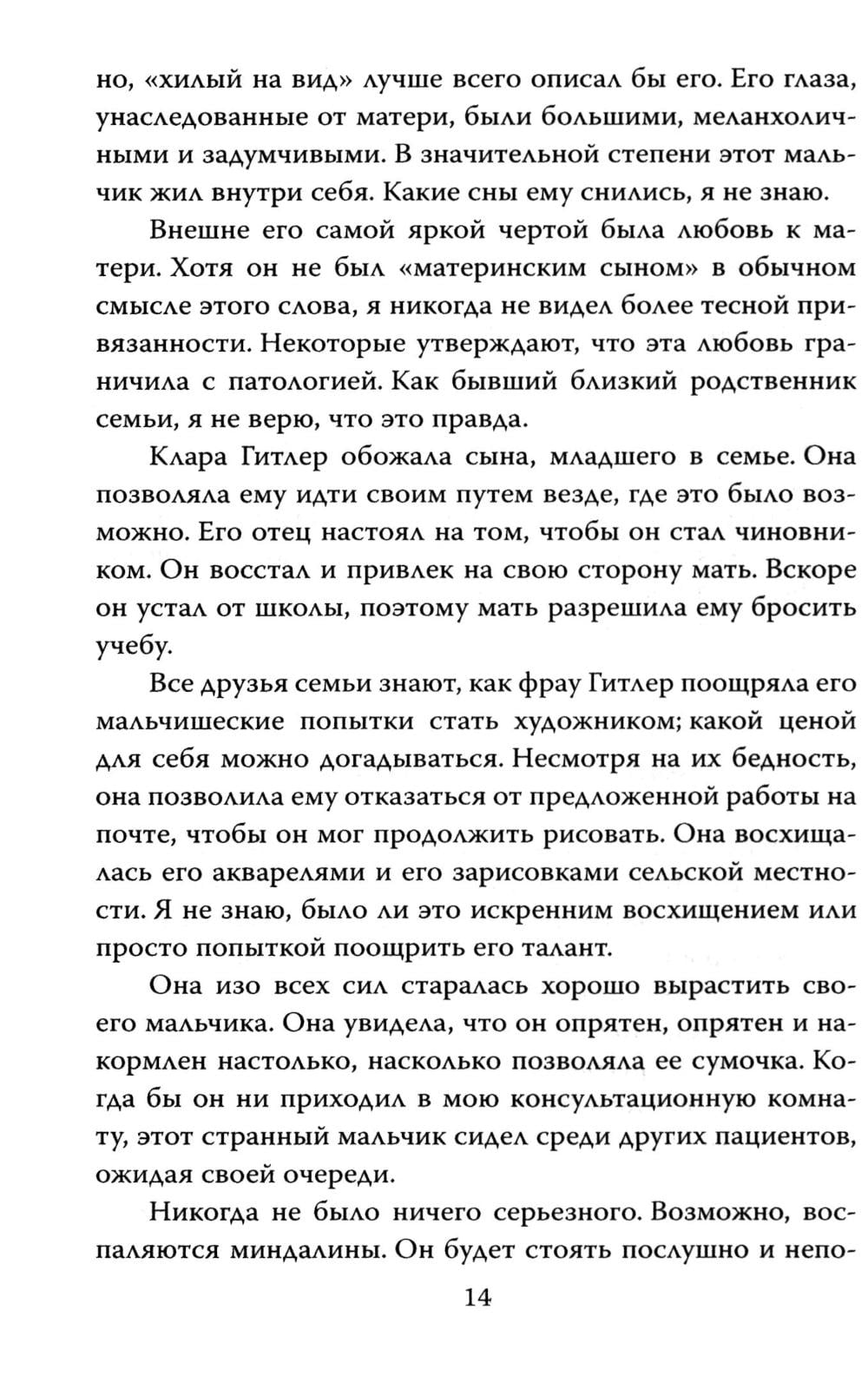 ...Нельзя ли добавить, что я могу каждому сердечно рекомендовать гестапо? (З. Фрейд); Эту фразу отец психоанализа небрежно бросил, навсегда покидая Австрию. Буквально за несколько дней до того, как отправиться в концлагерь, знаменитый врач все же смог добиться разрешения на выезд. Вот только от него потребовали подписать бумагу, в которой он признавал, что в гестапо с ним обращались прекрасно. За несколько десятилетий до этого семейный врач четы Гитлер Э. Блох обращался за консультацией к З. Фрейду. Гуру психоанализа был весьма обеспокоен состоянием ребенка по имени Адольф и настаивал на помещении его в психиатрическую клинику. К сожалению, Блох не внял советам мастера, а в 1940-х, равно как и З. Фрейд, вынужден был бежать из Европы. Кем был фюрер? Что творилось в душе самого жестокого человека ХХ века? Об этом рассказывает его личный лечащий врач Э. Блох, комментарии к заключению дает З. Фрейд, а полный психоаналитический портрет дает классик неопсихоаналиса Э. Фромм.| Издательство | Родина |
