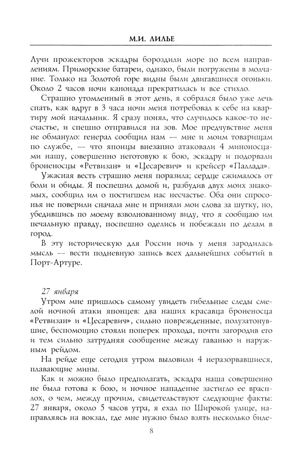 Книга представляет собой дневник потомственного военного инженера М.И.Лилье, активного участника героической обороны Порт-Артура от первого дня до последнего. Читатель найдет в ней как общие оценки Русско-японской войны и действий генералитета, так и взгляд боевого офицера «из окопов». Таких книг у нас еще не было, и она имеет несомненное научное и публицистическое значение.| Издательство | Центрполиграф |