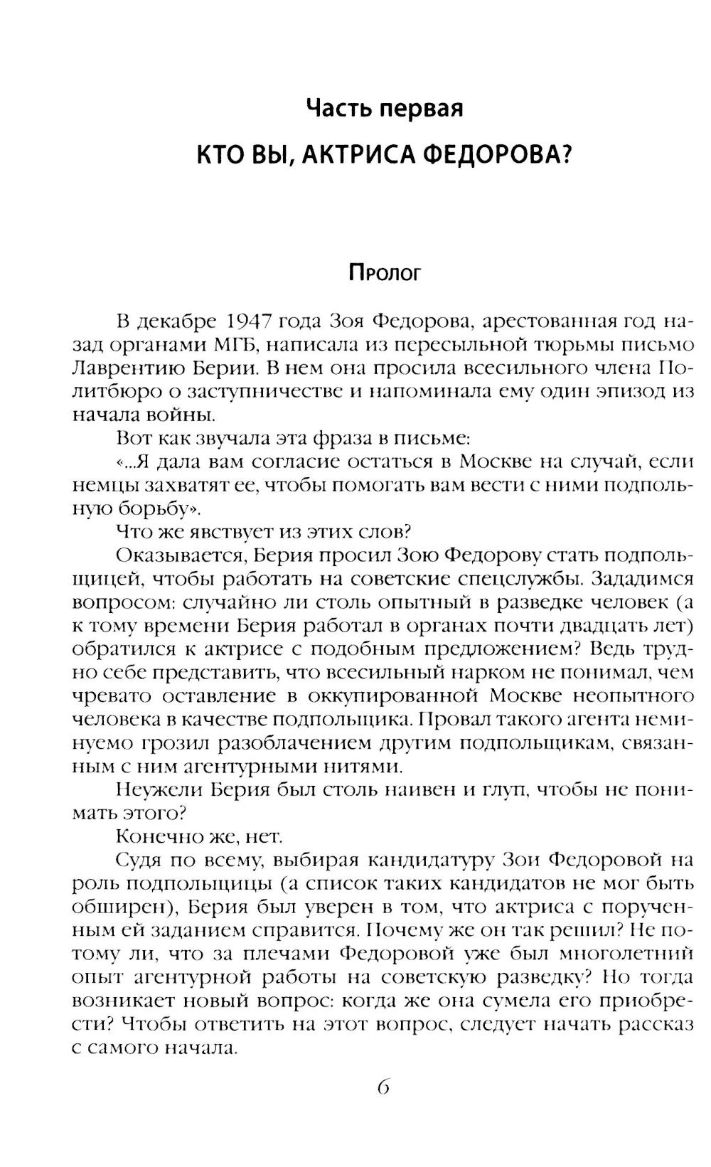 Судьба звезды советского кинематографа Зои Федоровой неординарна и противоречива, а её убийство до сих пор не раскрыто. Арест как пособницы иностранному шпиону, положение дочери «врага народа», попытка самоубийства в лефортовском изоляторе, обвинение в шпионаже в пользу иностранных государств, долгие годы заключения в знаменитой «Владимирке»... - и блестящая творческая биография, правительственные награды и премии. Как это возможно?! Расследование, проведенное Федором Раззаковым, заставляет совершенно иначе взглянуть на биографию актрисы и на причины ее трагической гибели. Автор задается вопросами: случайно ли убийца, не оставивший на месте преступления почти никаких следов, «забыл» забрать с собой гильзу от немецкого пистолета «Зауэр»? Не было ли это намеком на «немецкую линию», по которой Федорова долгие годы работала на советские спецслужбы, и почему эта улика не помогла следствию выйти на преступников? Или всё же помогла, но привлечь их к ответственности было невозможно?.. Книга Федора Раззакова - это настоящий документальный детектив с неожиданными поворотами и сенсационными подробностями тайной жизни людей, которых знает вся страна.