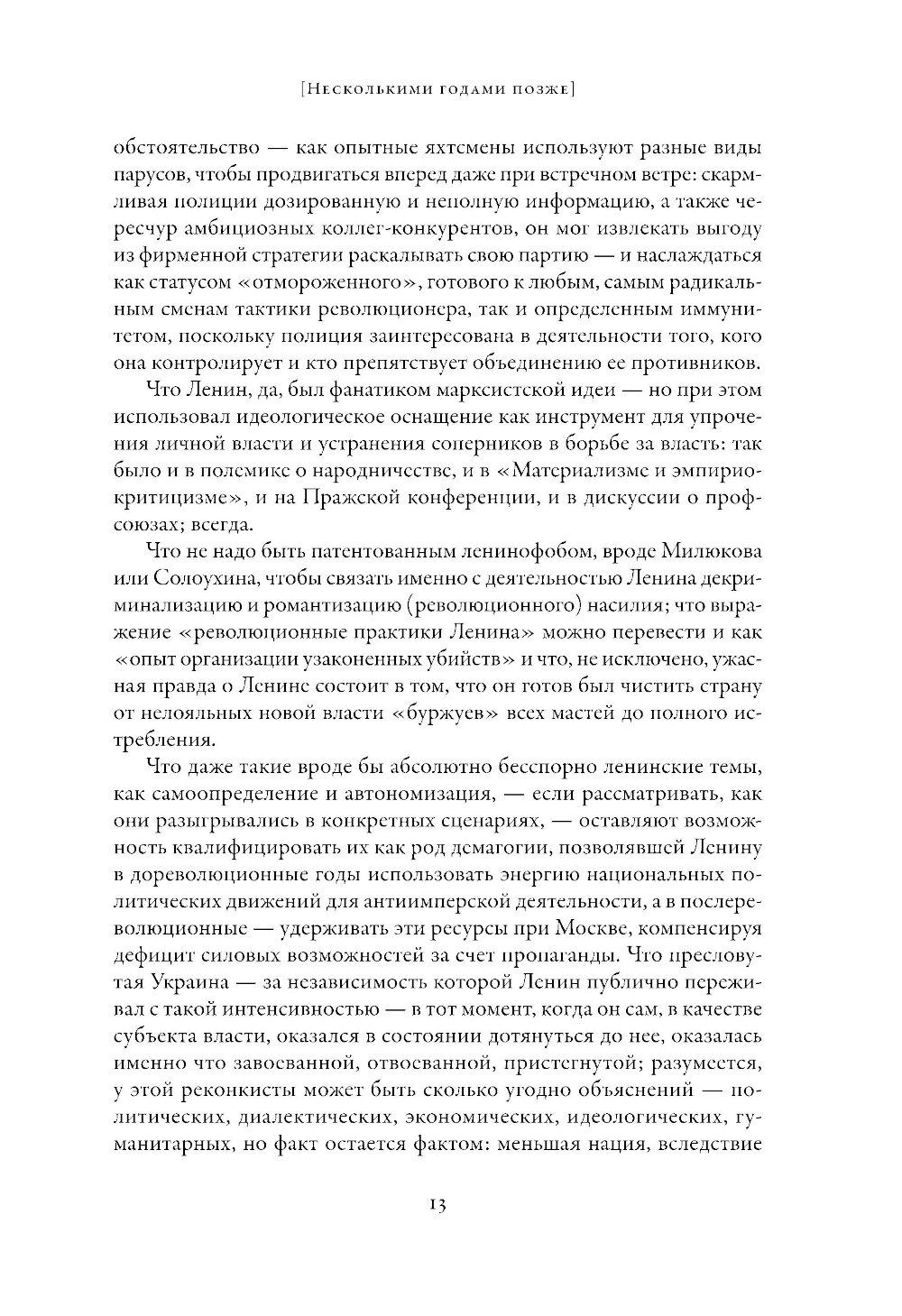 Полная биография В. И. Ленина (1870-1924) представляет собой ревизию ленинских текстов, поступков, партнерств, конфликтов - и не в последнюю очередь «ленинских мест». Автор методично следует за философом-изгоем, сумевшим изменить мир и оказаться на вершине социальной иерархии: от Шушенского до Капри, от «Что делать?» до «Государства и революции», от подполья до Кремля. Читатель, узнавший, как распорядился своей жизнью тот, кто еще сто лет назад казался «живее всех живых», а в современной контрреволюционной России стал мертвее всех мертвых, увидит, что «Ленин» - больше, чем сумма исторических событий: пространство, инструмент и среда для инакомыслия; неисчерпаемый источник образов, прецедентов, альтернатив, утопических идей и прагматичных практик; код к расшифровке сегодняшней действительности - и страховка от увязания в дурной бесконечности.| Издательство | Альпина нон-фикшн |