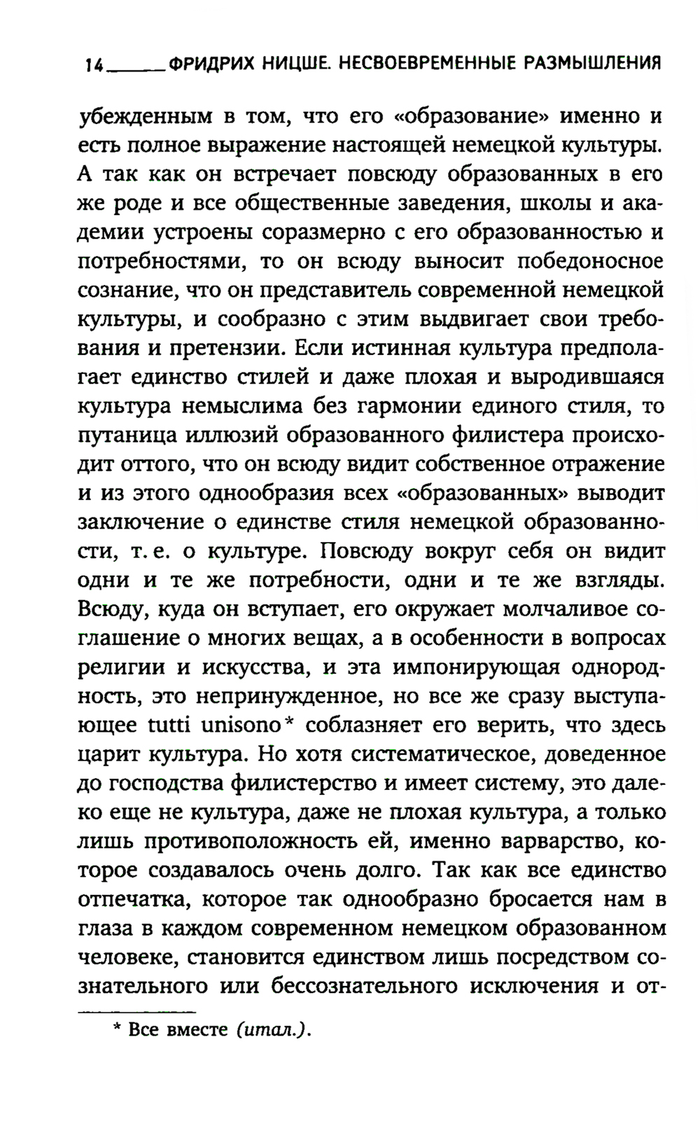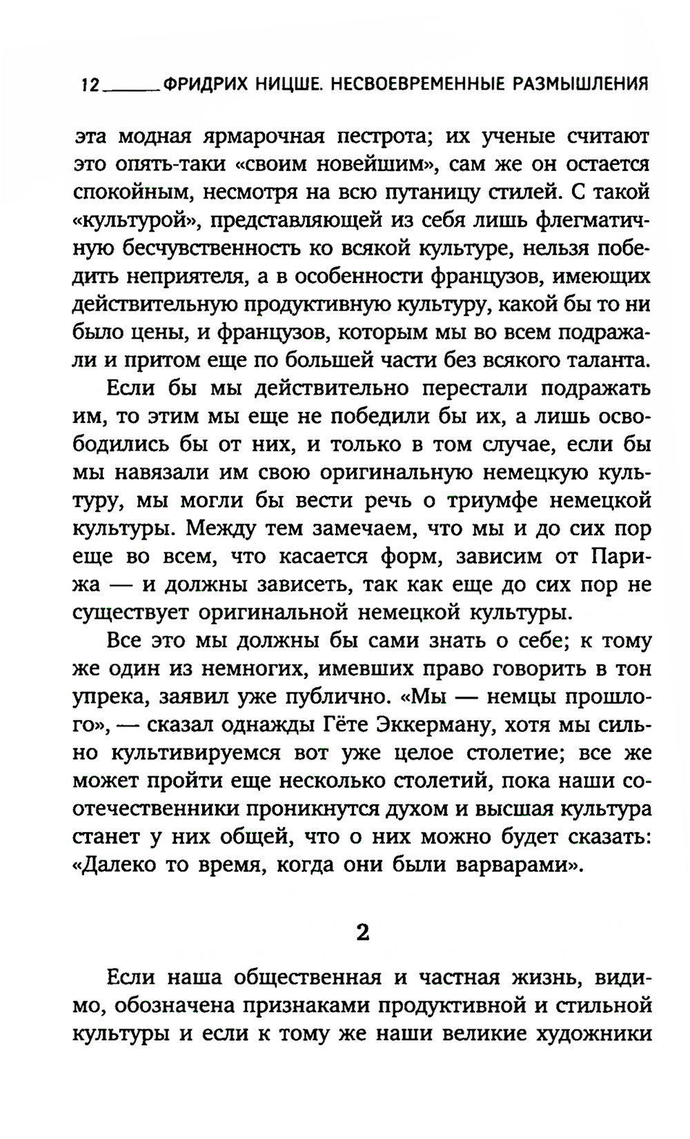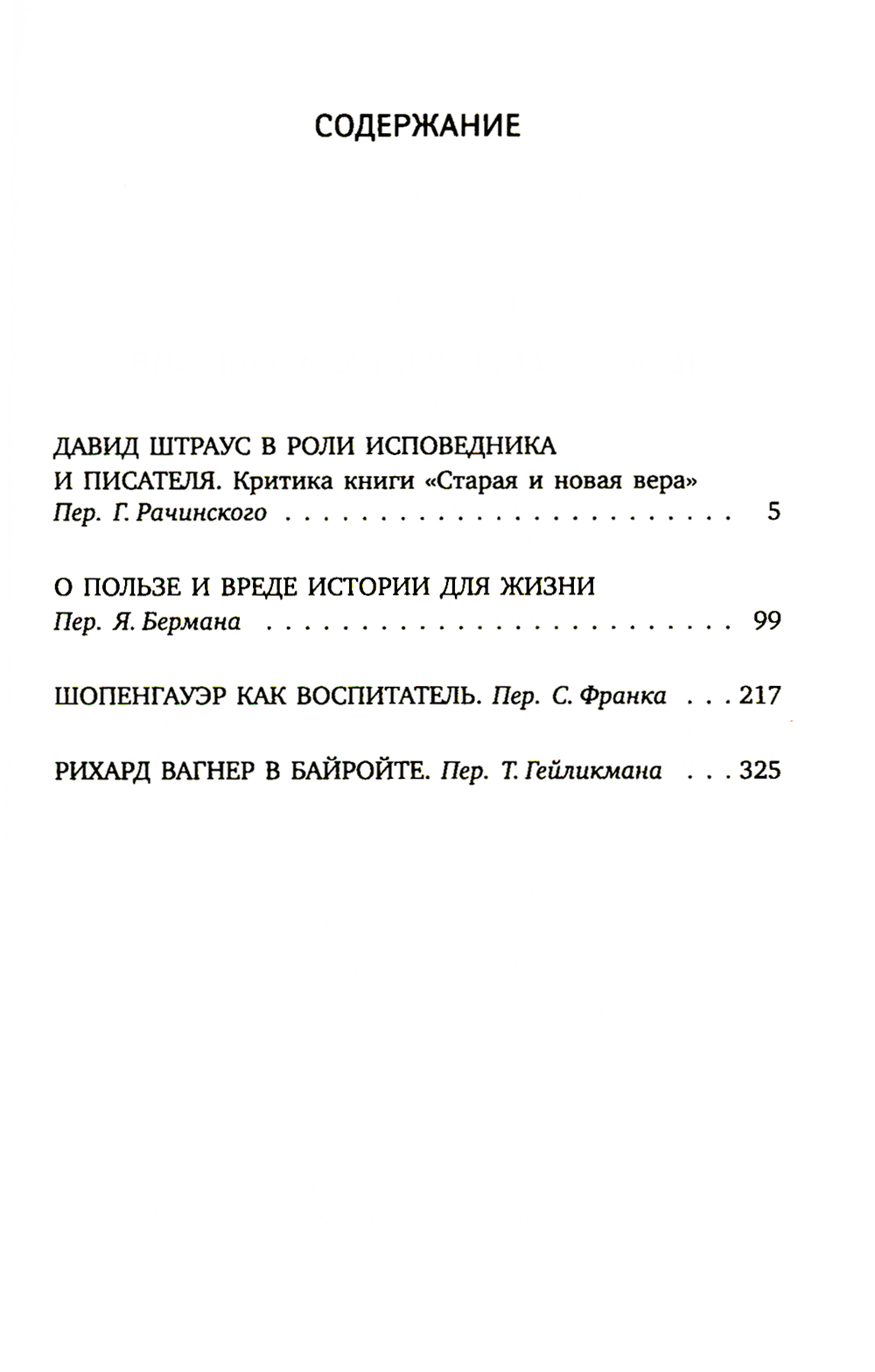 Немецкий мыслитель Фридрих Ницше (1844-1900), автор выдающихся сочинений «Веселая наука», «Так говорил Заратустра», «Генеалогия морали», «По ту сторону добра и зла», «Воля к власти» и многих других, прославился как создатель самобытного учения, оказавшего огромное влияние на философию XX века в целом. Сборник «Несвоевременные размышления», одна из первых работ Ницше, задумывался как серия из двадцати эссе, затрагивающих важнейшие вопросы истории и культуры. В итоге были написаны только четыре очерка, однако они во многом определили дальнейшее развитие творчества великого философа. Размышляя об общей ситуации в исторической науке, рассматривая проблемы религии, изучая наследие Вагнера и Шопенгауэра, Ницше выстраивает оригинальные критерии оценки действительности, ставящие под сомнение общепринятые истины.| Издательство | Лениздат |