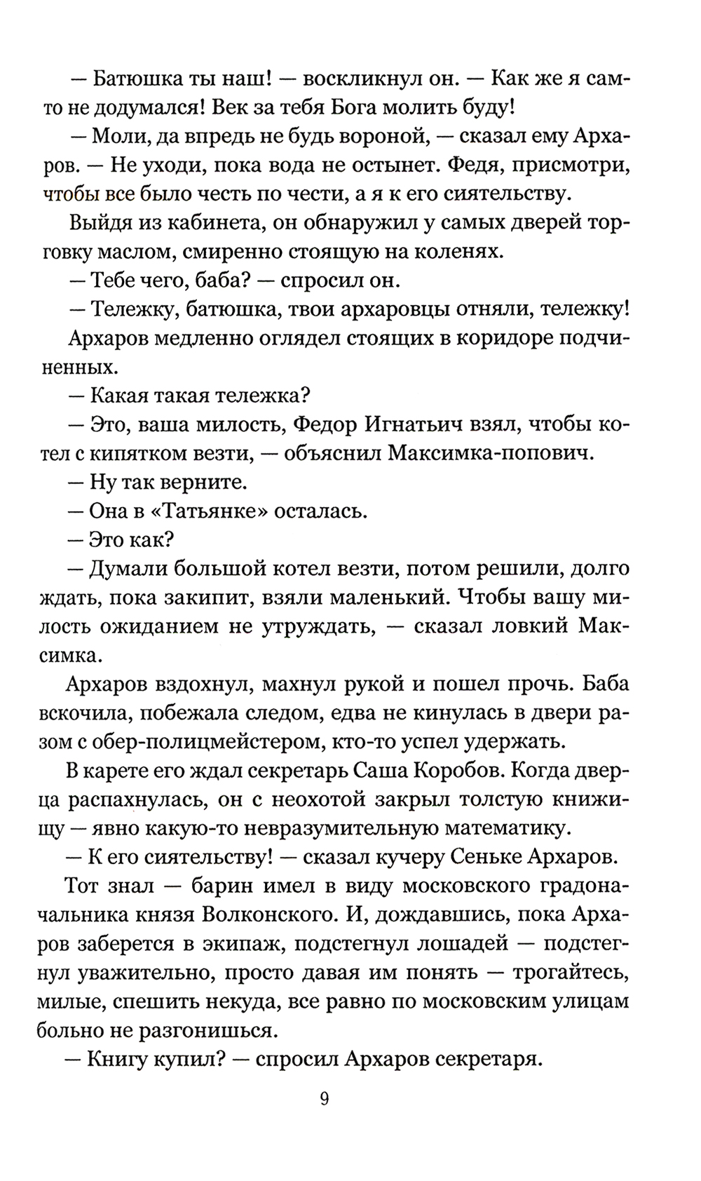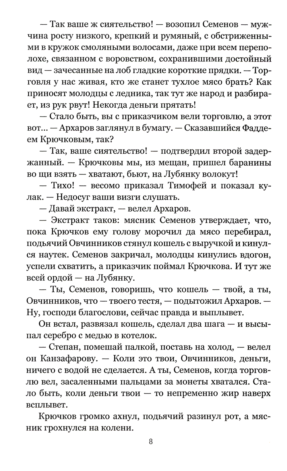1773 год- Неспокойно в Москве. В оренбургских степях собирает войско бунтовщик Емельян Пугачев, вьщающий себя за императора Петра III. Скоро он грозится дойти и до старой столицы. К самозванцу готовы примкнуть не только казаки и крестьяне, но и часть аристократии и духовенства, которая видит в этом свою выгоду. А пока власти обеспокоены восстанием, московские воры начинают плести новые преступные сети. Так что обер-полицмейстеру Архарову и его людям сидеть сложа руки точно не придется... Эта книга - продолжение увлекательных романов «Архаровцы. Сыск во время чумы» и «Архаровцы. Кот и крысы», опубликованных в этой же серии.| Издательство | Вече |