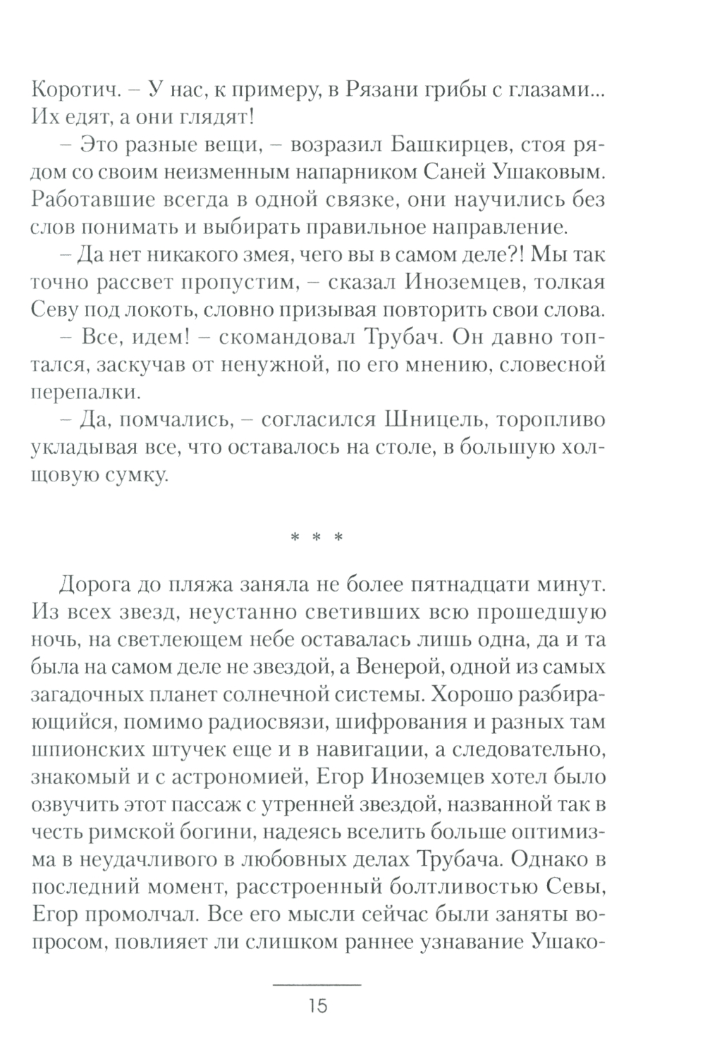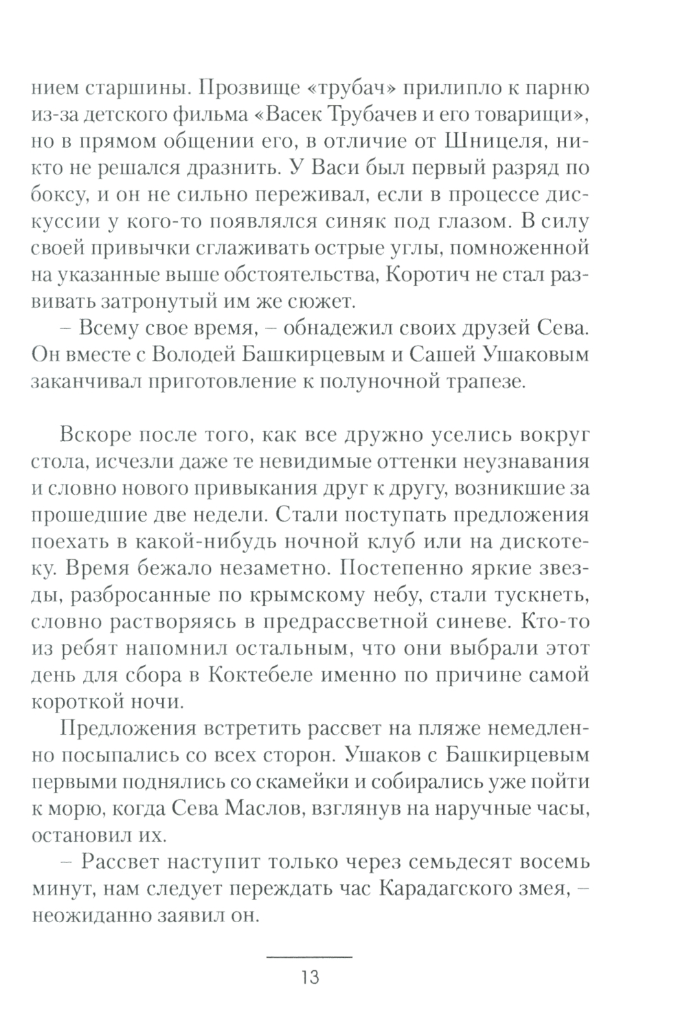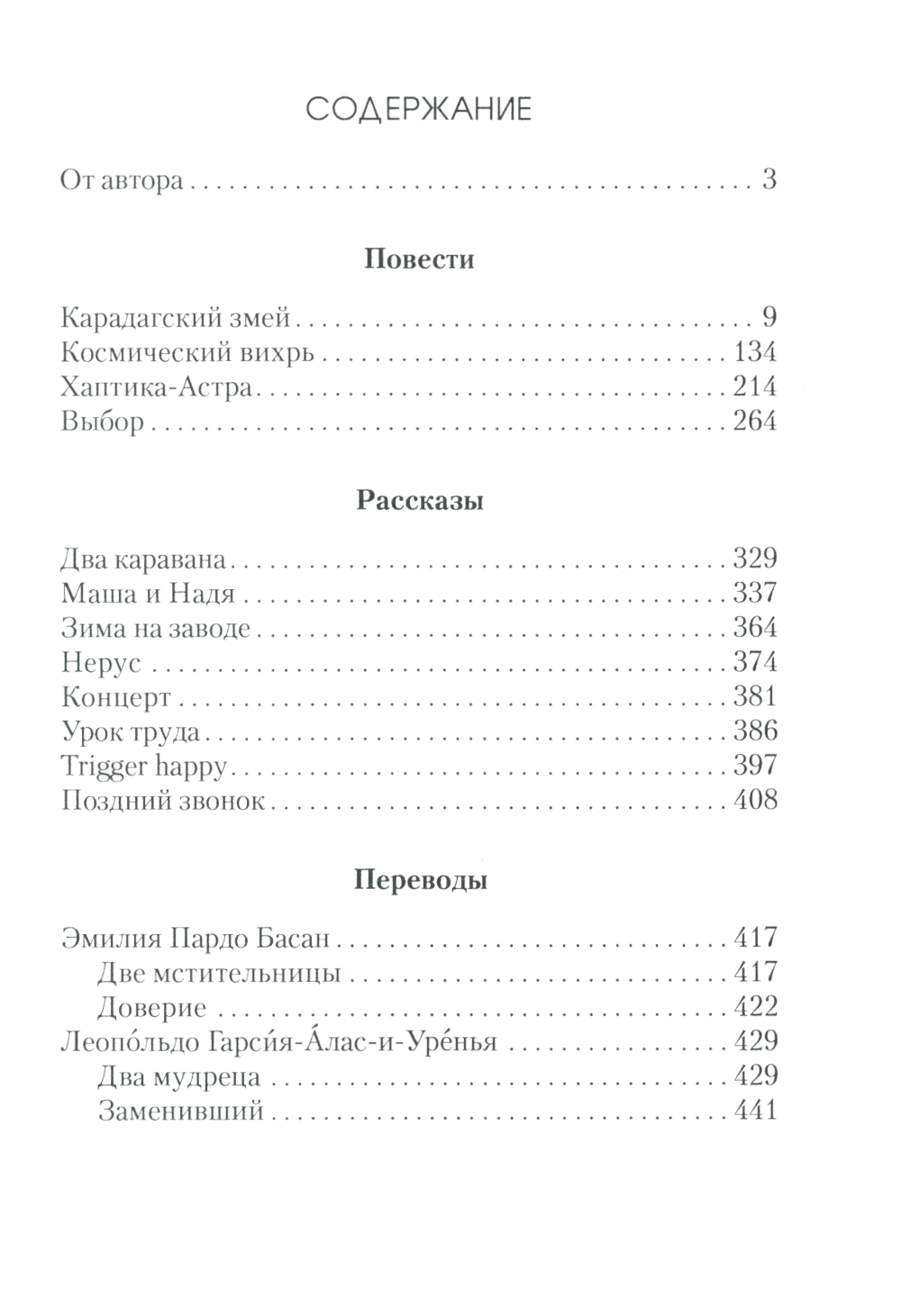 Карадагский змей - вымысел или реальность? История крымского Лохнесского чудовища уже давно волнует умы любителей потусторонних явлений. Но такое ли оно потустороннее? Остап Стужев предлагает посмотреть на эту легенду с точки зрения квантовой физики и ставит черноморского дракона в суперпозицию. Иными словами, Карадагский змей существует для тех, кто уверен в его существовании, и является мифом для скептиков и пессимистов. О том, к чему может привести развитие современной науки, рассказано в двух других фантастических повестях этого сборника - «Космический вихрь» и «Хаптика-Астра». Передача мыслей и ощущений на расстоянии - всего лишь вопрос будущего, уверен автор. Герои его произведений - ученые, экспериментаторы, новаторы - живут в условиях этого будущего. Но Остап Стужев не был бы собой, если бы не включил в фантастические сюжеты детективную интригу. Повесть «Выбор» переносит нас из альтернативных фантастических миров в мир сегодняшний. Основанное на реальных событиях произведение рассказывает о сложном пути профессиональных спортсменов. Поклонники романа «Золотые пилигримы» будут рады возвращению любимых героев - их предысториям посвящена серия рассказов, включенных в сборник. Завершается книга авторскими переводами испаноязычных писателей. Да-да, Остап Стужев снова удивляет читателей многогранностью своих талантов. Неизменным остается одно: следить за калейдоскопом событий в космическом вихре миров, создаваемых автором, интересно, весело и познавательно.| Издательство | ИПО "У Никитских ворот" |
