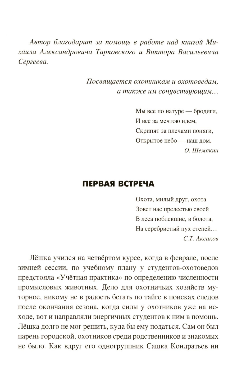 Это увлекательный рассказ о людях, связанных с таёжной промысловой охотой в Сибири и на Дальнем Востоке. О редкой и престижной профессии охотоведа. О непростых человеческих отношениях, об опасном и необыкновенно интересном труде промыслового охотника. Книга основана на реальных событиях, произошедших во время работы автора в охотничьих хозяйствах и ВСО ВНИИОЗа (Восточно-Сибирском отделении Всероссийского научно-исследовательского института охоты и звероводства), она наполнена бережным отношением к диким уголкам природы, множеством приключений и ярких захватывающих историй.| Издательство | Вече |